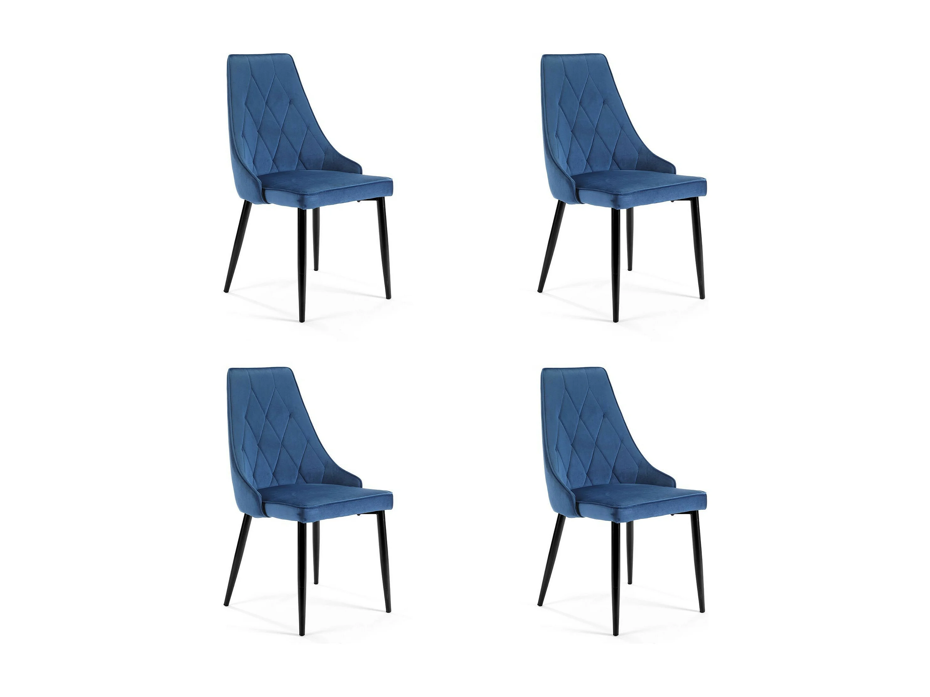 Set van 4 Luxe Eetkamerstoelen SJ.054 in Marineblauw Velours met Stalen Kruisvoet
