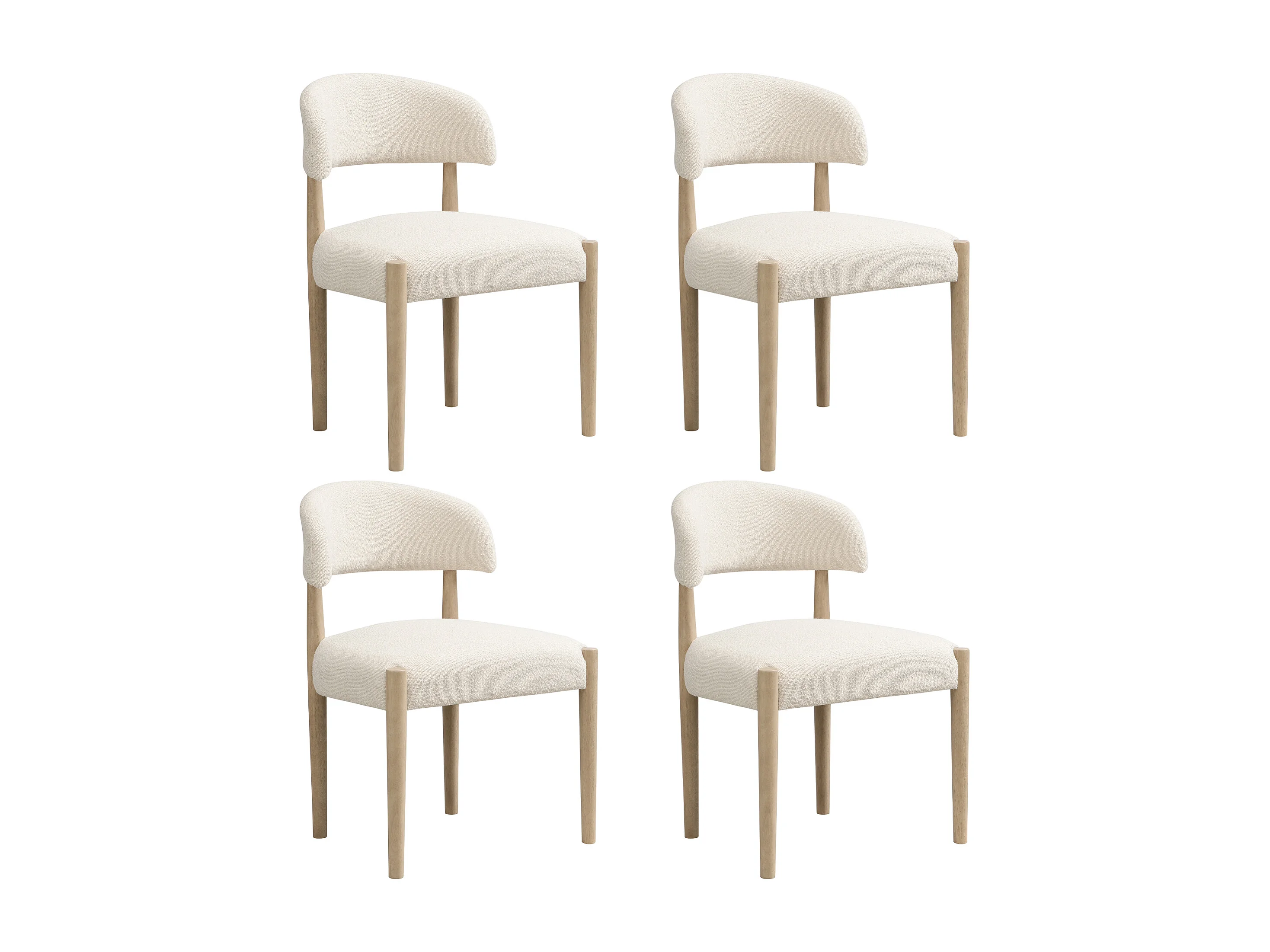 Set van 4 massief houten eetkamerstoelen - 58 x 58 x 78 cm - moderne stijl - ademend - gekrulde afwerking - naturel