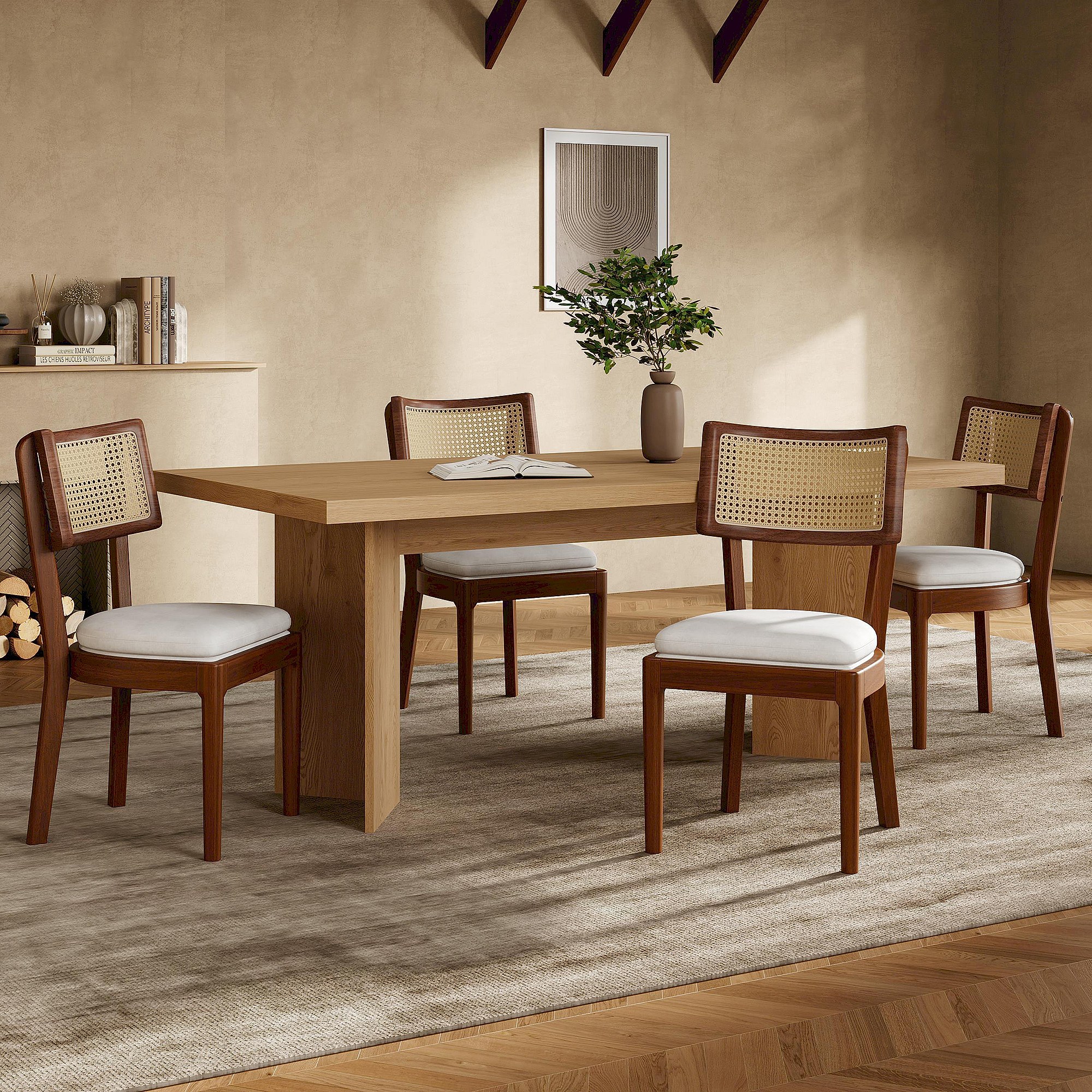Set van 4 massief houten eetkamerstoelen met rotan rugleuningen - fluwelen kussen - 50 x 58 x 88 cm - bruin