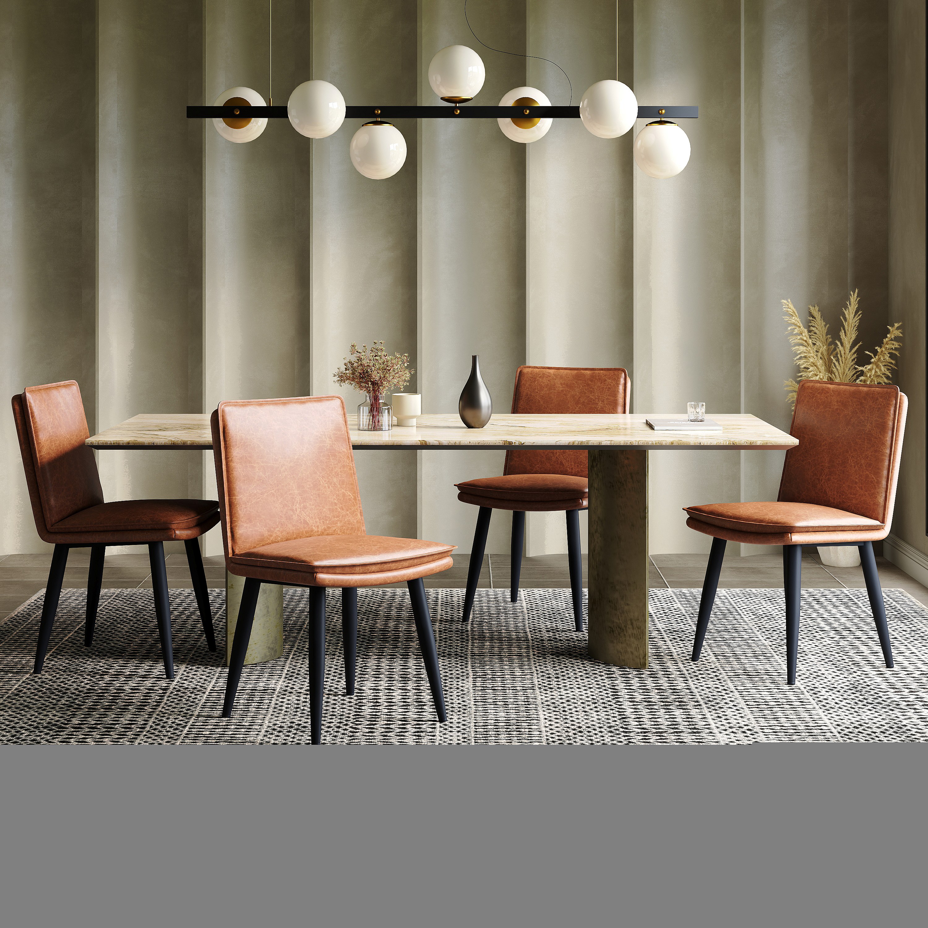 Set van 4 PU eetkamerstoelen - dubbele laag kussens - 49 x 57 x 84 cm - PU - bruin