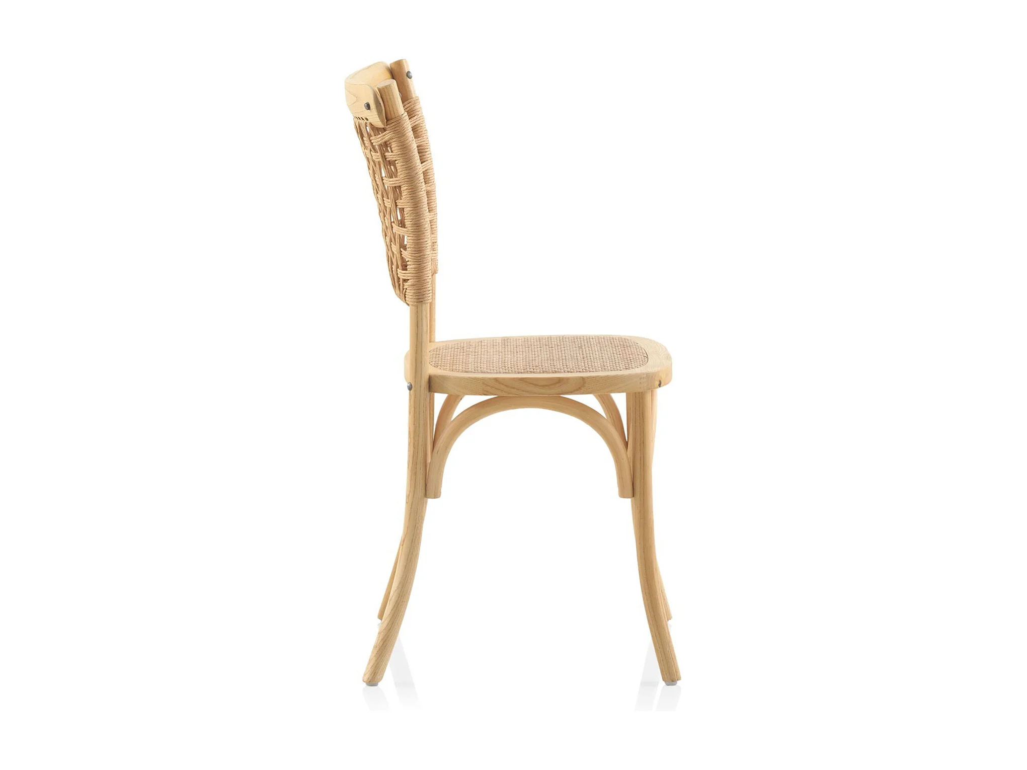 Set van 4 stoelen van iepenhout met gevlochten zitting en rugleuning