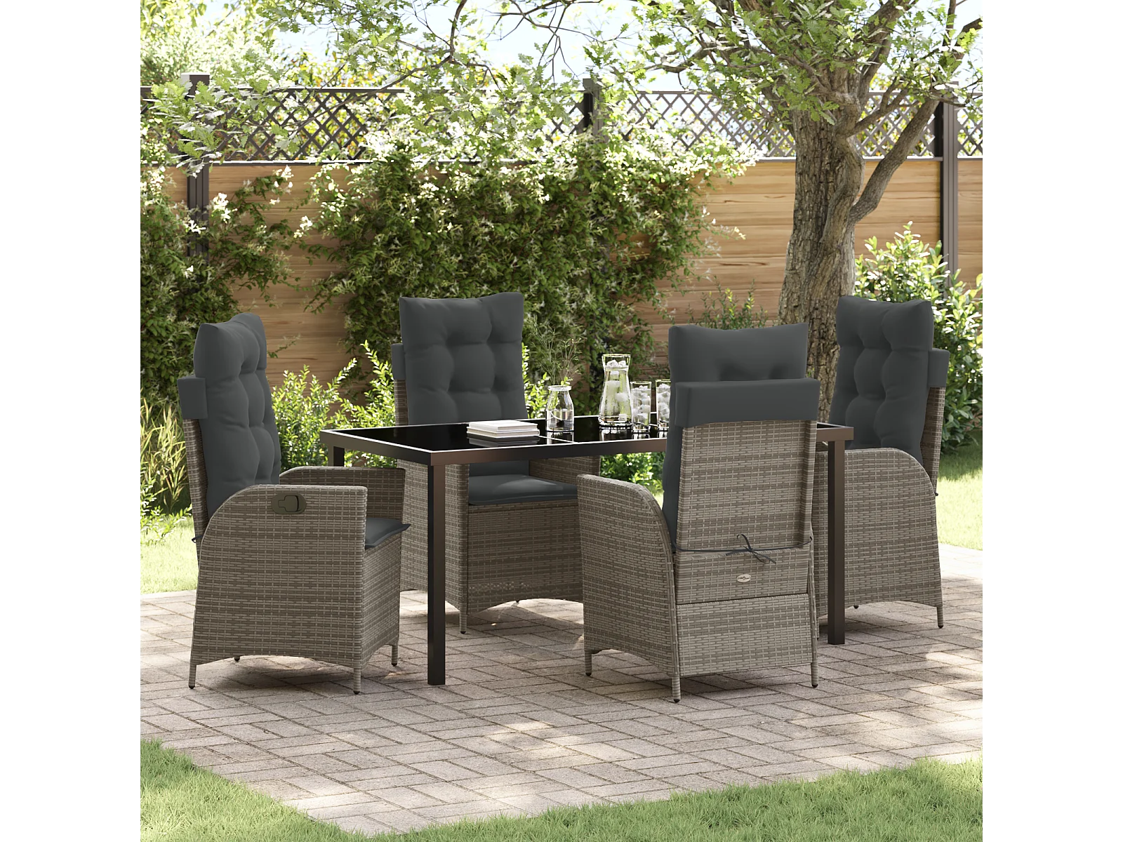 Set van 5 tuinmeubelen met grijze polyrotan kussens