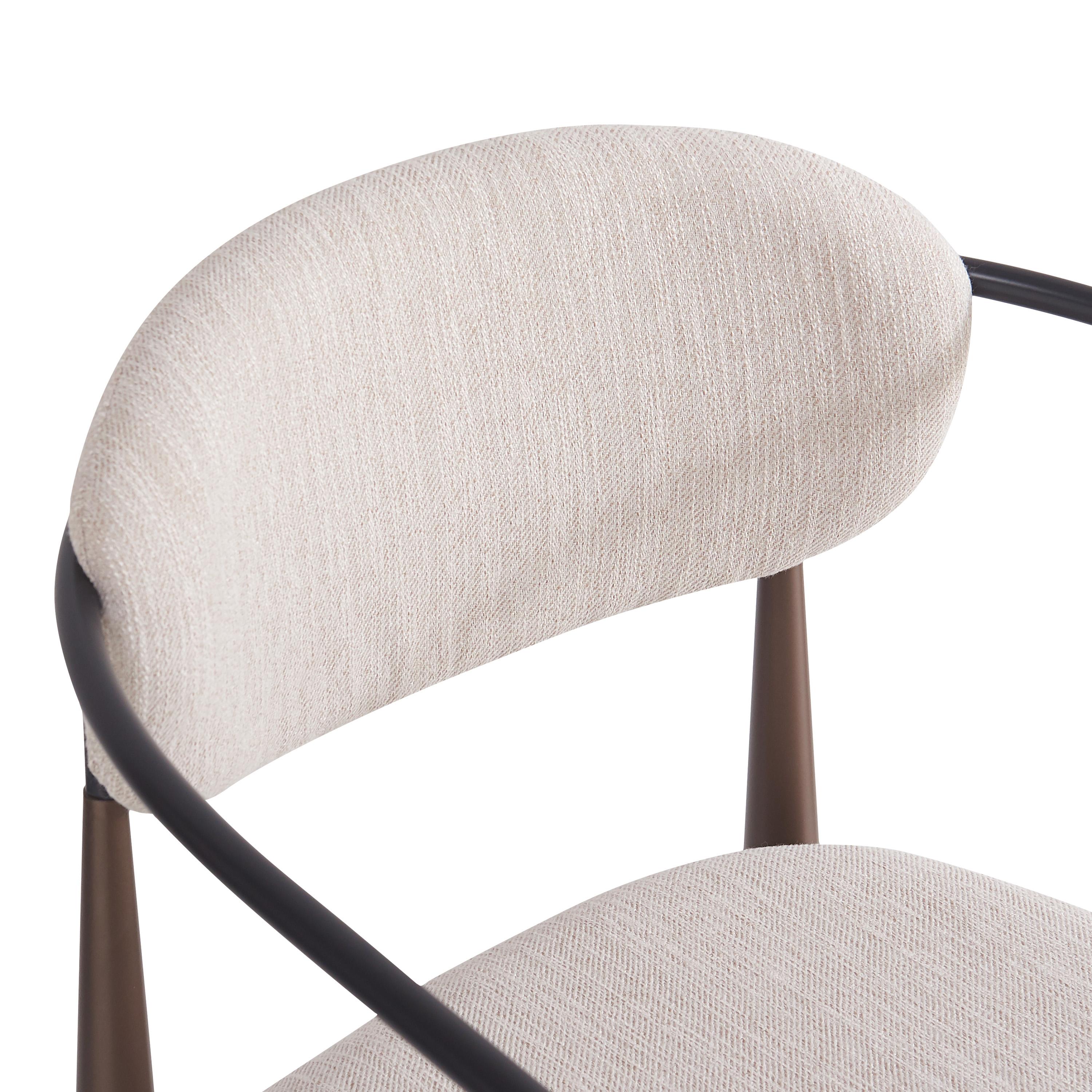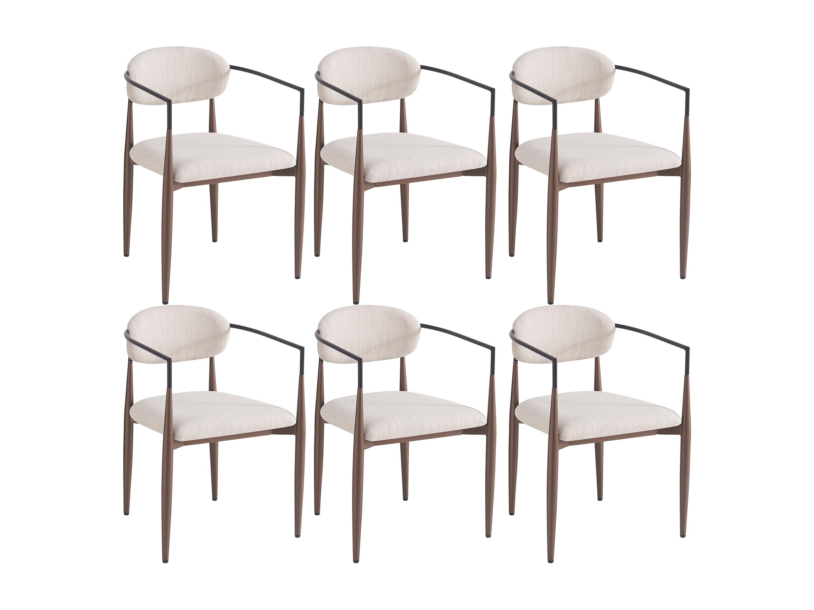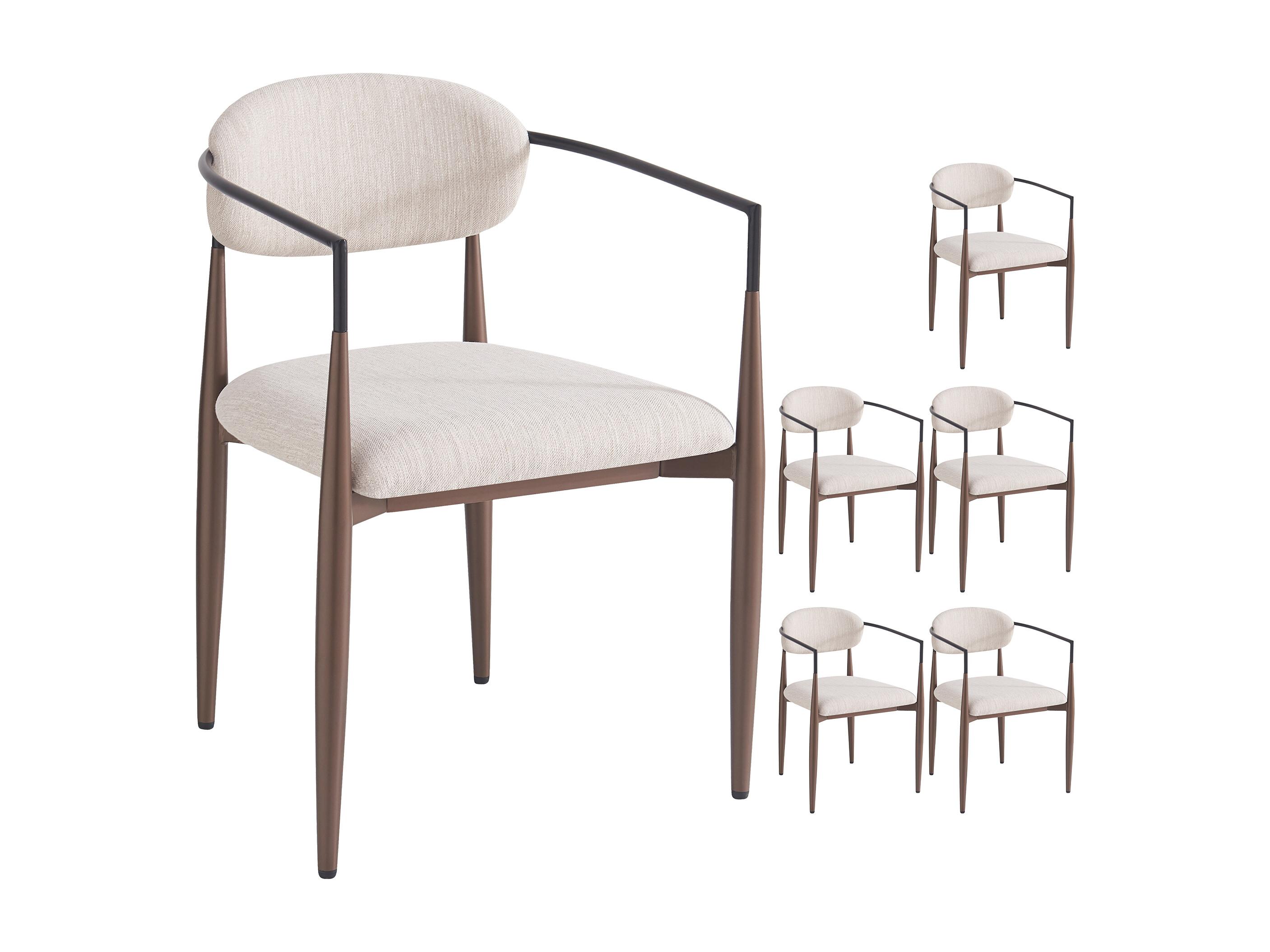Set van 6 beige linnen stoelen met bruine metalen frames