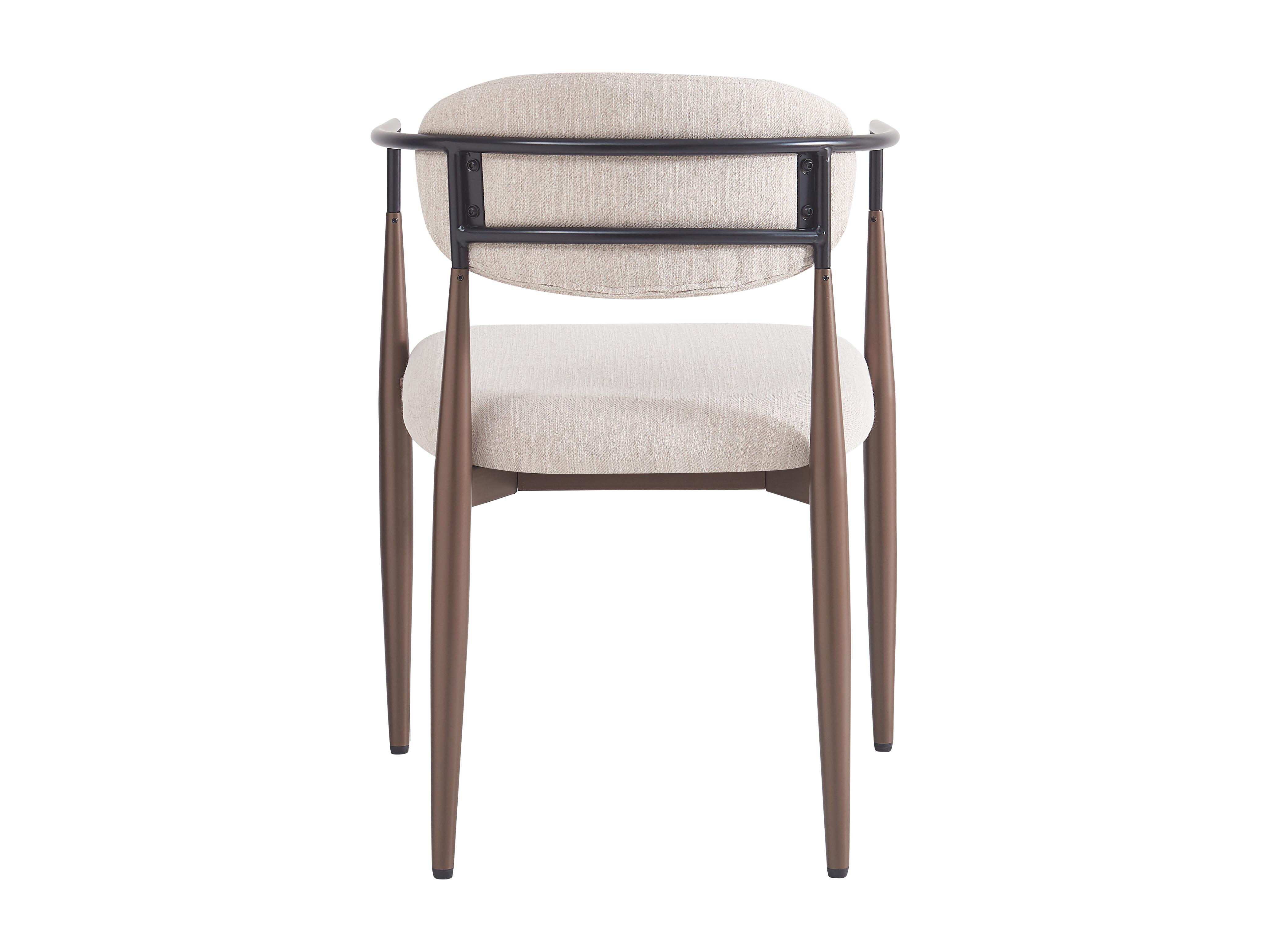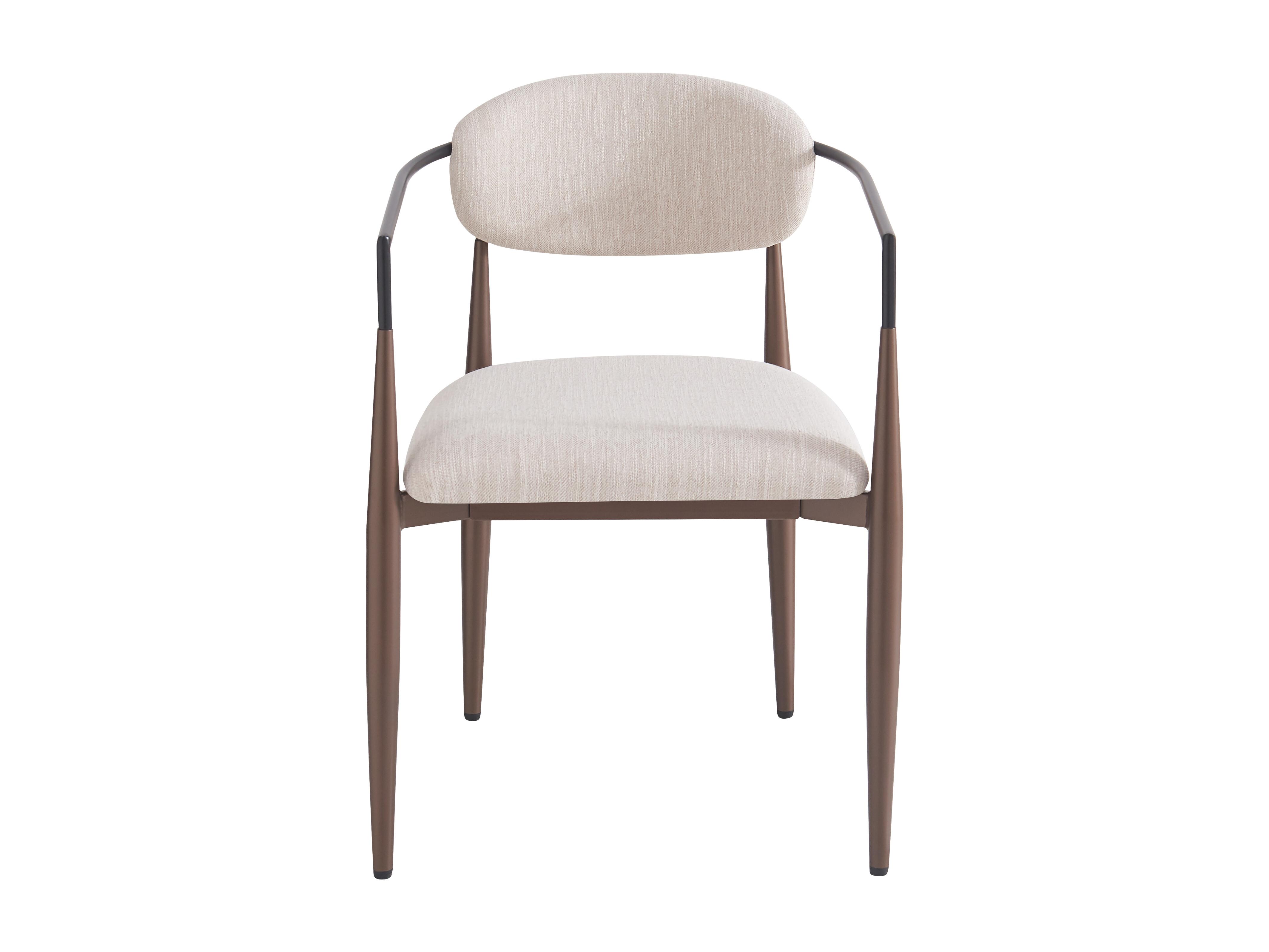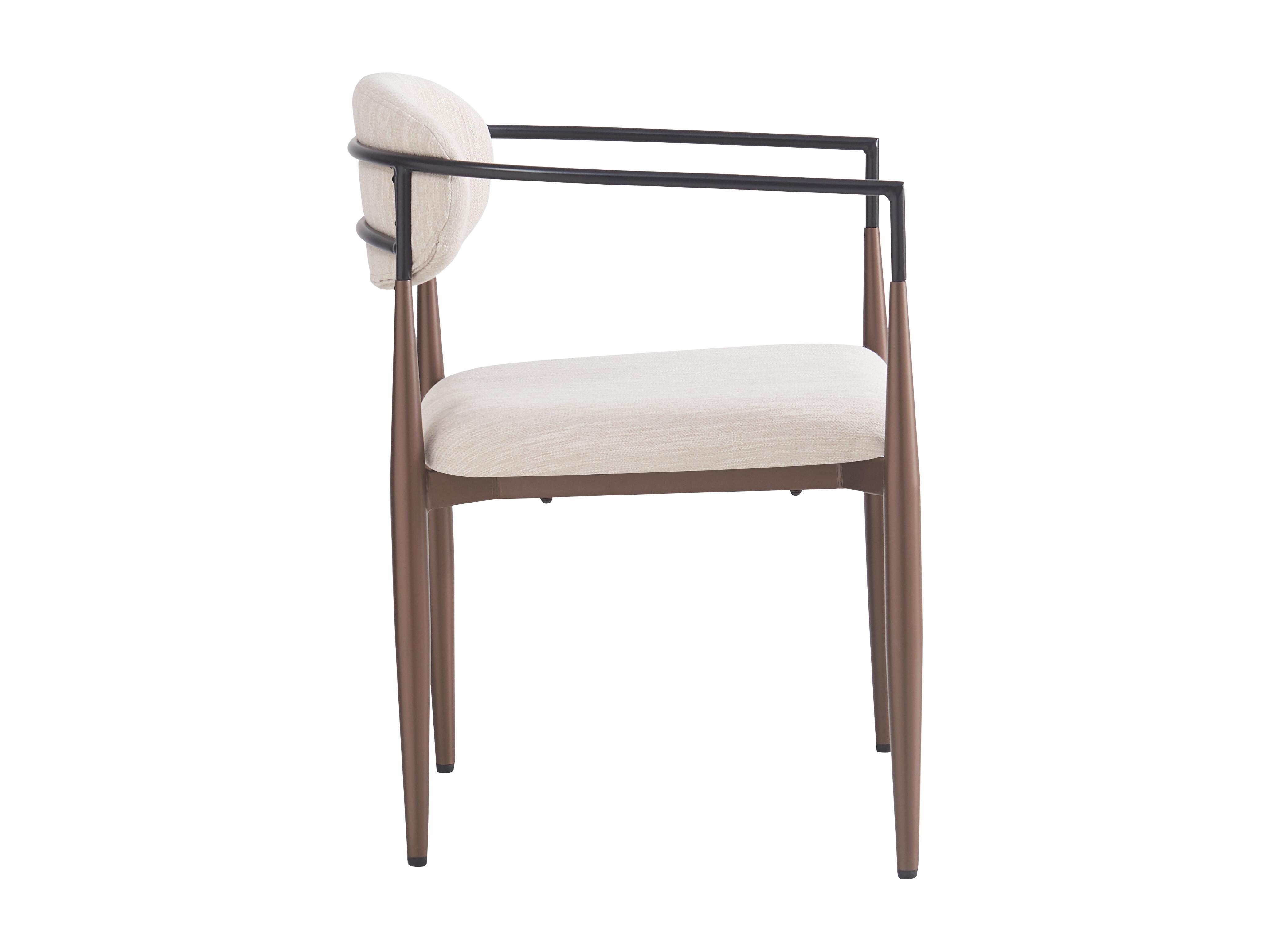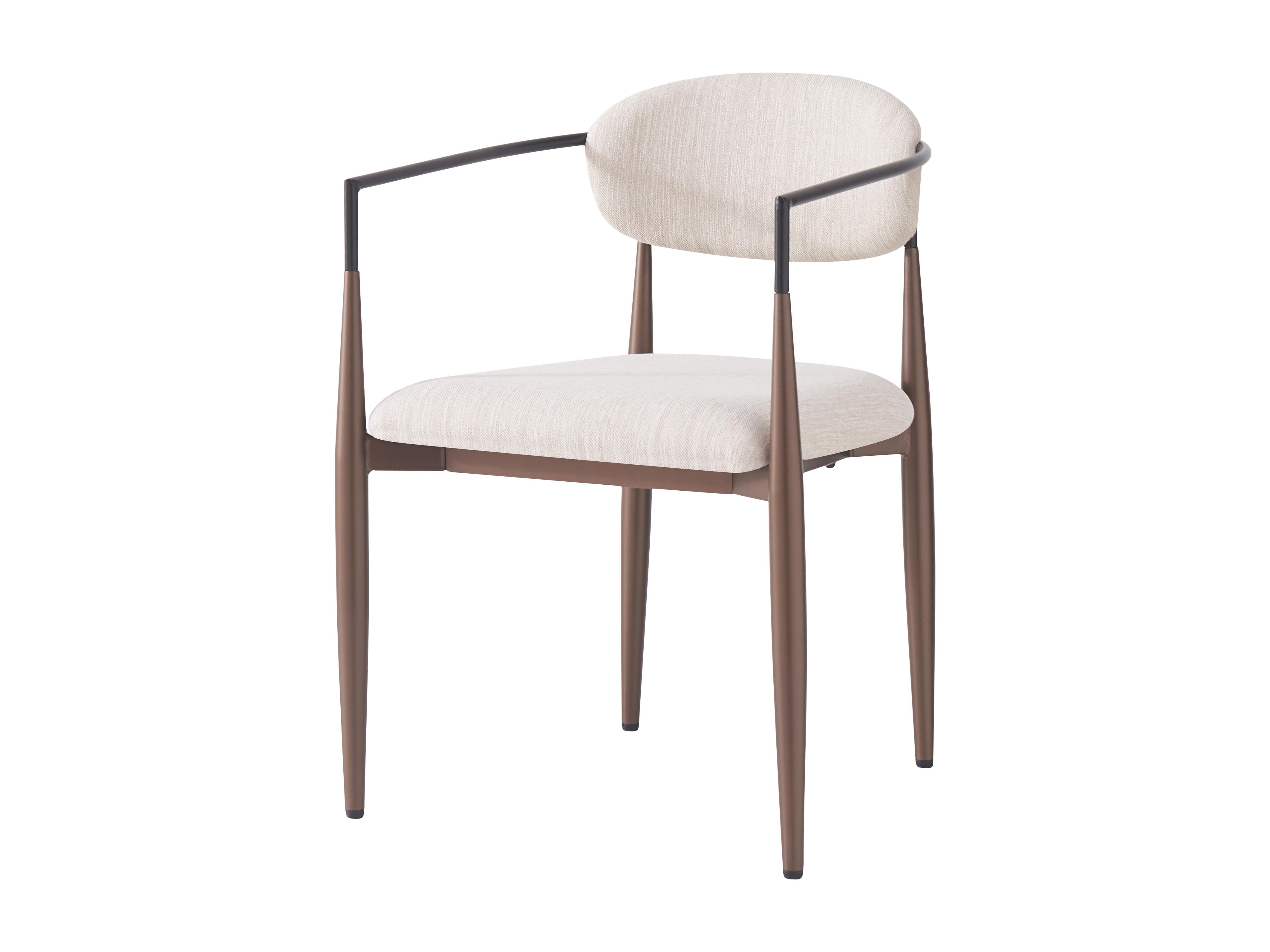 Set van 6 beige linnen stoelen met bruine metalen frames