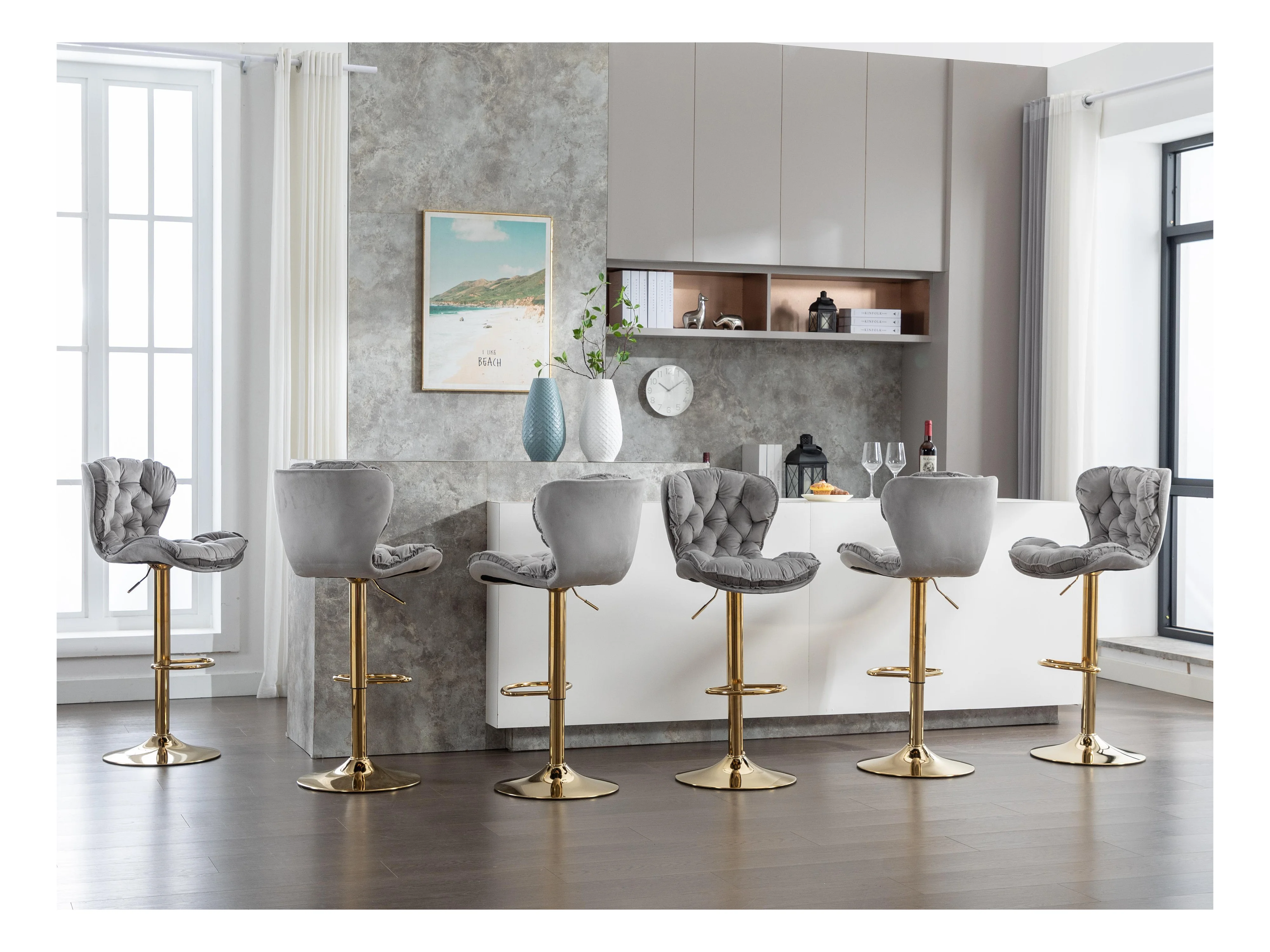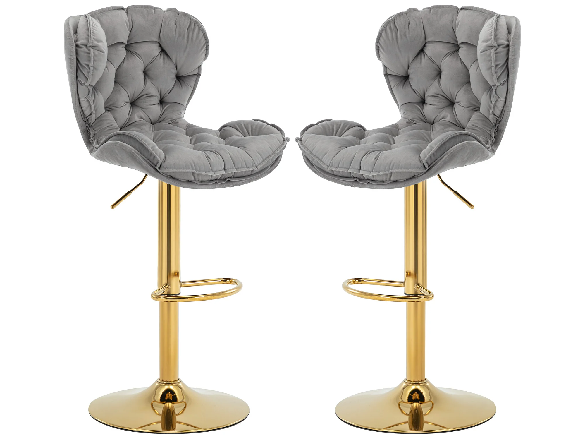 Set van 6 draaibare barkrukken - in hoogte verstelbaar - fluwelen stof - Grijs