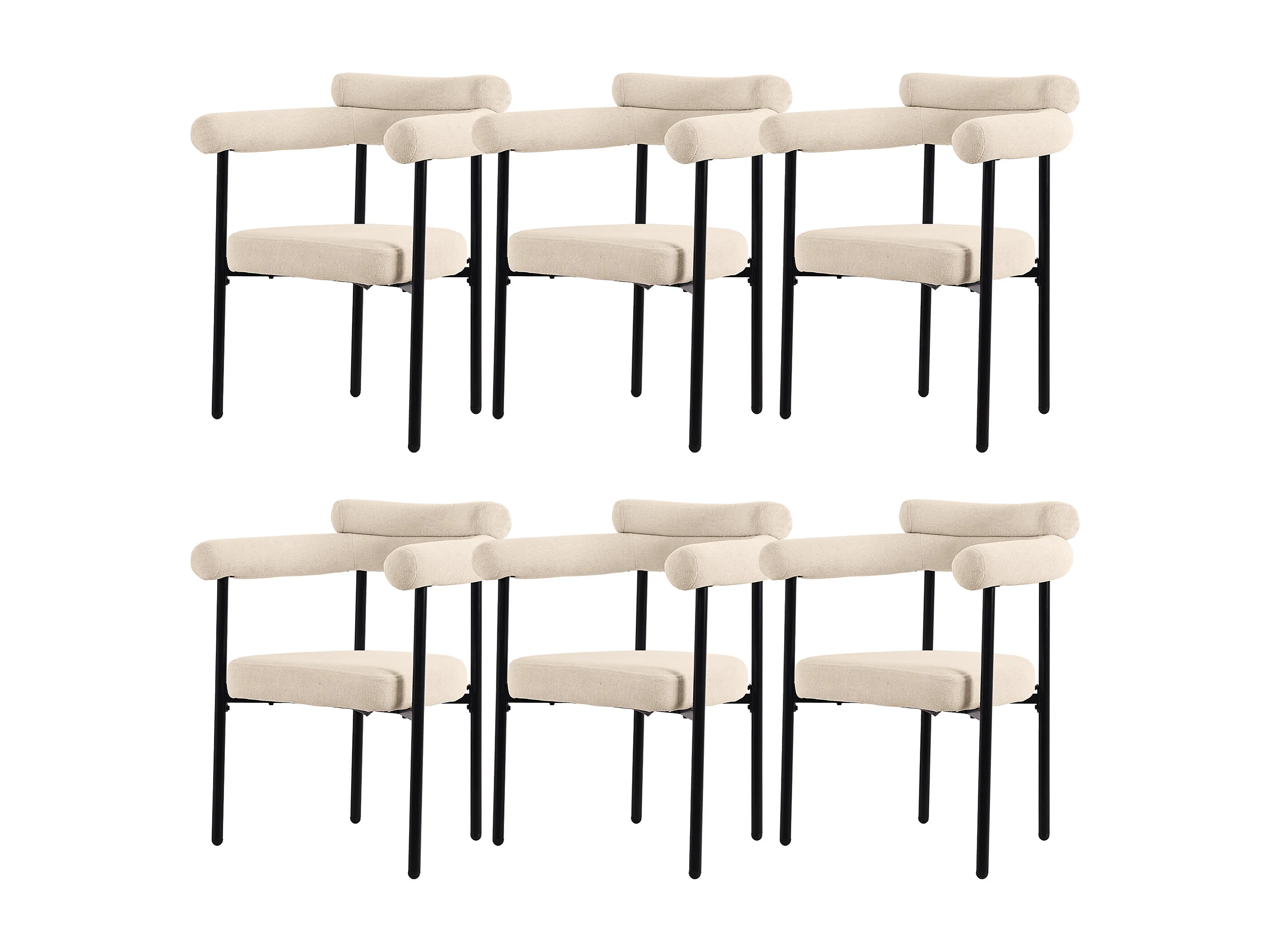 Set van 6 fluwelen eetkamerstoelen met metalen frame – beige