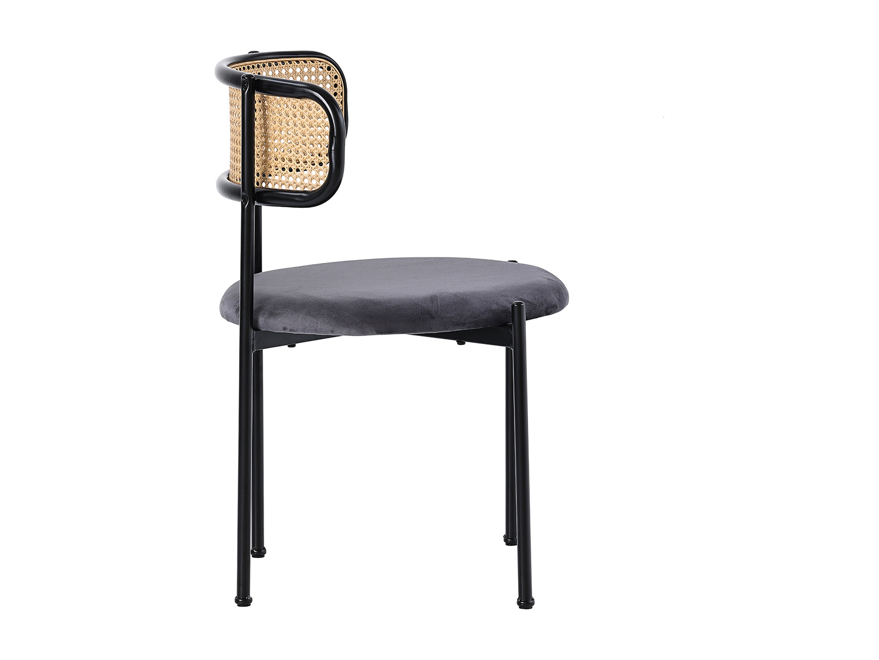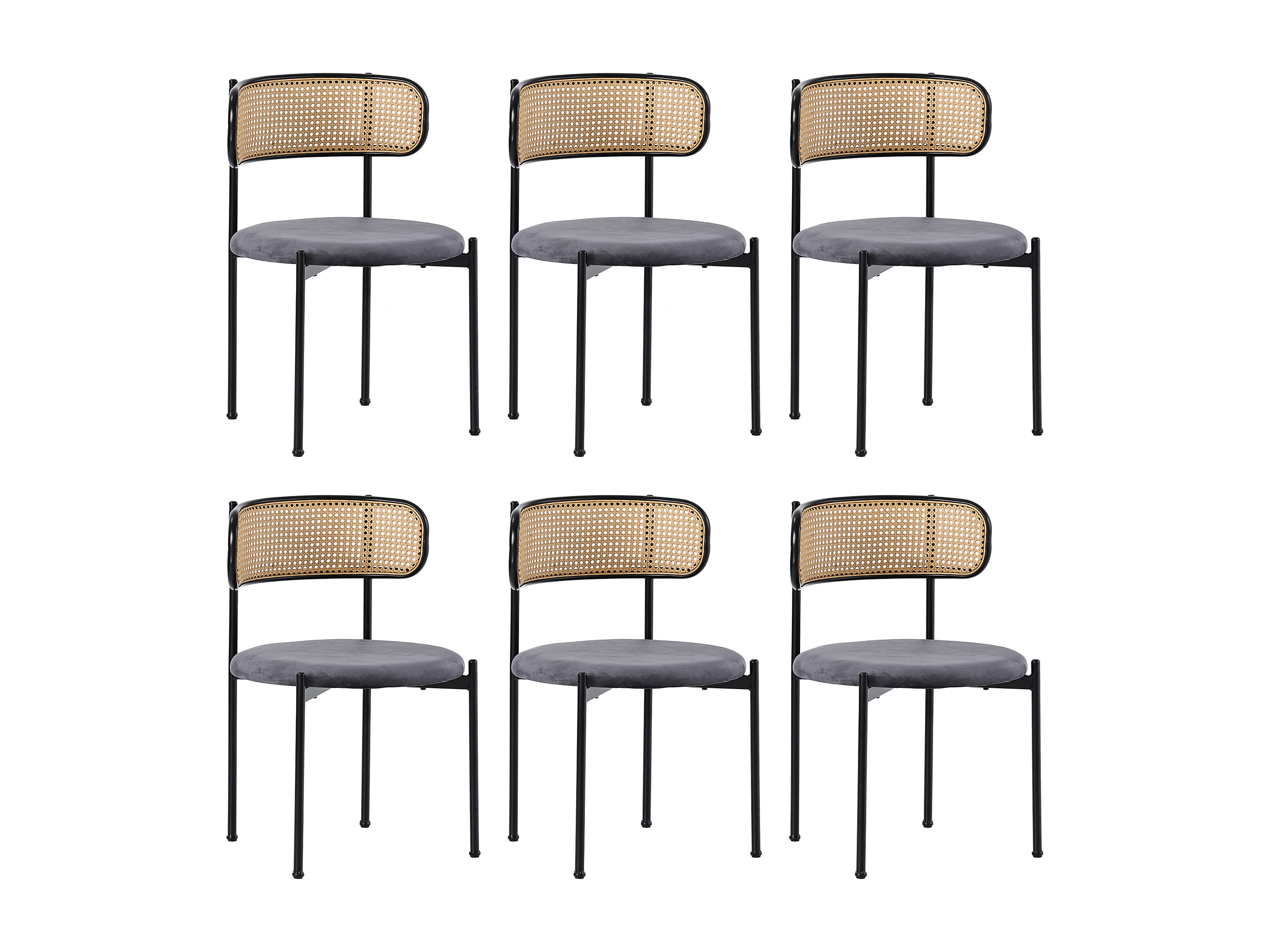 Set van 6 fluwelen eetkamerstoelen met rotan rugleuning - metalen poten - grijs
