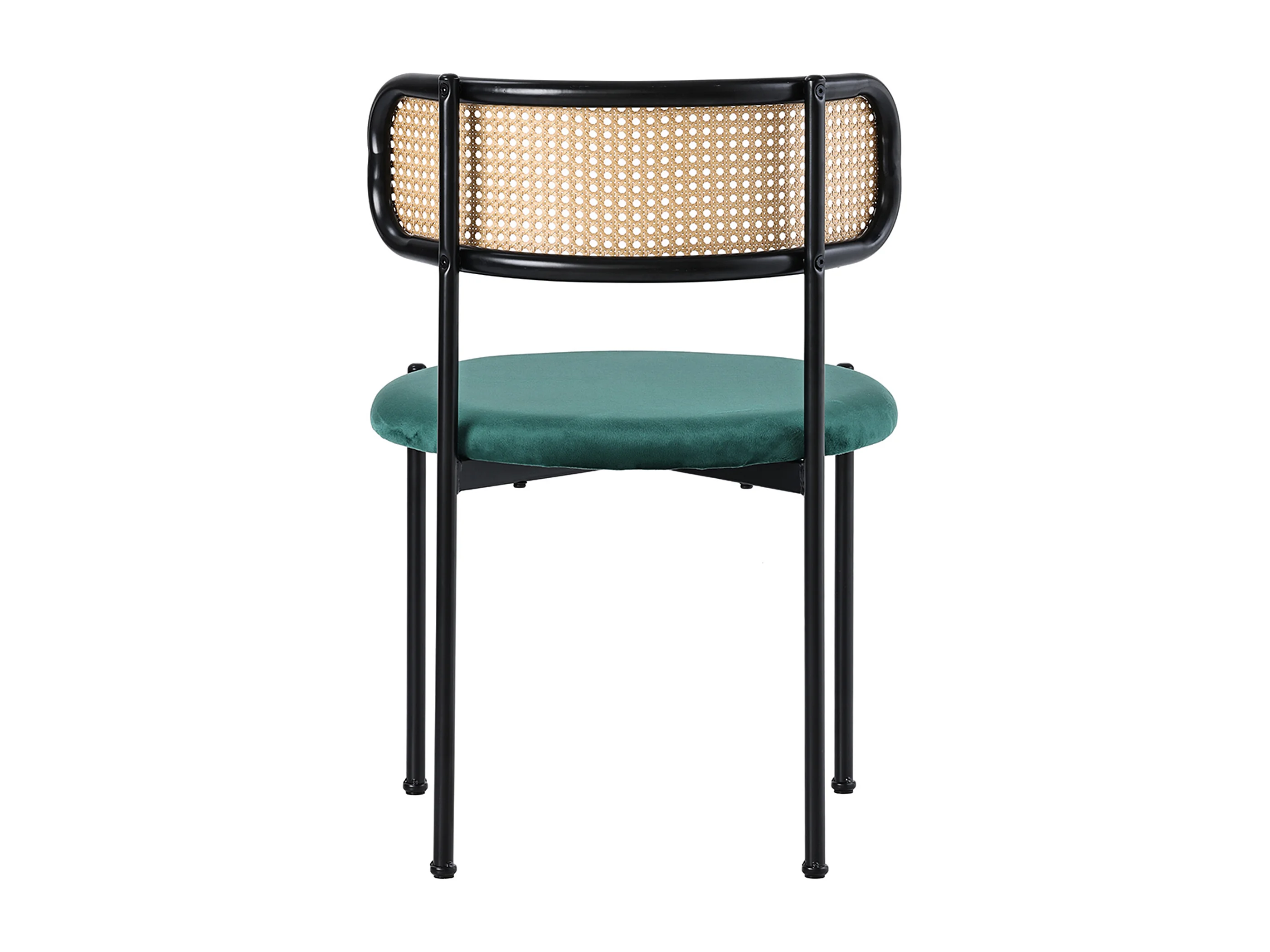 Set van 6 fluwelen eetkamerstoelen met rotan rugleuning - metalen poten - groen