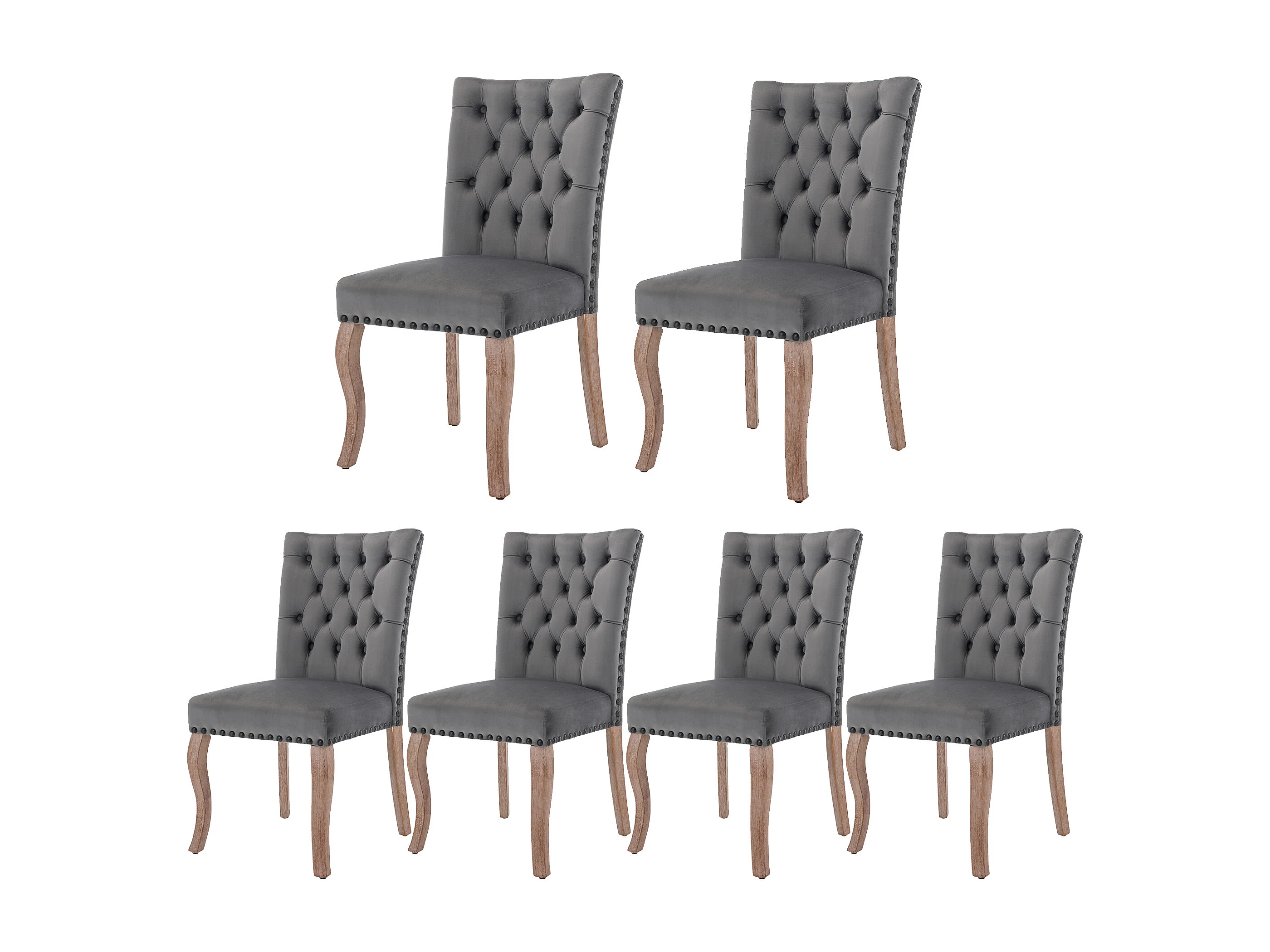 Set van 6 fluwelen eetkamerstoelen met rugleuning - houten poten - grijs