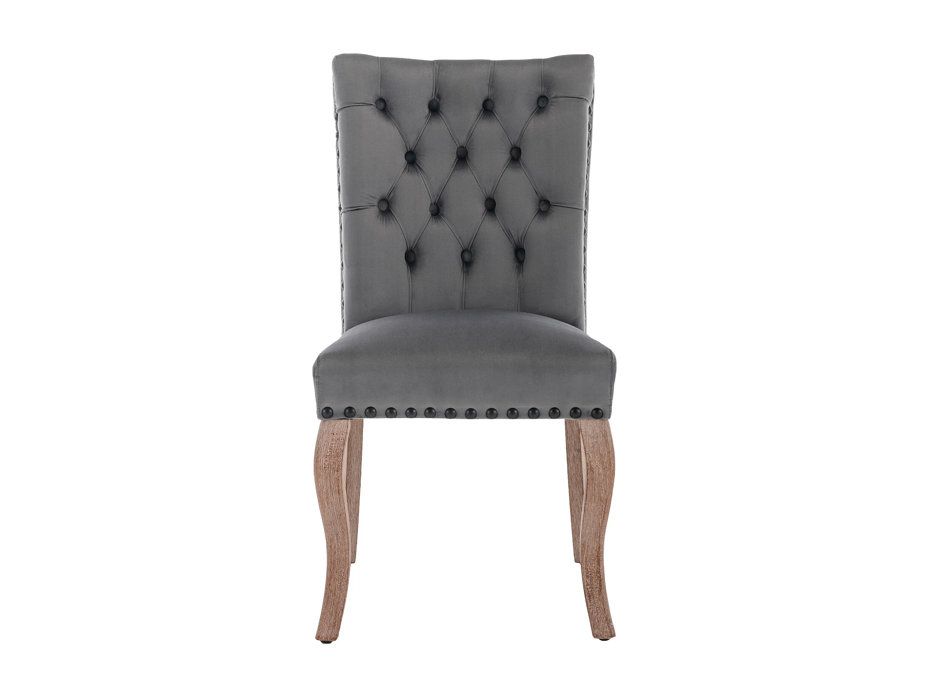Set van 2 fluwelen eetkamerstoelen met rugleuning - houten poten - grijs