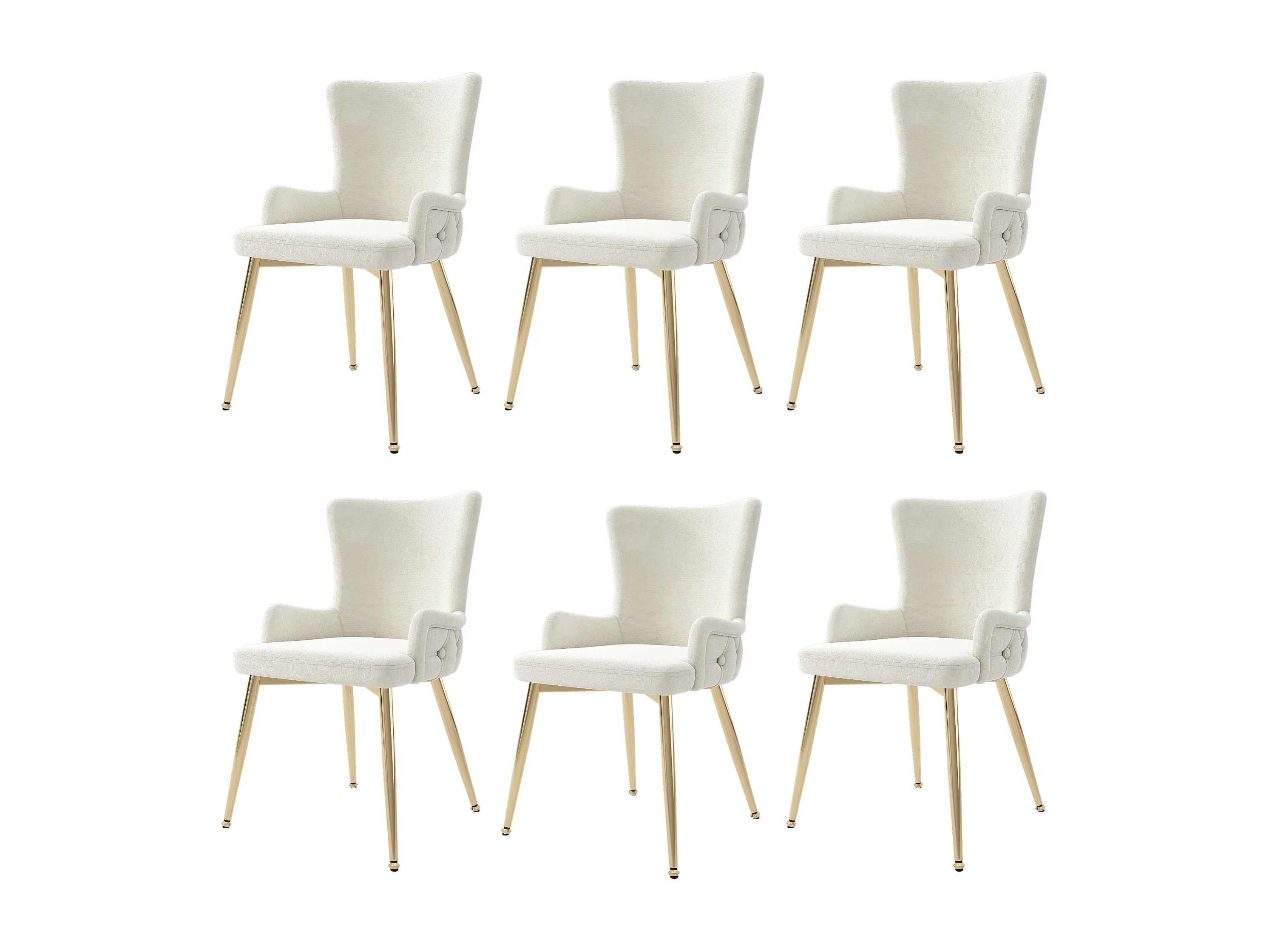 Set van 6 fluwelen stoelen met metalen poten – beige