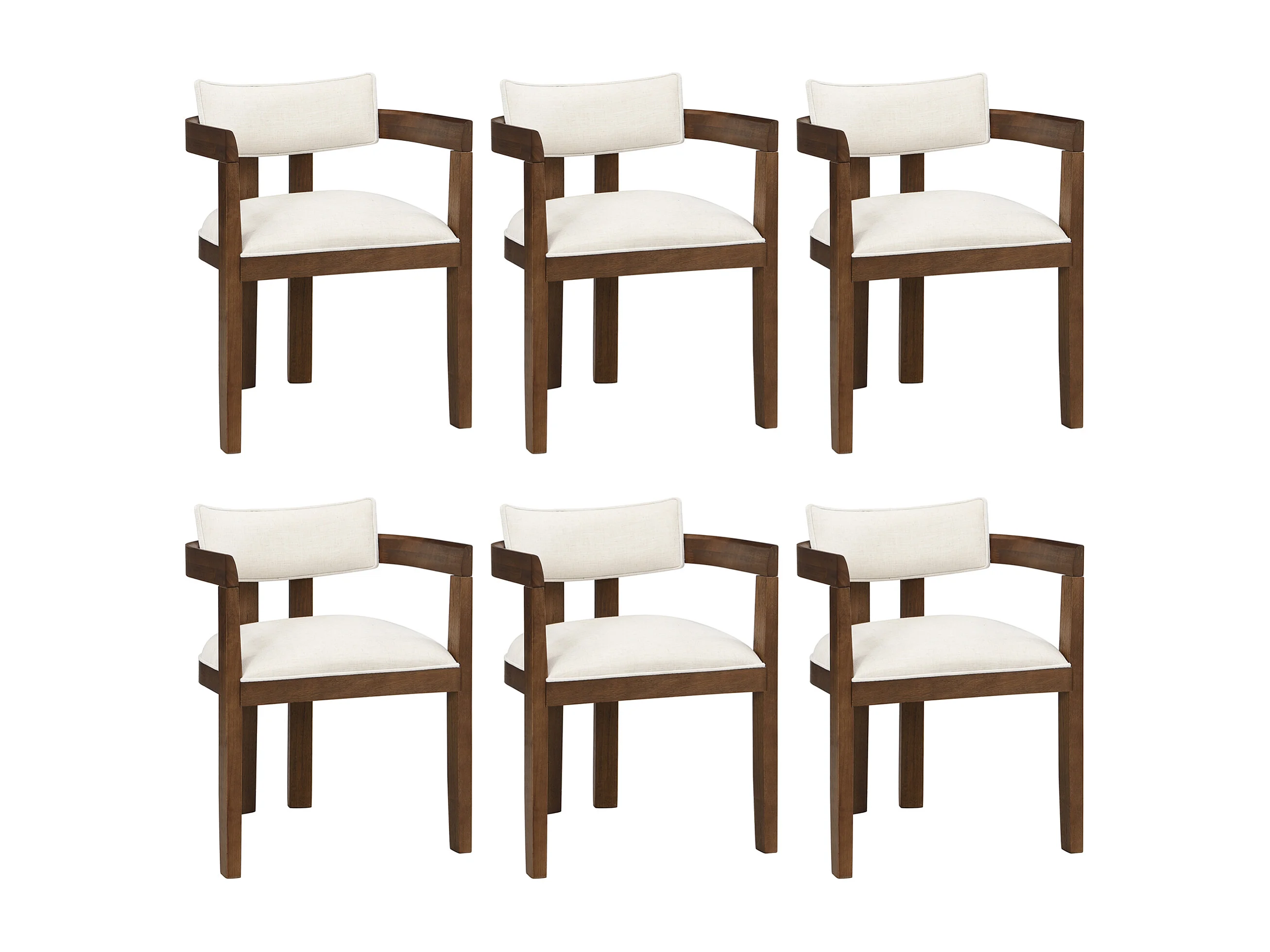 Set van 6 massief houten eetkamerstoelen - 57,5 x 60,5 x 78,5 cm - moderne stijl - linnen - bruin