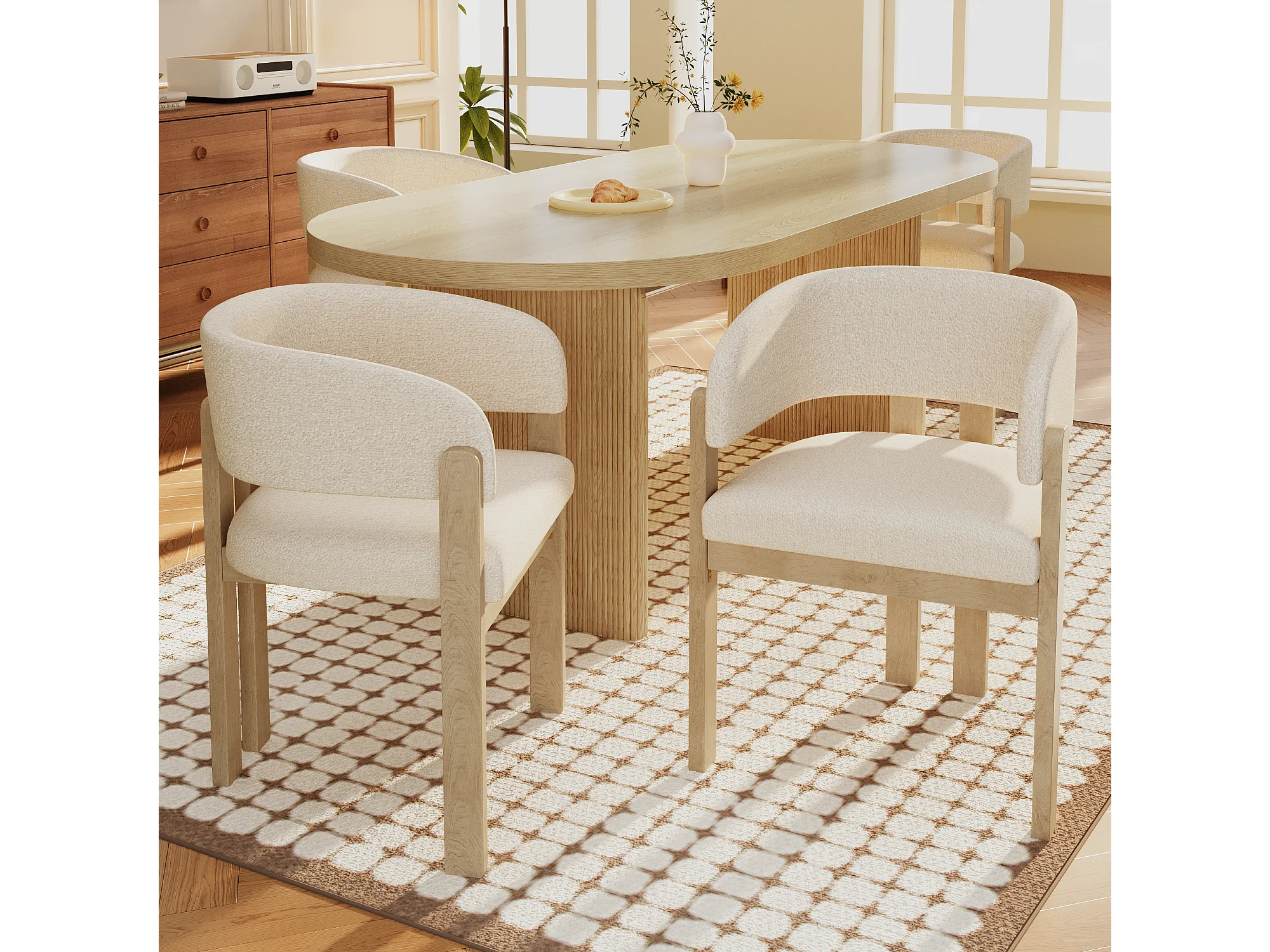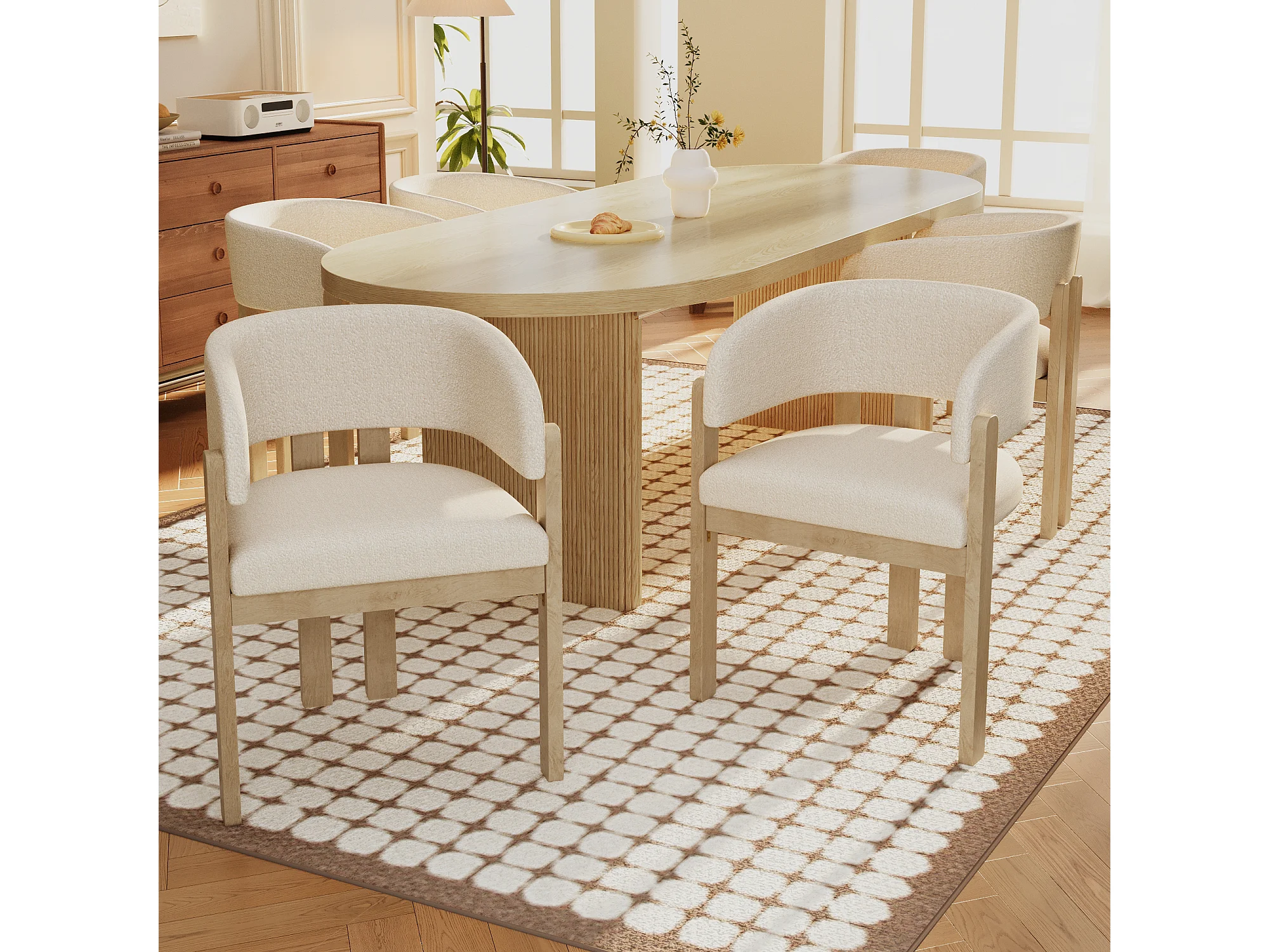Set van 6 massief houten eetkamerstoelen - 60 x 51 x 80 cm - gebogen rugleuning - lusvormige bekleding - naturel