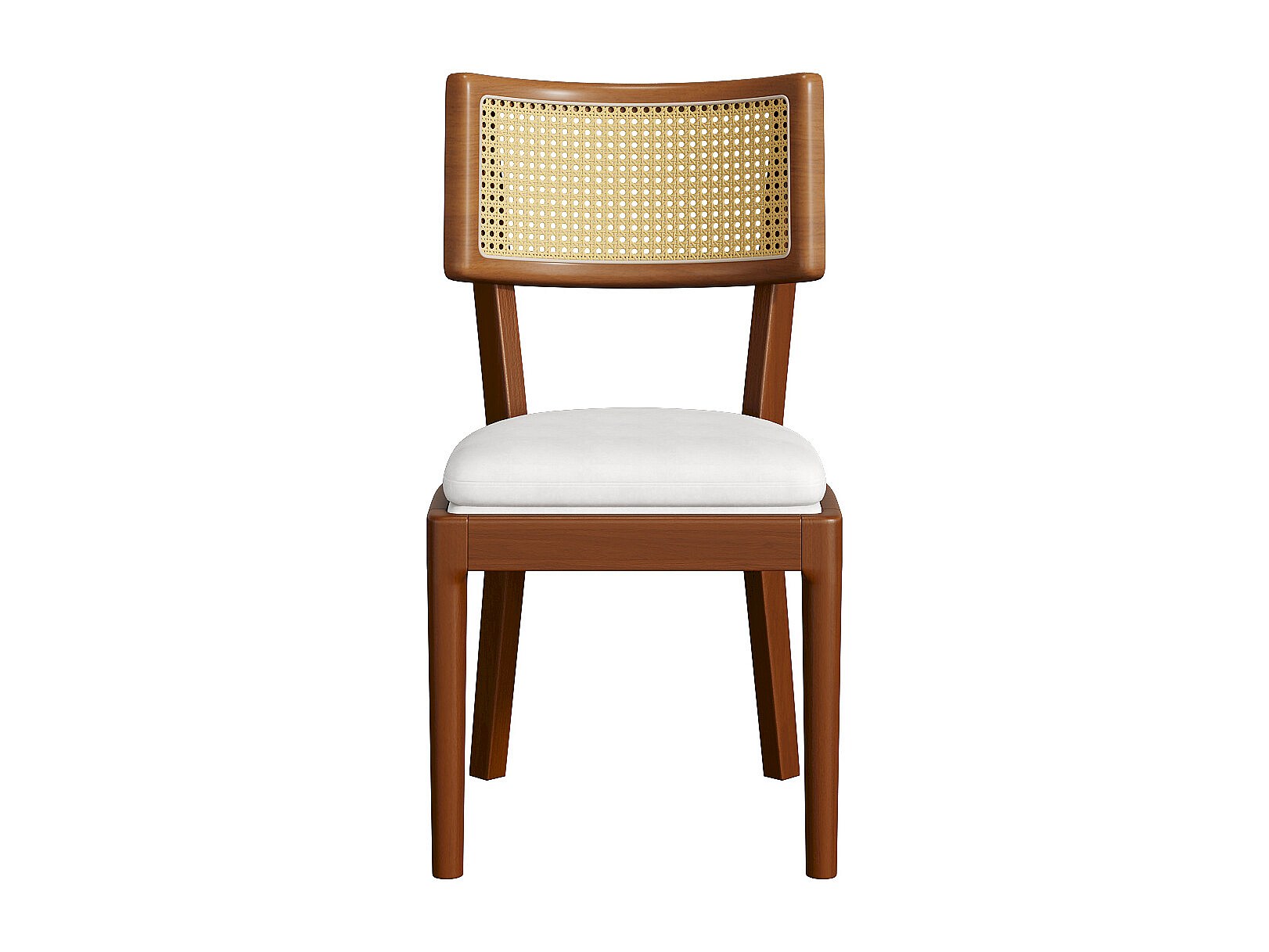 Set van 6 massief houten eetkamerstoelen met rotan rugleuningen - fluwelen kussen - 50 x 58 x 88 cm - bruin