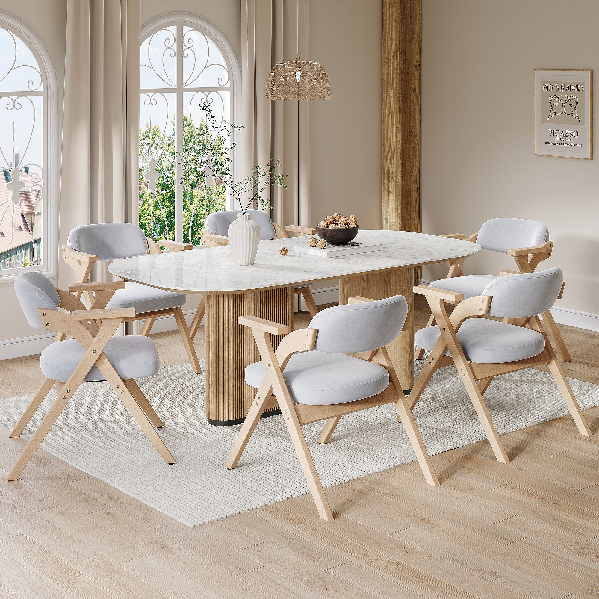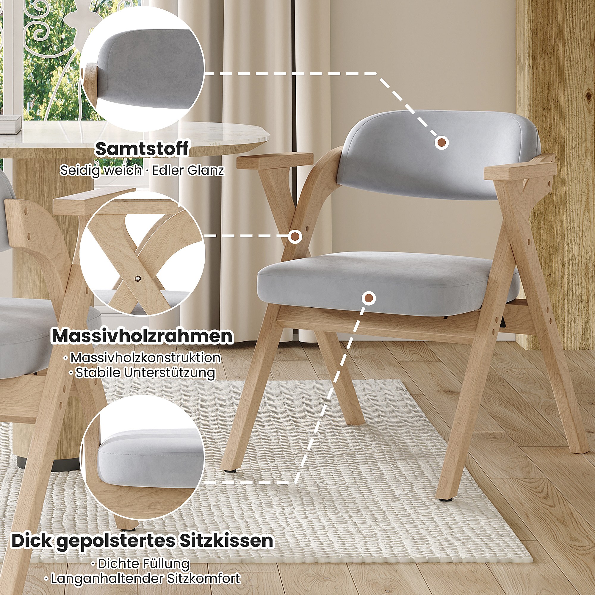 Set van 6 opvouwbare eetkamerstoelen - opvouwbaar en opbergbaar - fluwelen kussen - 64,5 x 66,5 x 73 cm - hout - grijs