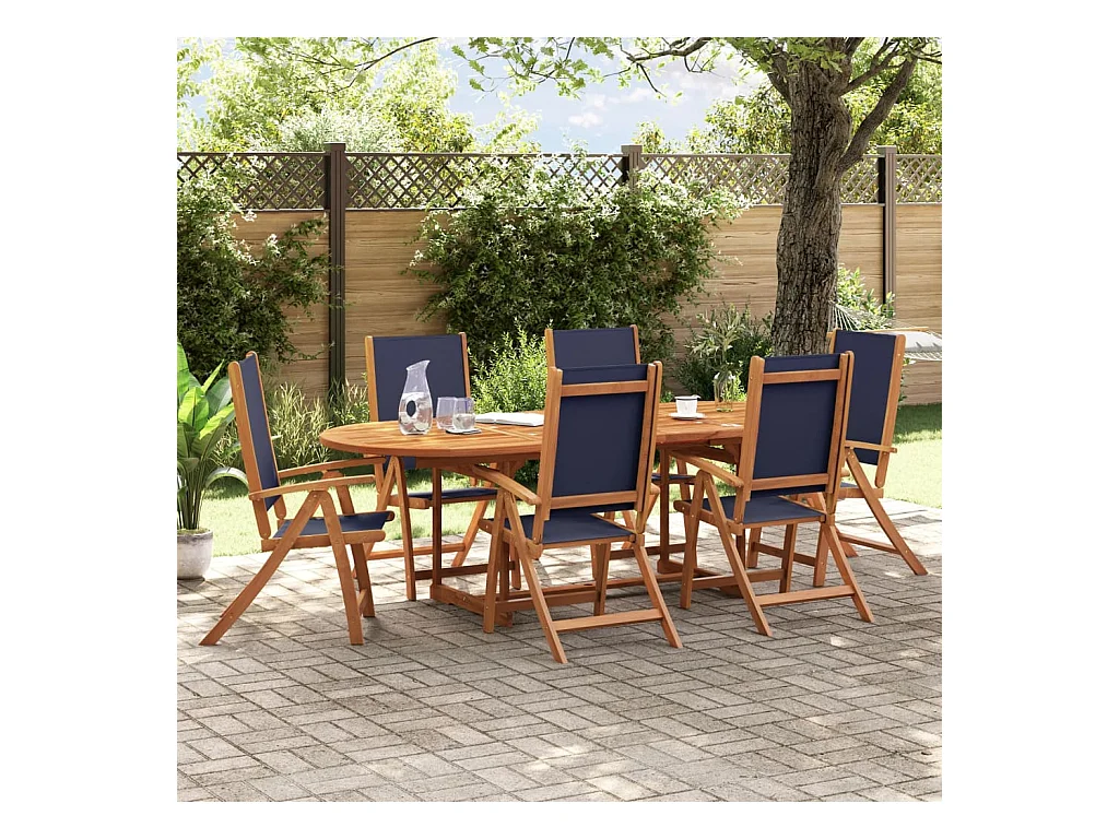 Set van 6 opvouwbare tuinstoelen, acaciahout en textileen
