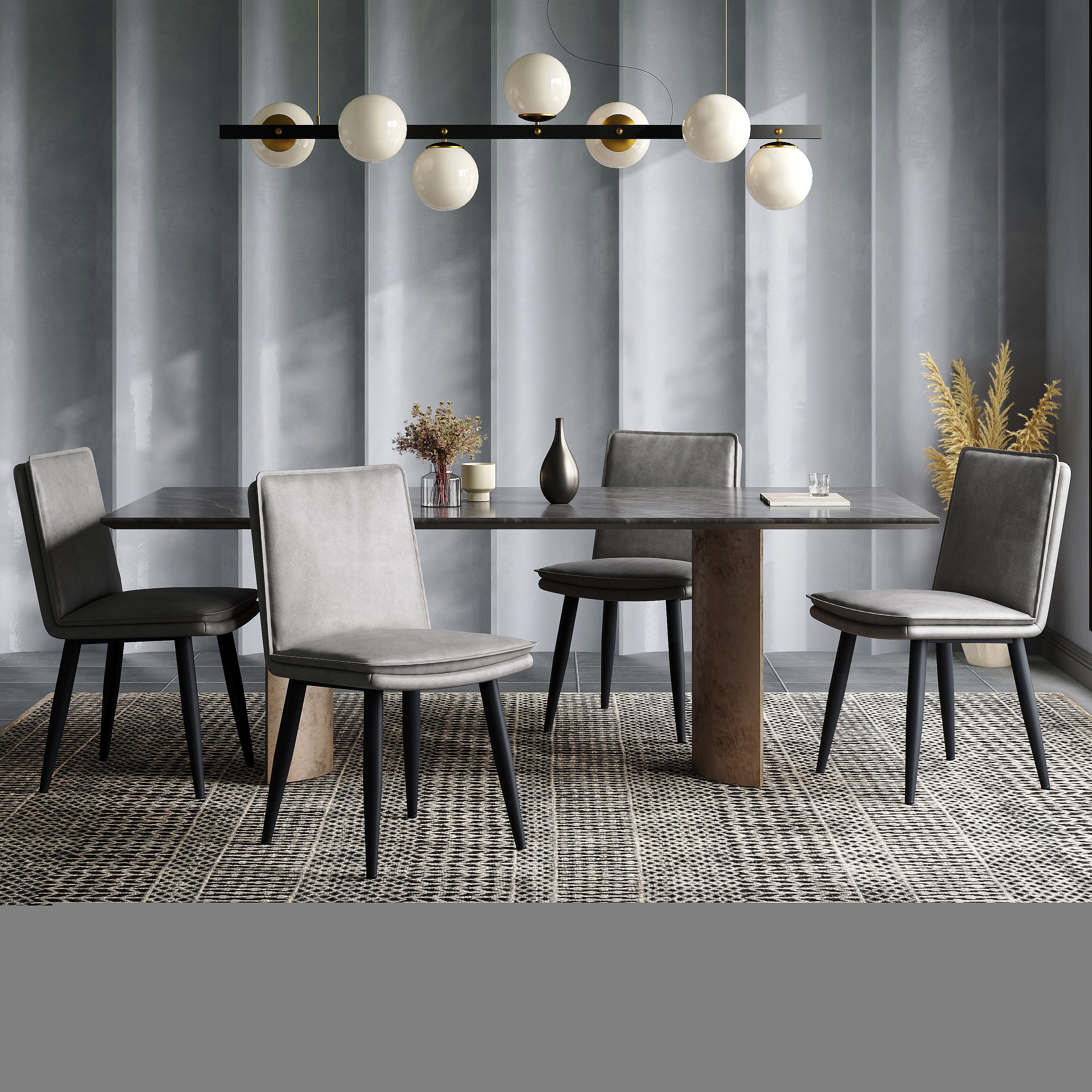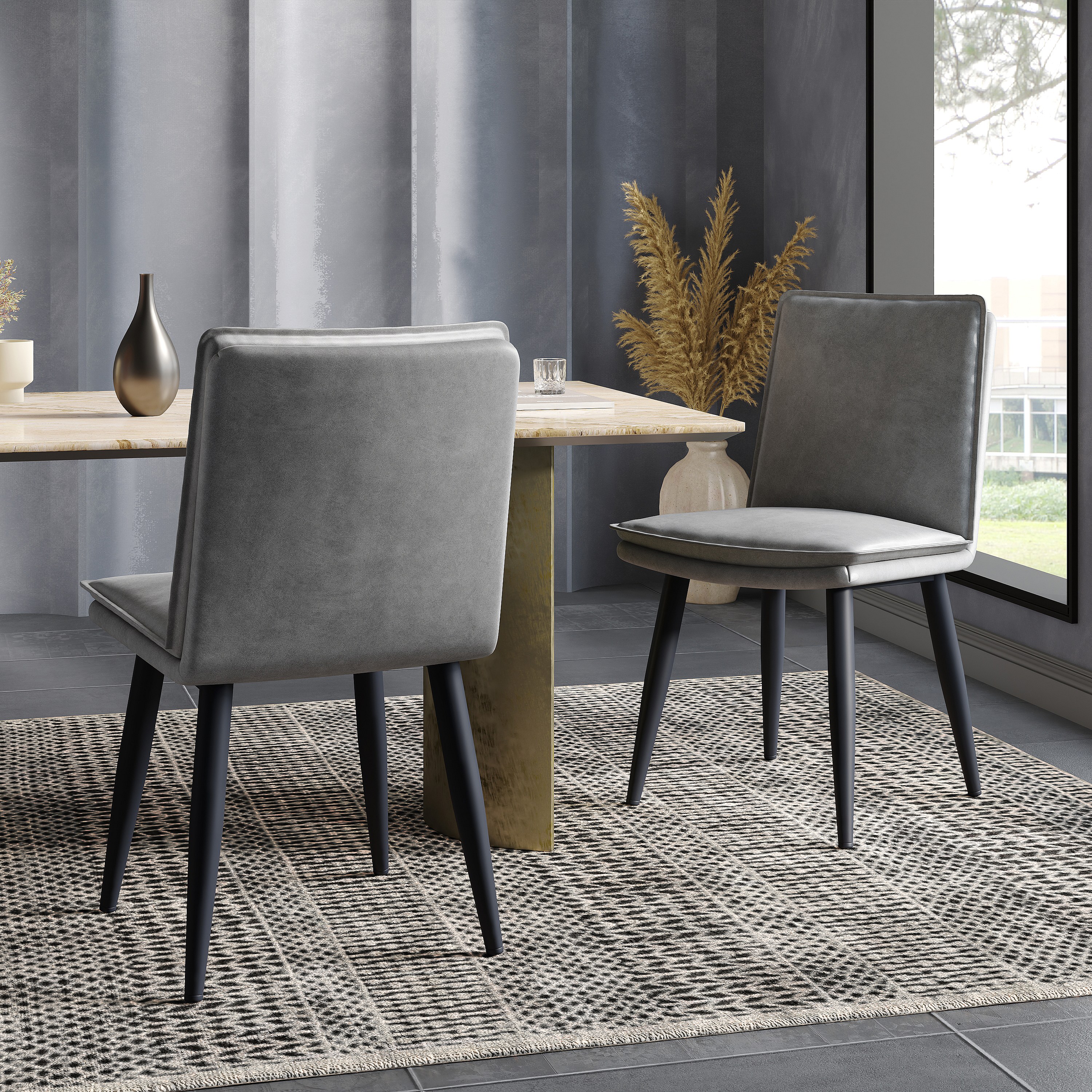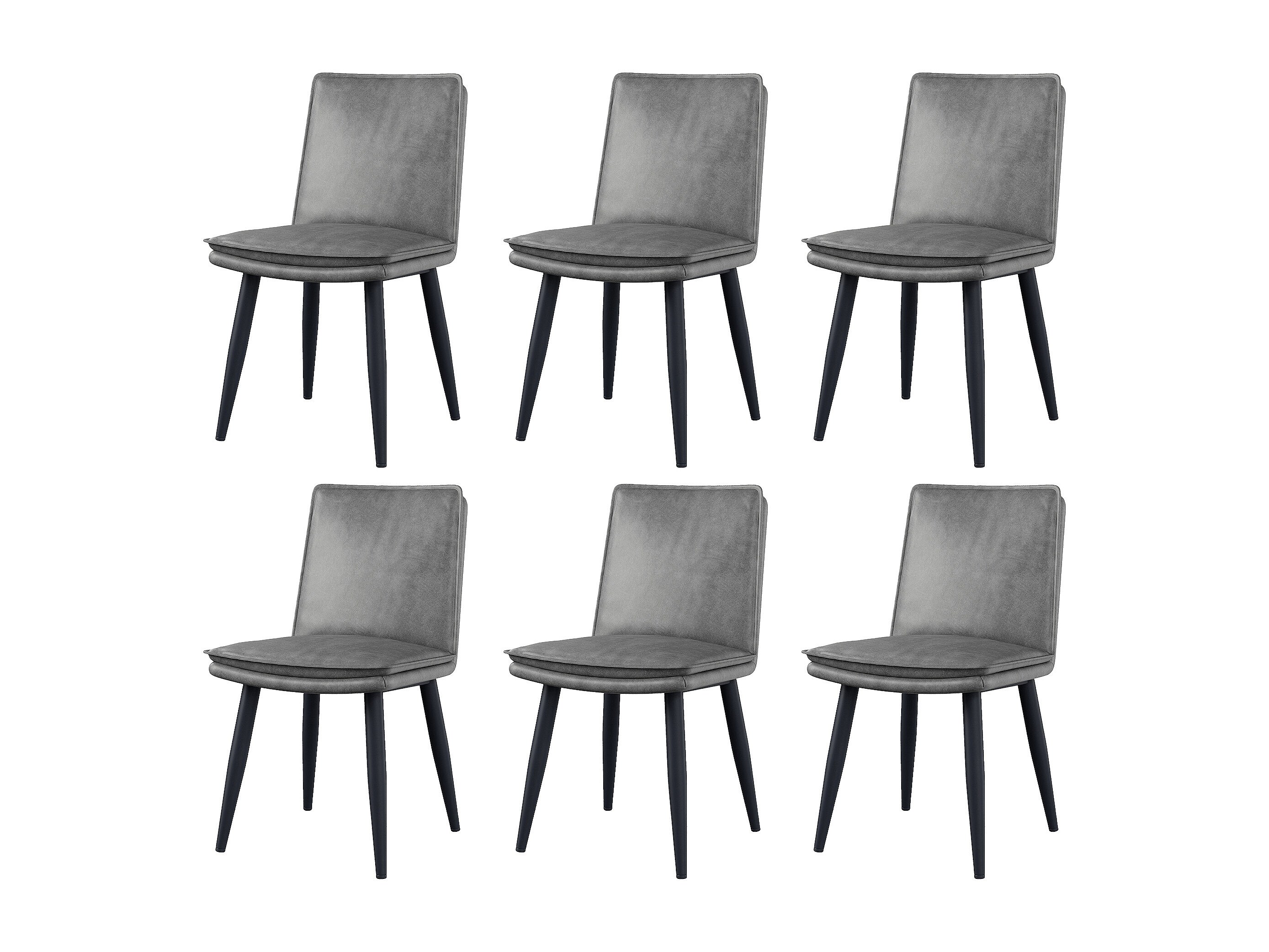 Set van 6 PU eetkamerstoelen - dubbele laag kussens - 49 x 57 x 84 cm - PU - grijs