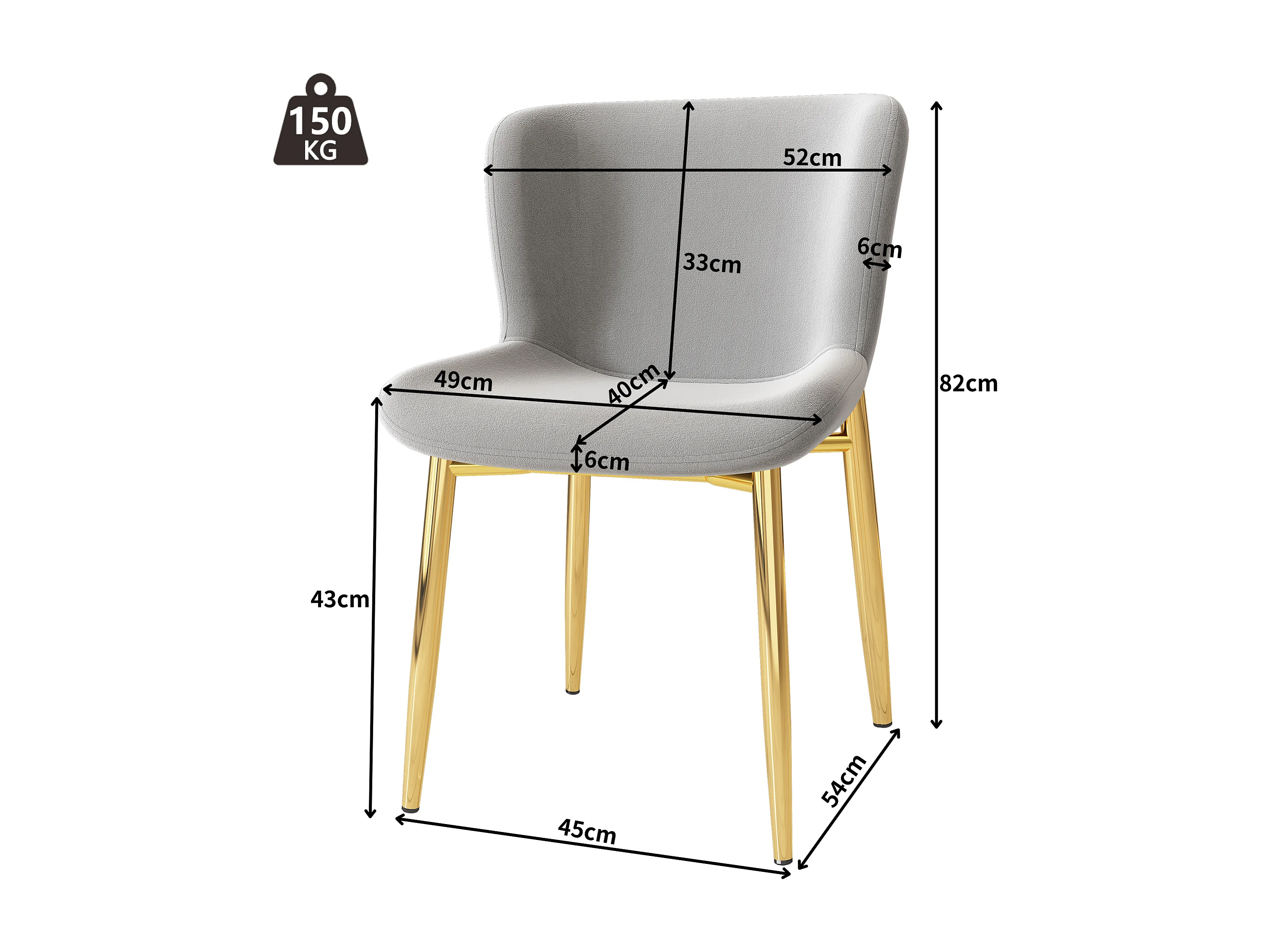 Set van 6 stoelen bekleed met fluweel - met gouden metalen poten - eigentijdse stijl - Grijs