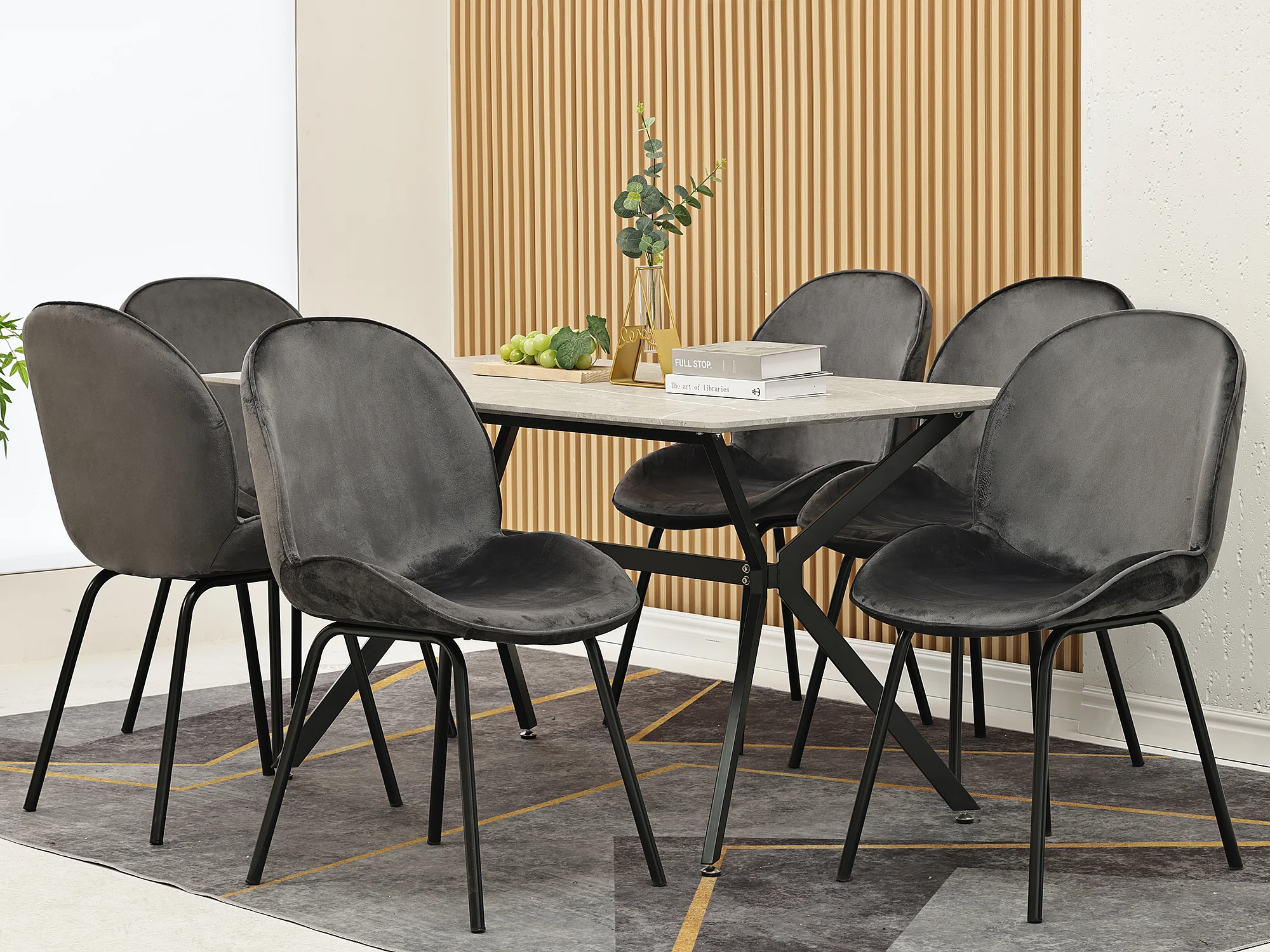 Set van 6 stoelen bekleed met fluweel - Ronde rugleuning - Metalen poten - Grijs