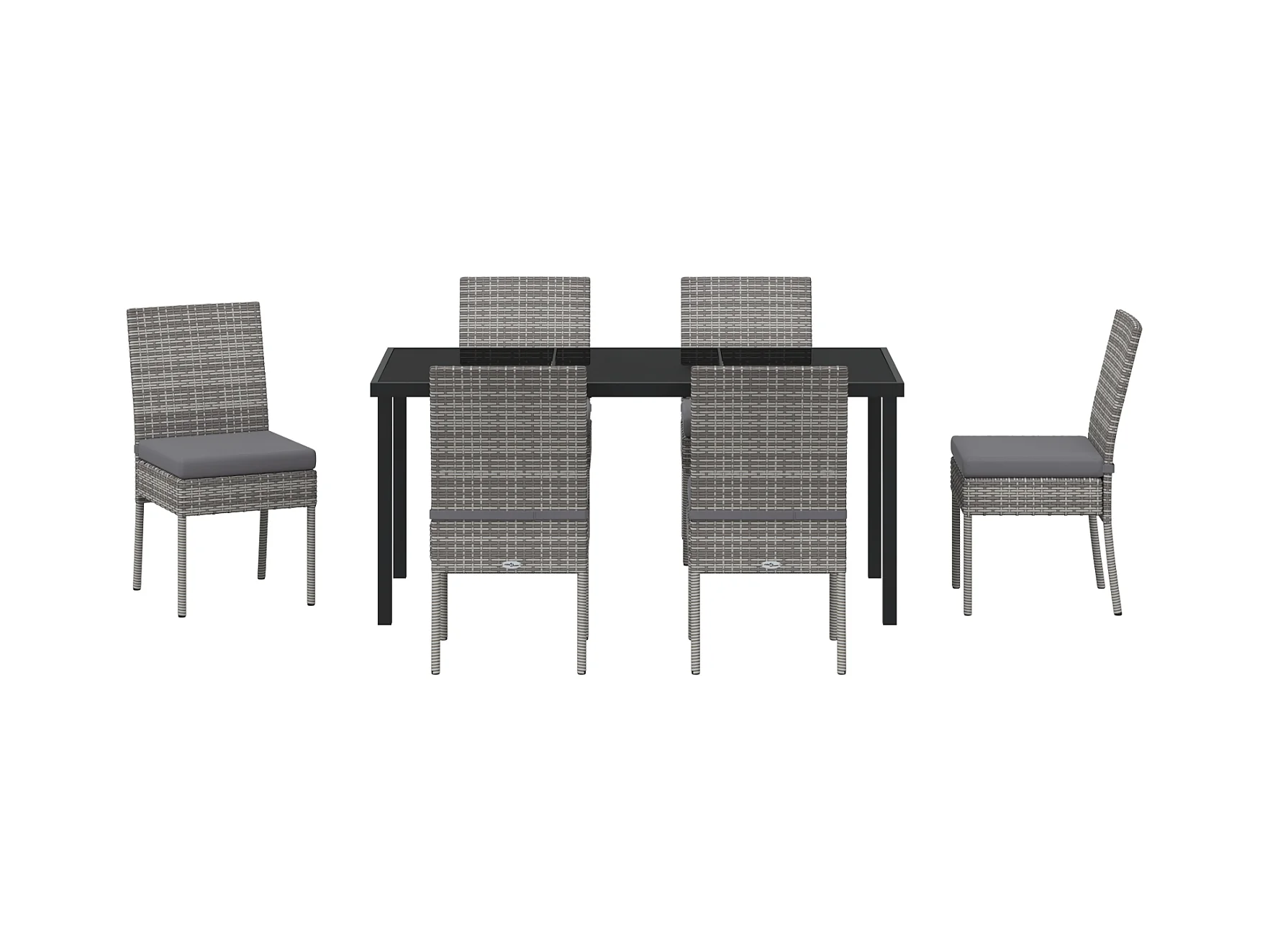 Set van 5 tuinstoelen met grijze synthetische rotan kussens
