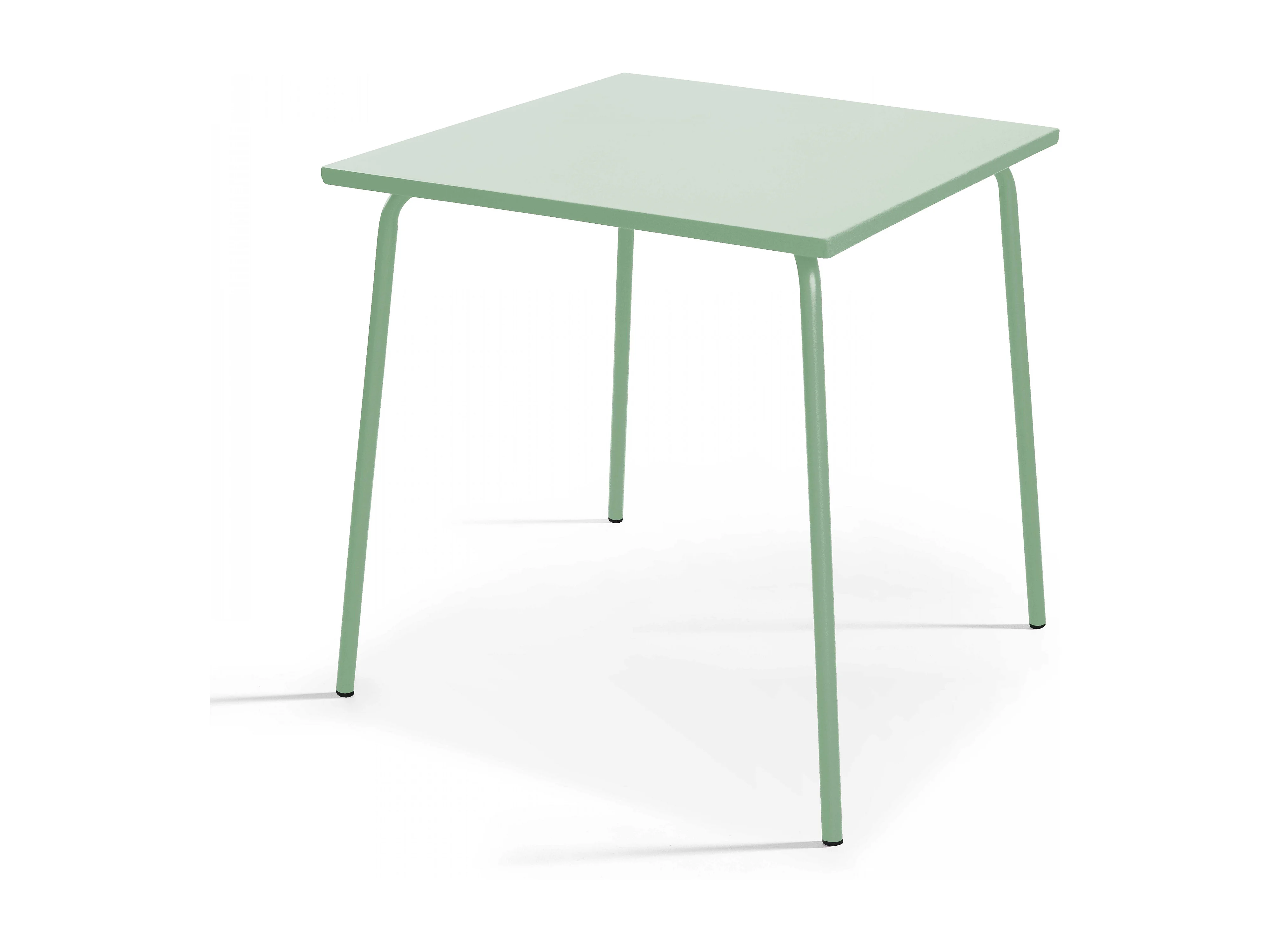 Set van een bistro tuintafel en 2 groene salontafels van staal