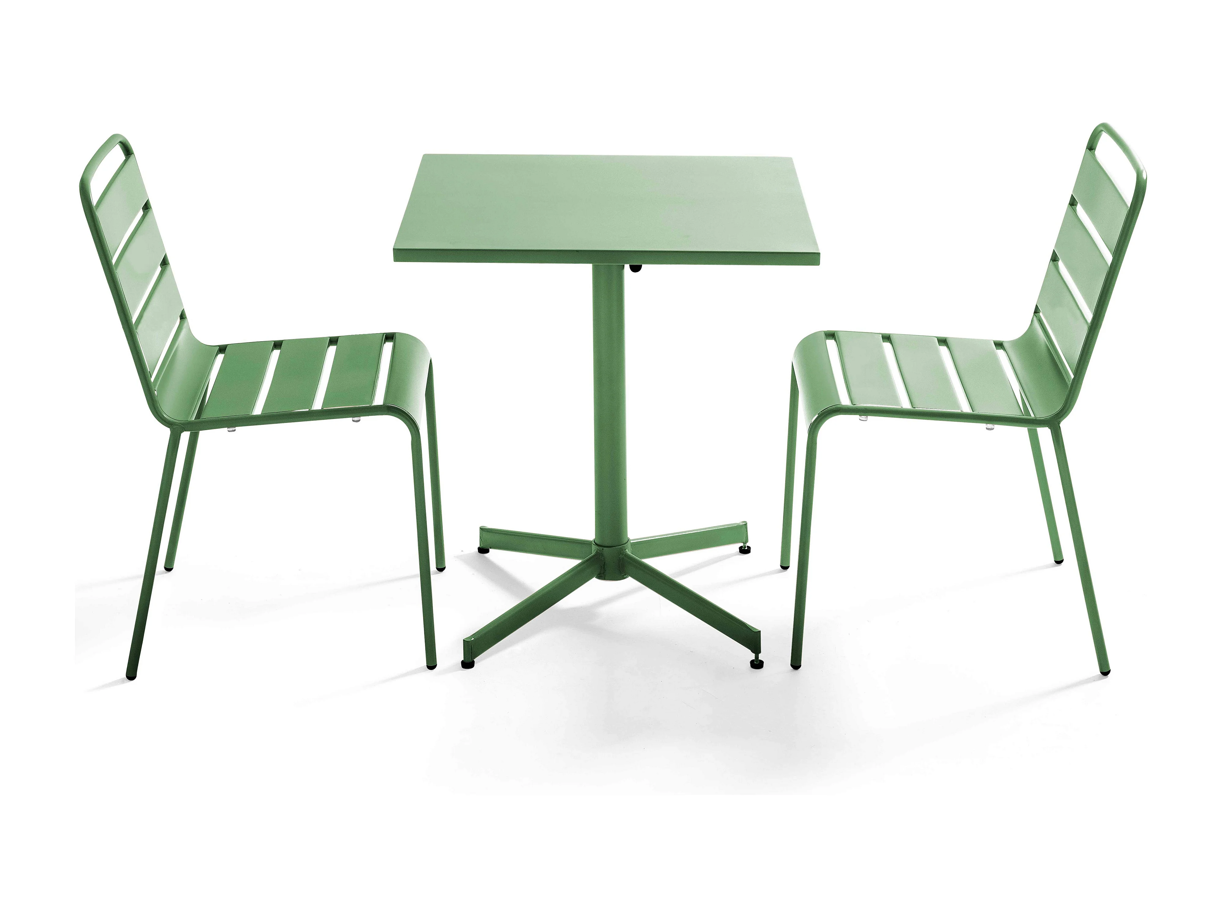 Set van een vierkante tuintafel en 2 bistrostoelen in cactusgroen