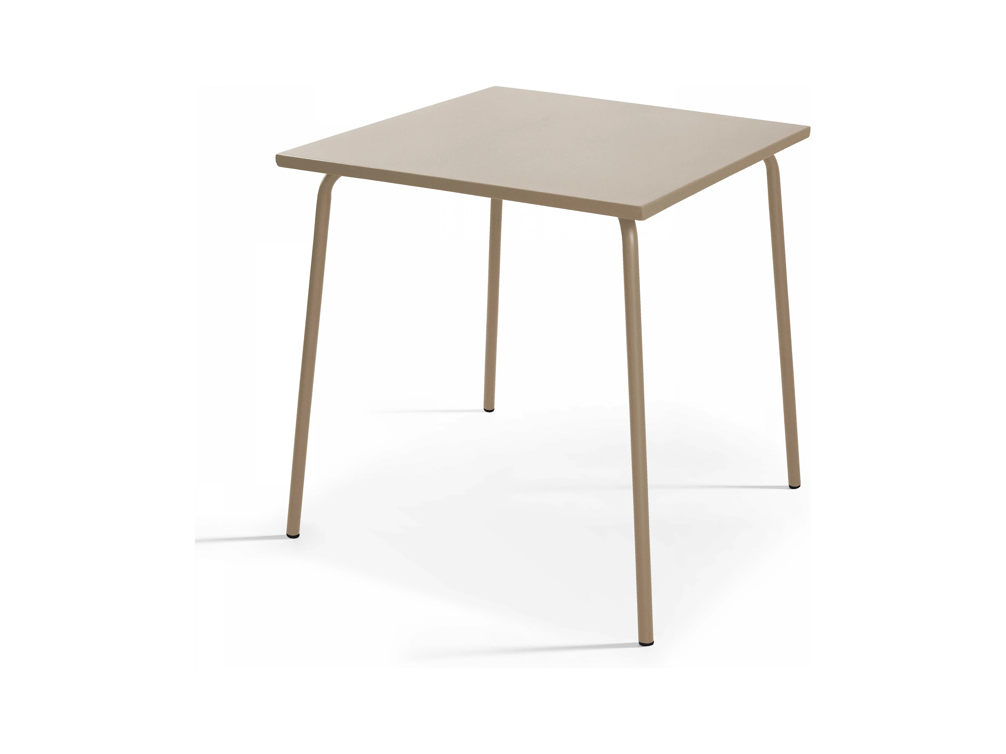 Set van een vierkante tuin tafel en 2 taupe stalen stoelen