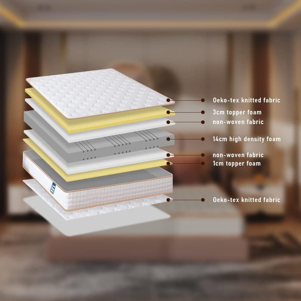 Set schuimmatras + gestoffeerd bedframe 160 x 200 cm, dikte matras 18 cm