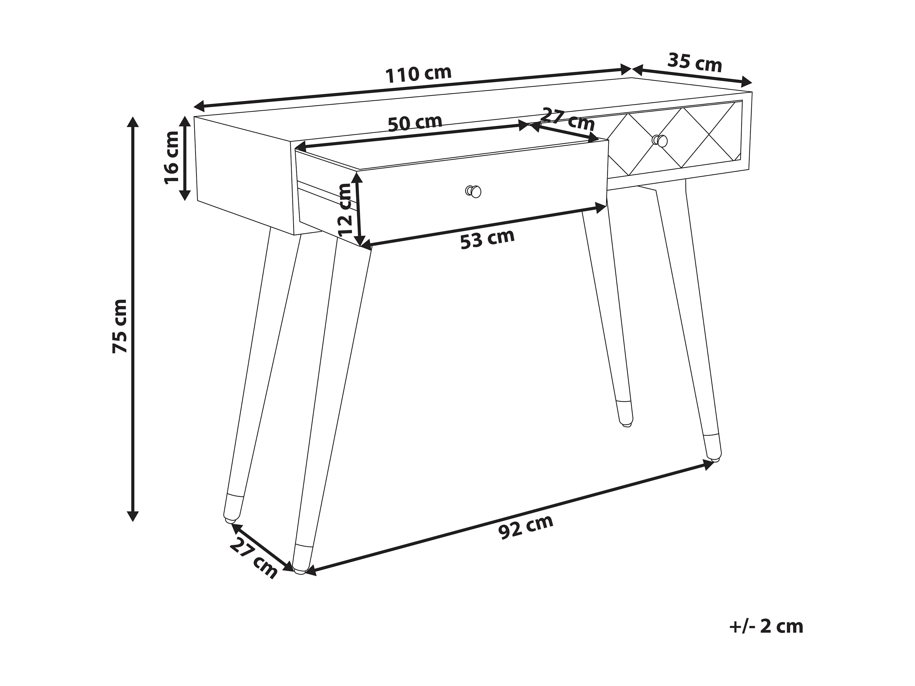 Sidetable met 2 lades lichtbruin GLENTANA
