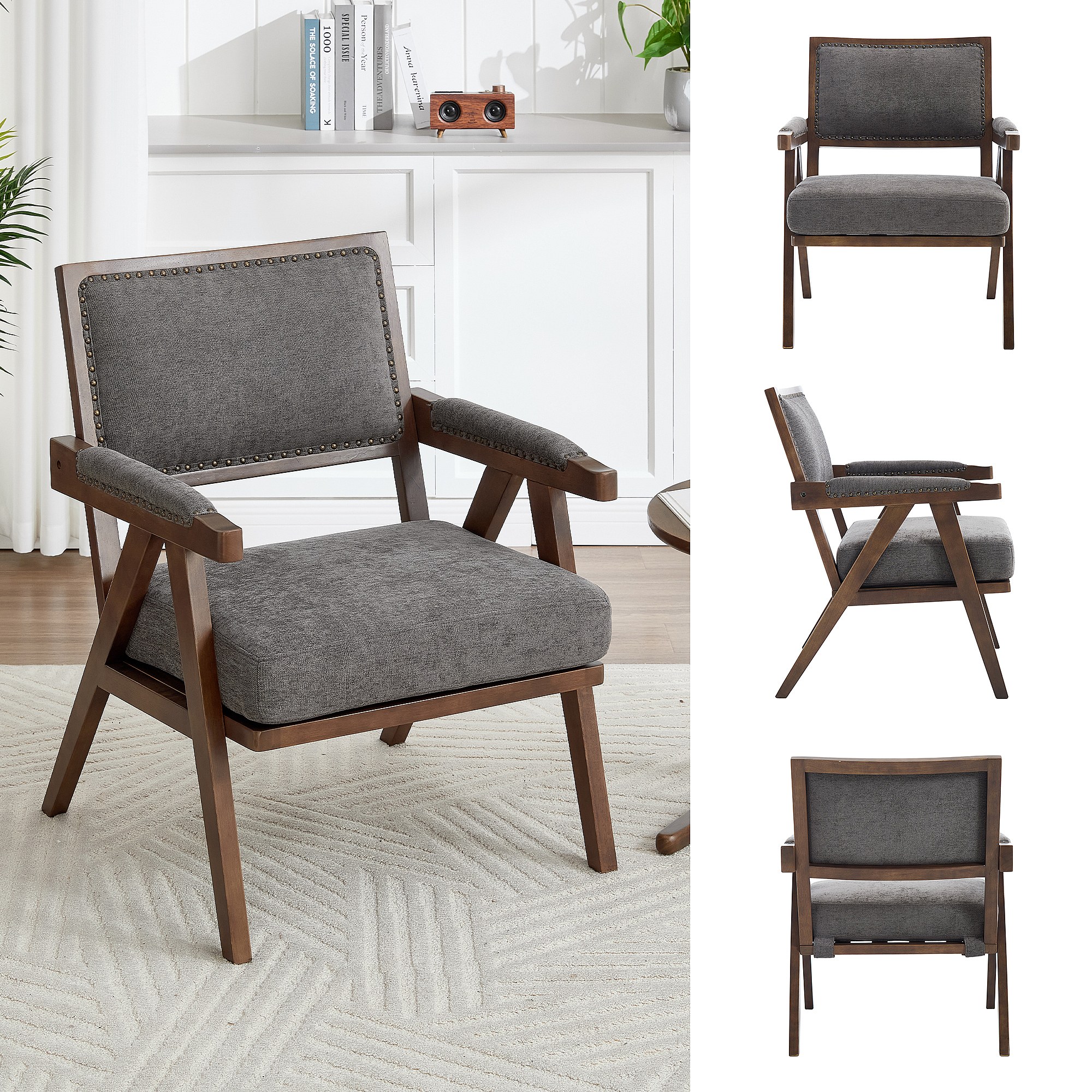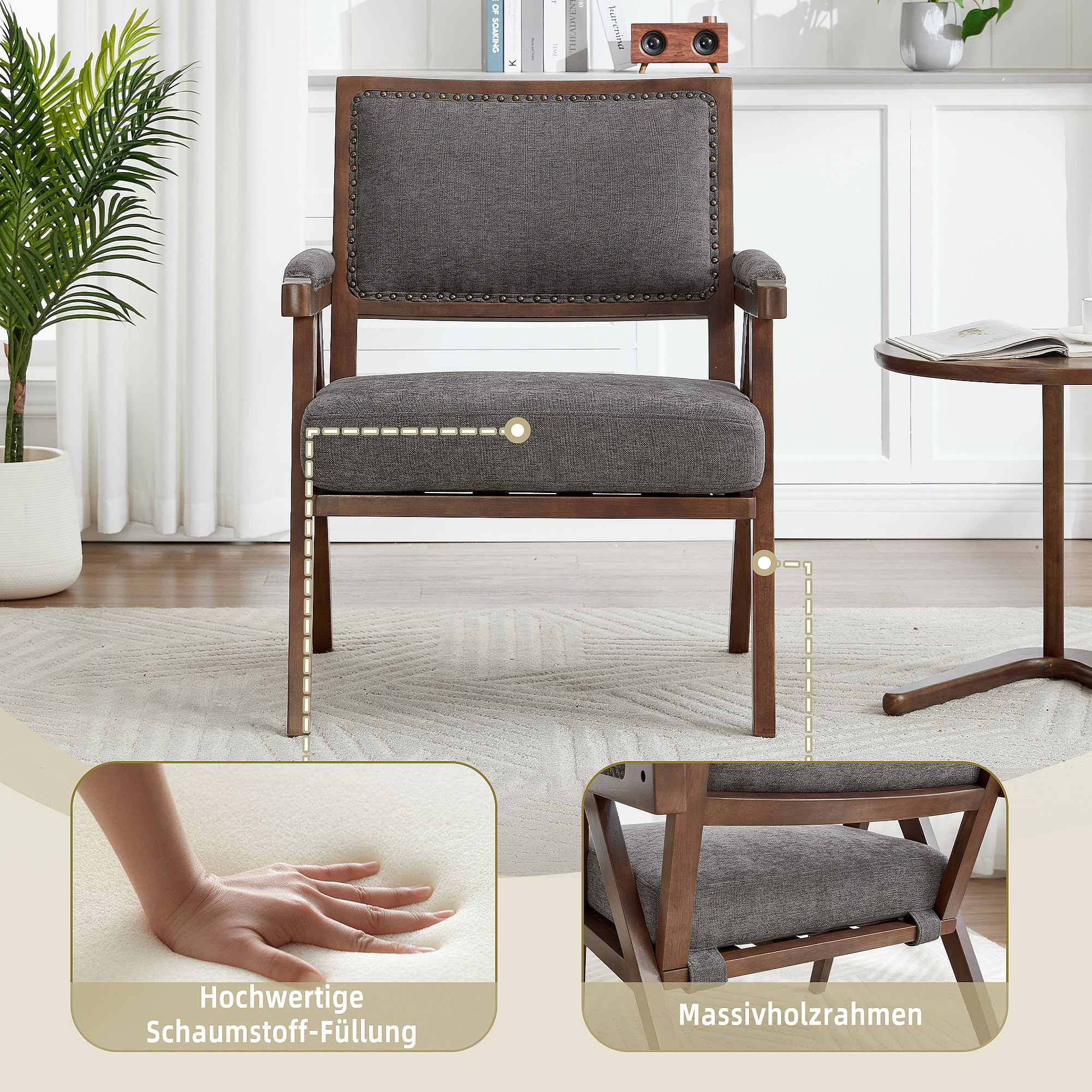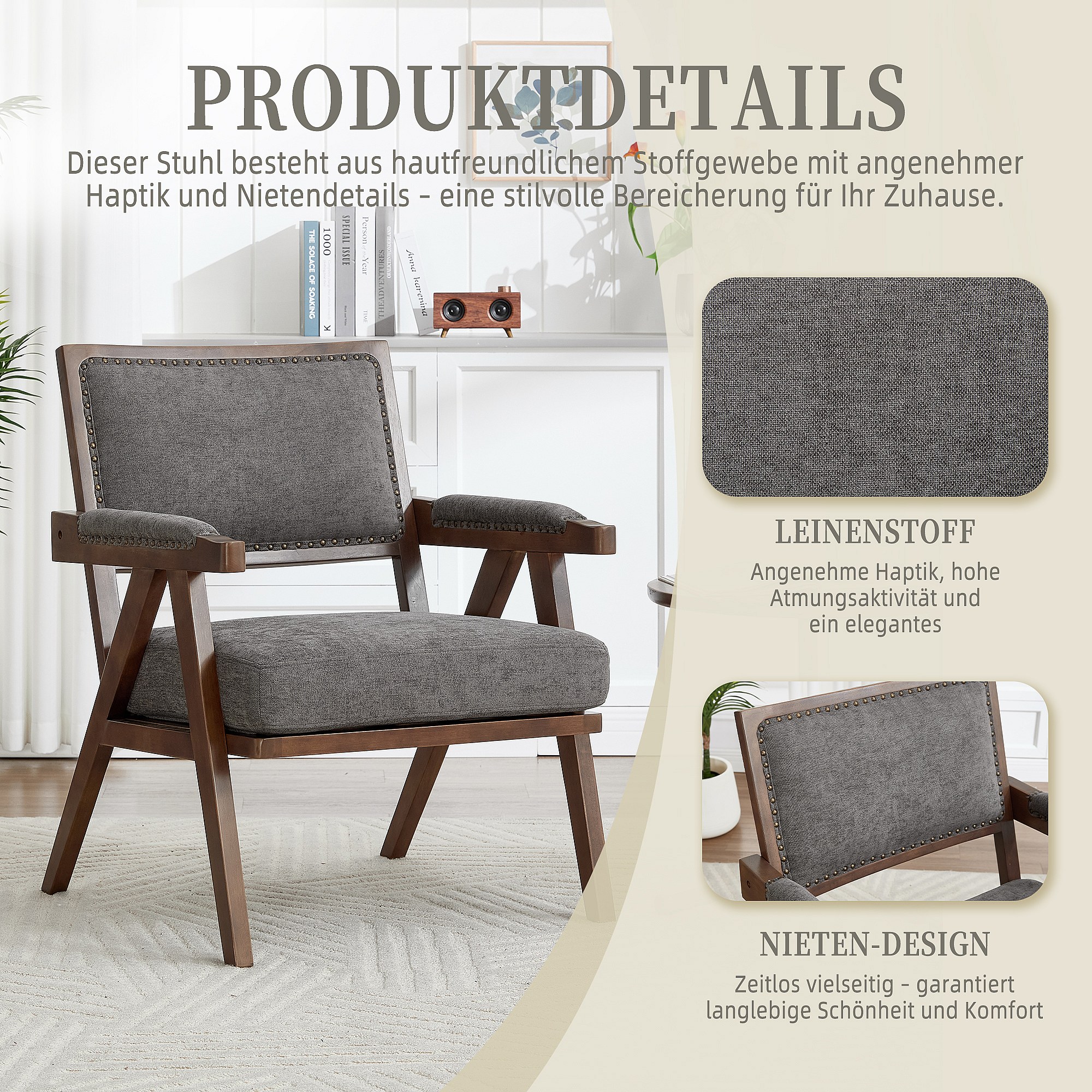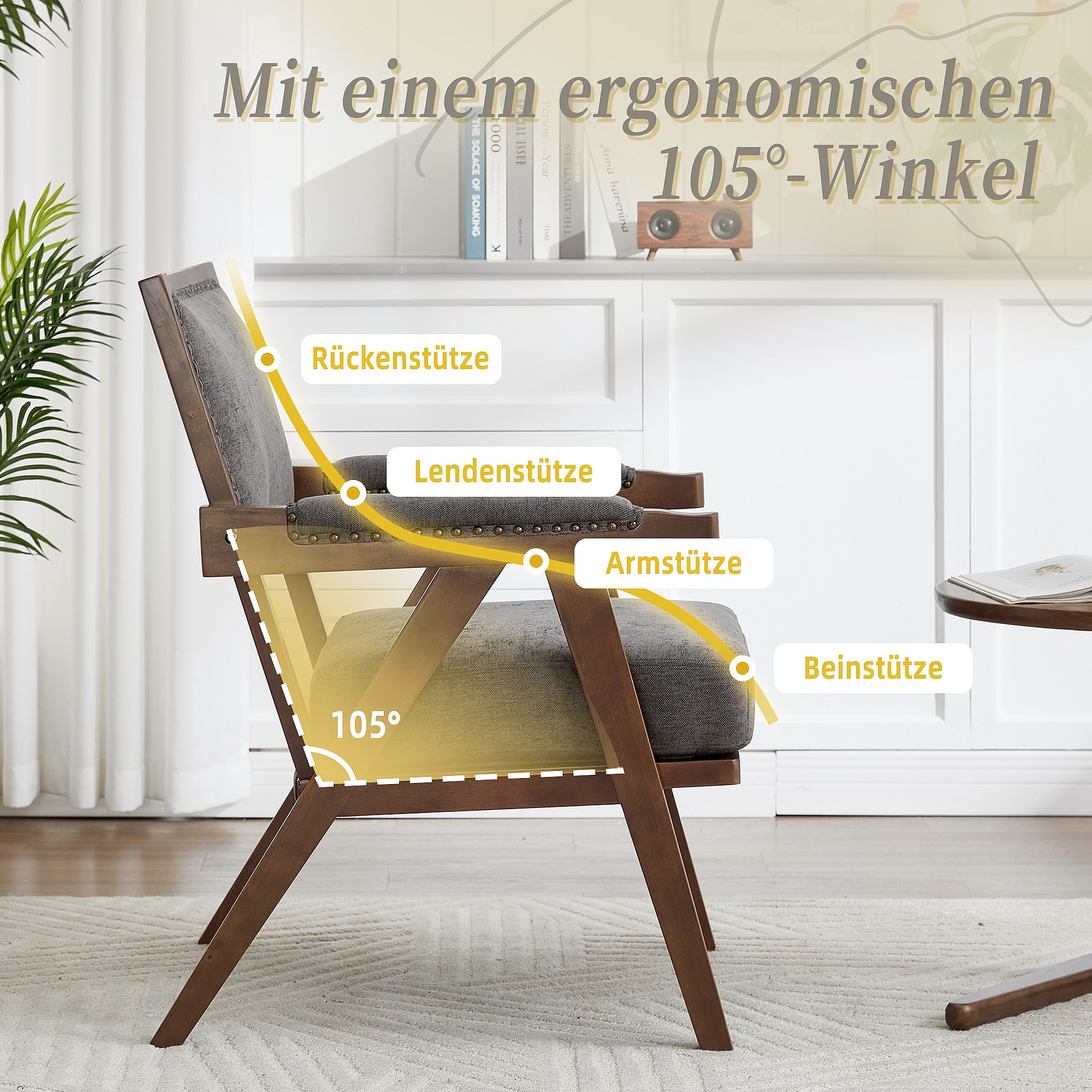 Sienna - Fauteuil met bekleding van katoen, linnen en massief hout - Vintage fauteuil met ergonomische rugleuning - Comfortabel voor woonkamer/slaapkamer/kantoor
