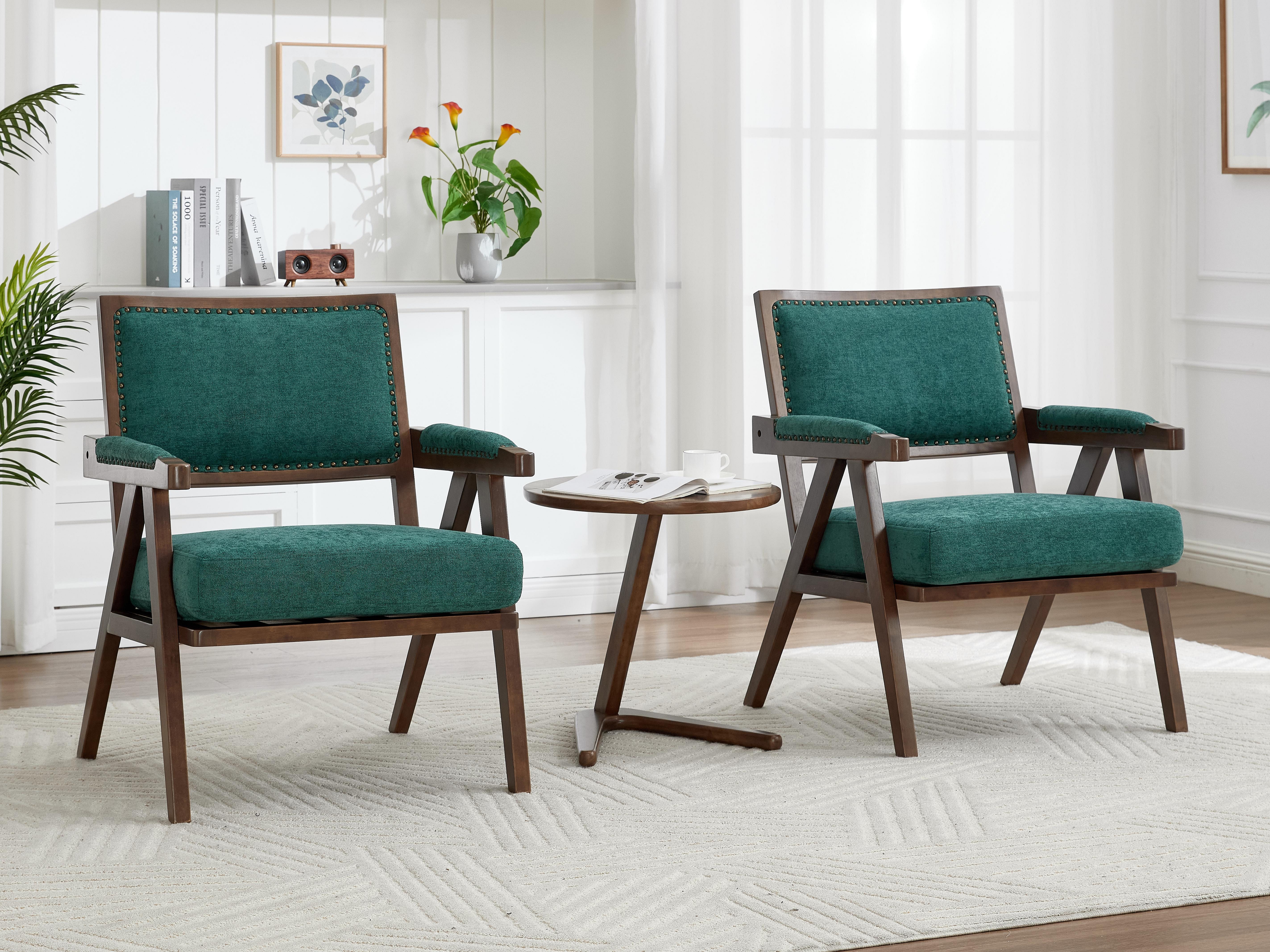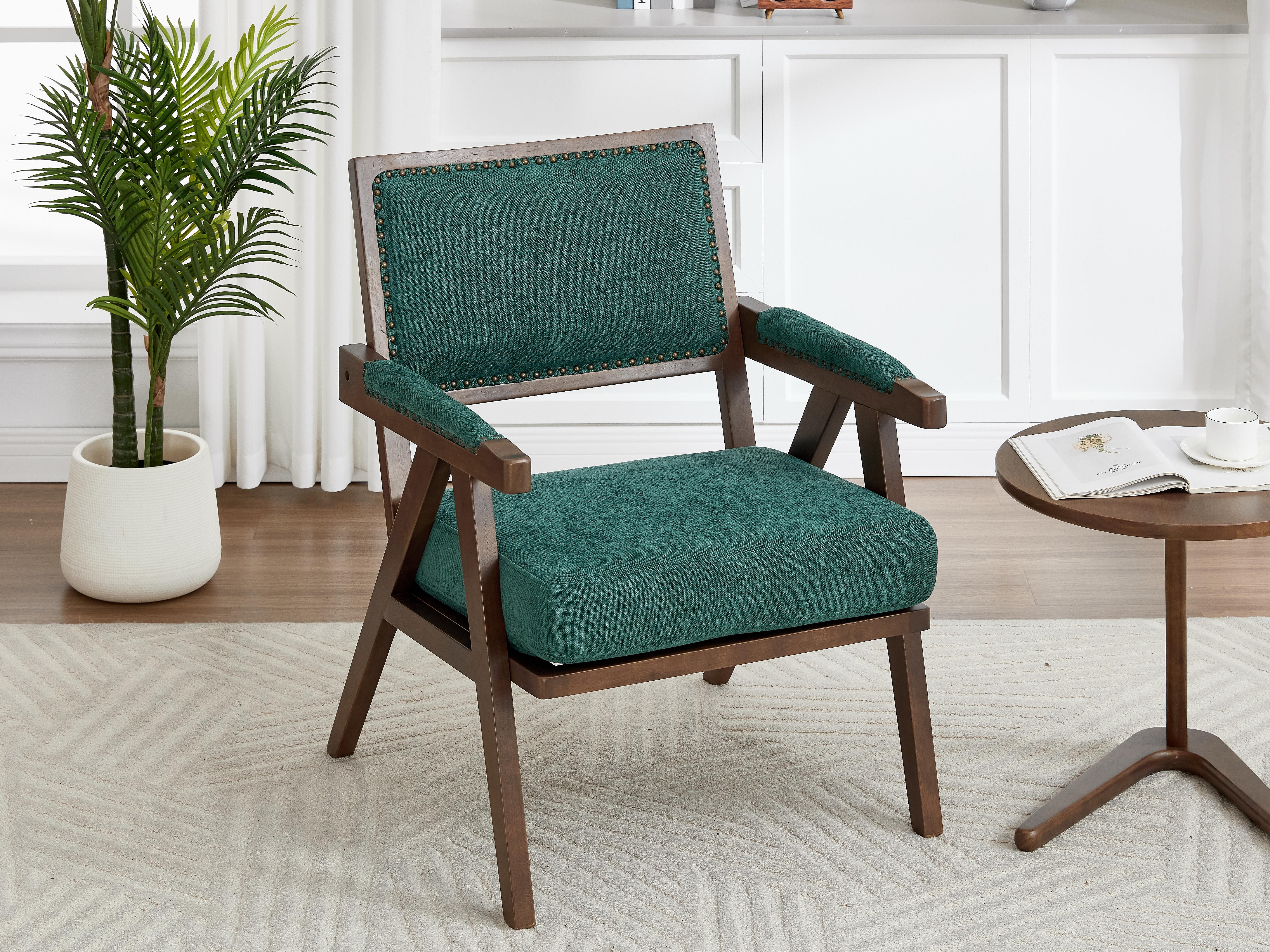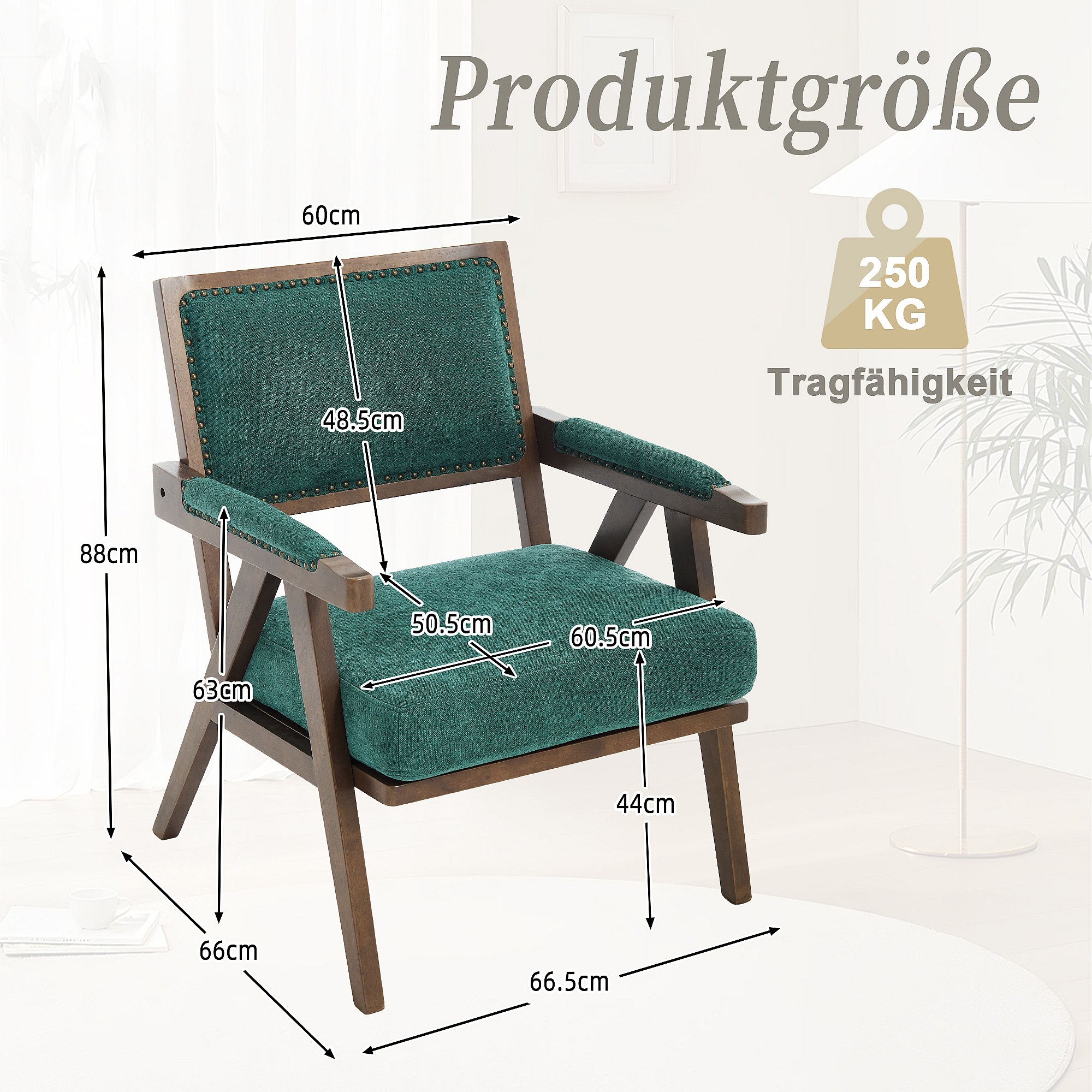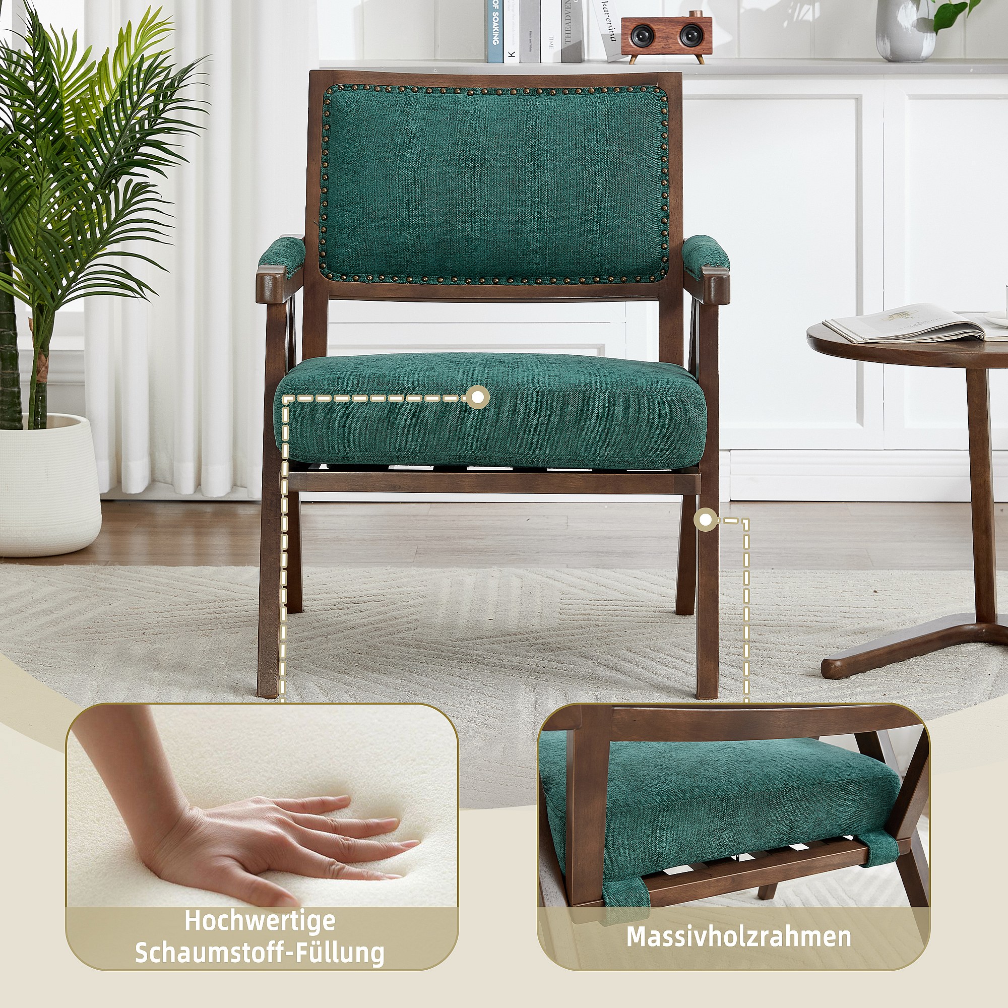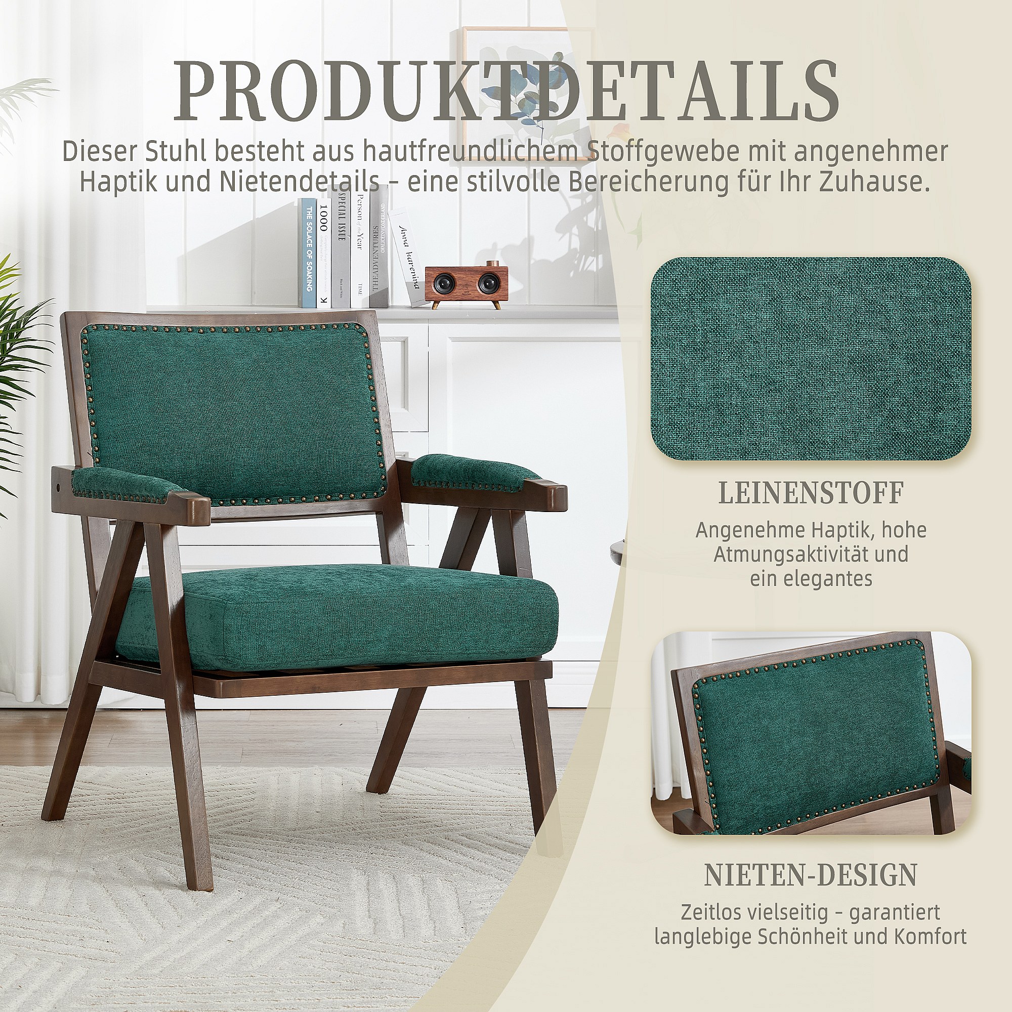 Sienna - Fauteuil met bekleding van katoen, linnen en massief hout - Vintage fauteuil met ergonomische rugleuning - Comfortabel voor woonkamer/slaapkamer/kantoor