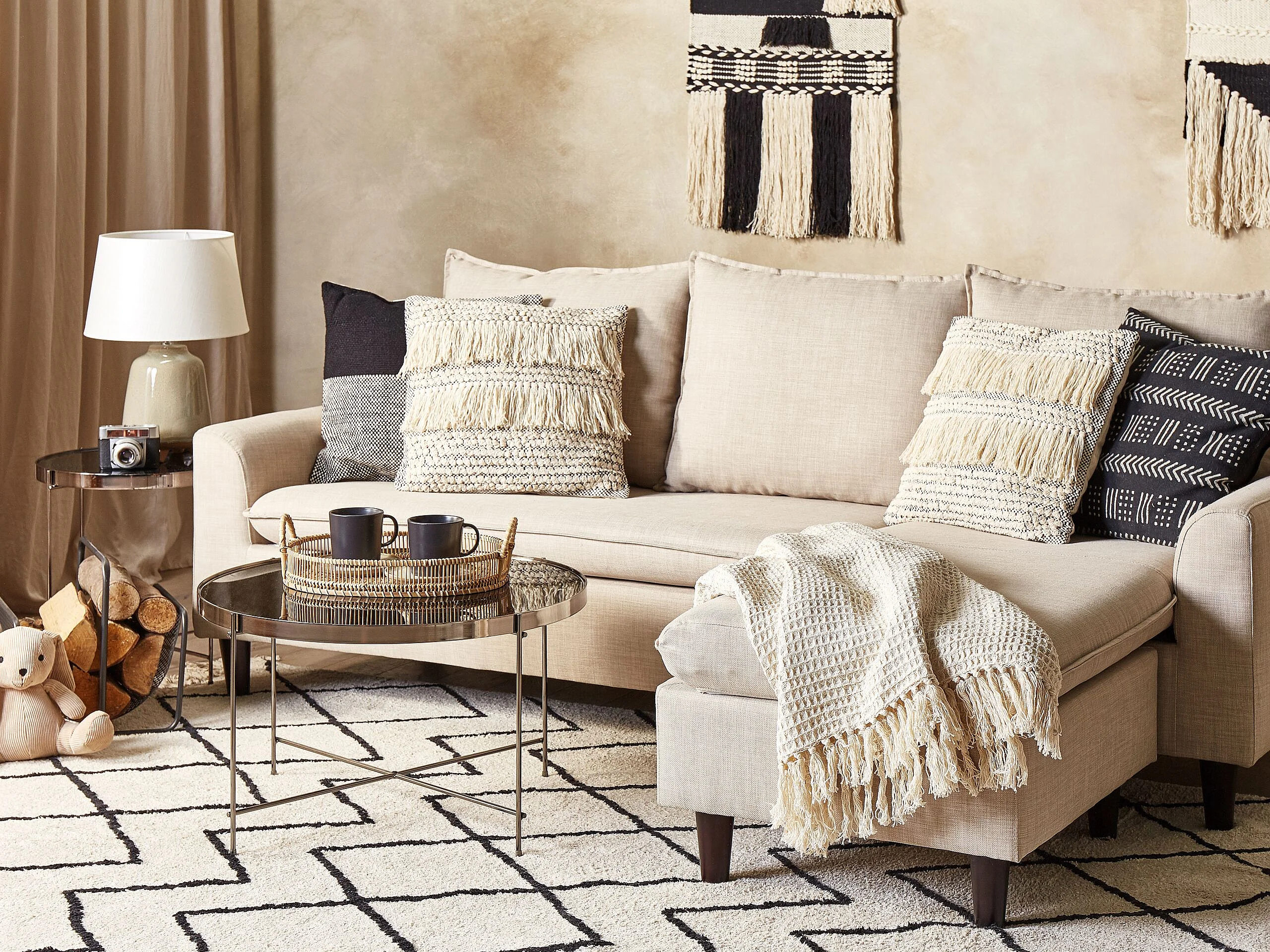 Sierkussen IRESINE Katoen 45 x 45 cm Beige Geometrisch patroon
