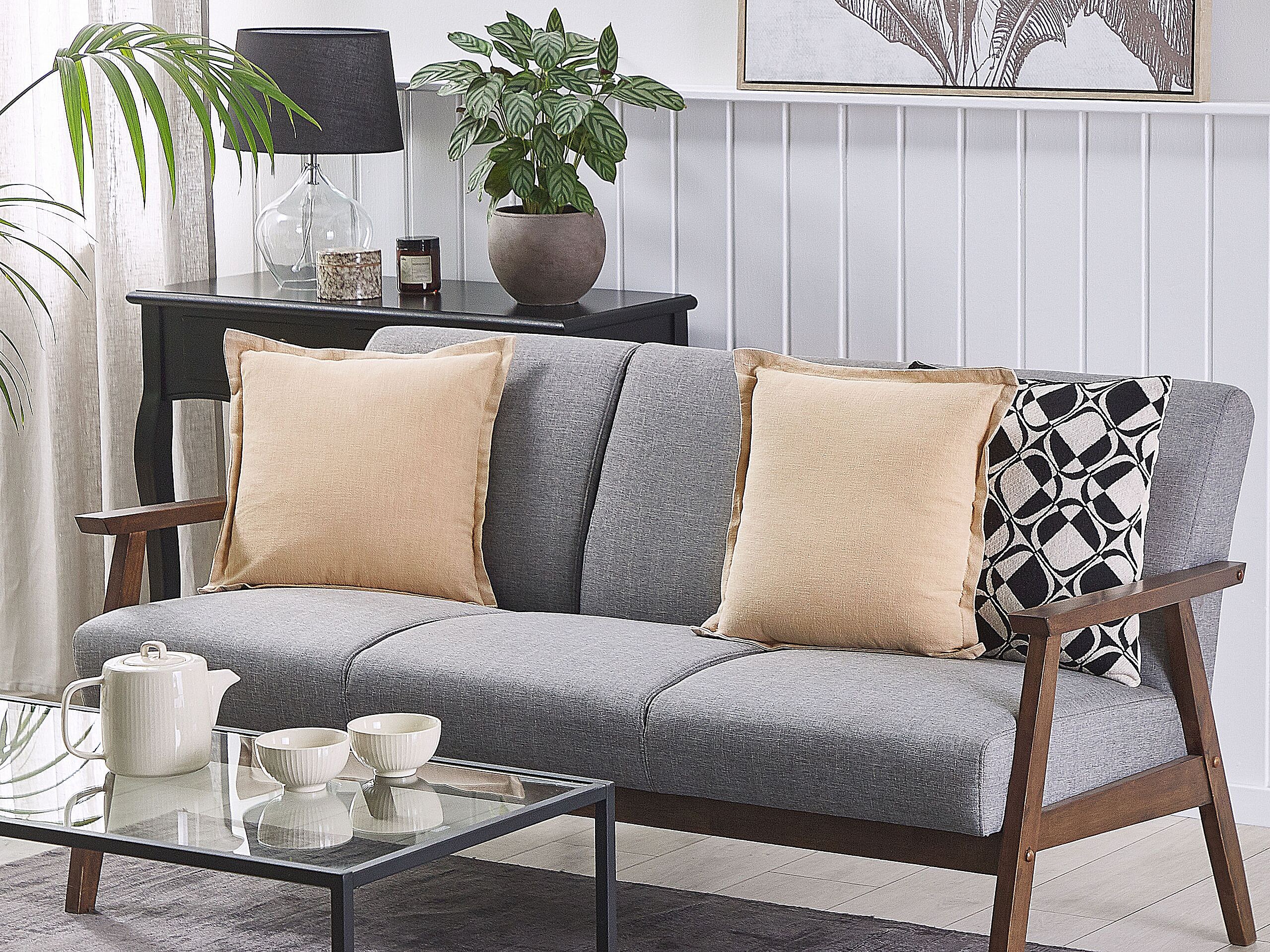 Set van 2 decoratieve kussens BASALIM 45 x 45 cm Beige Effen
