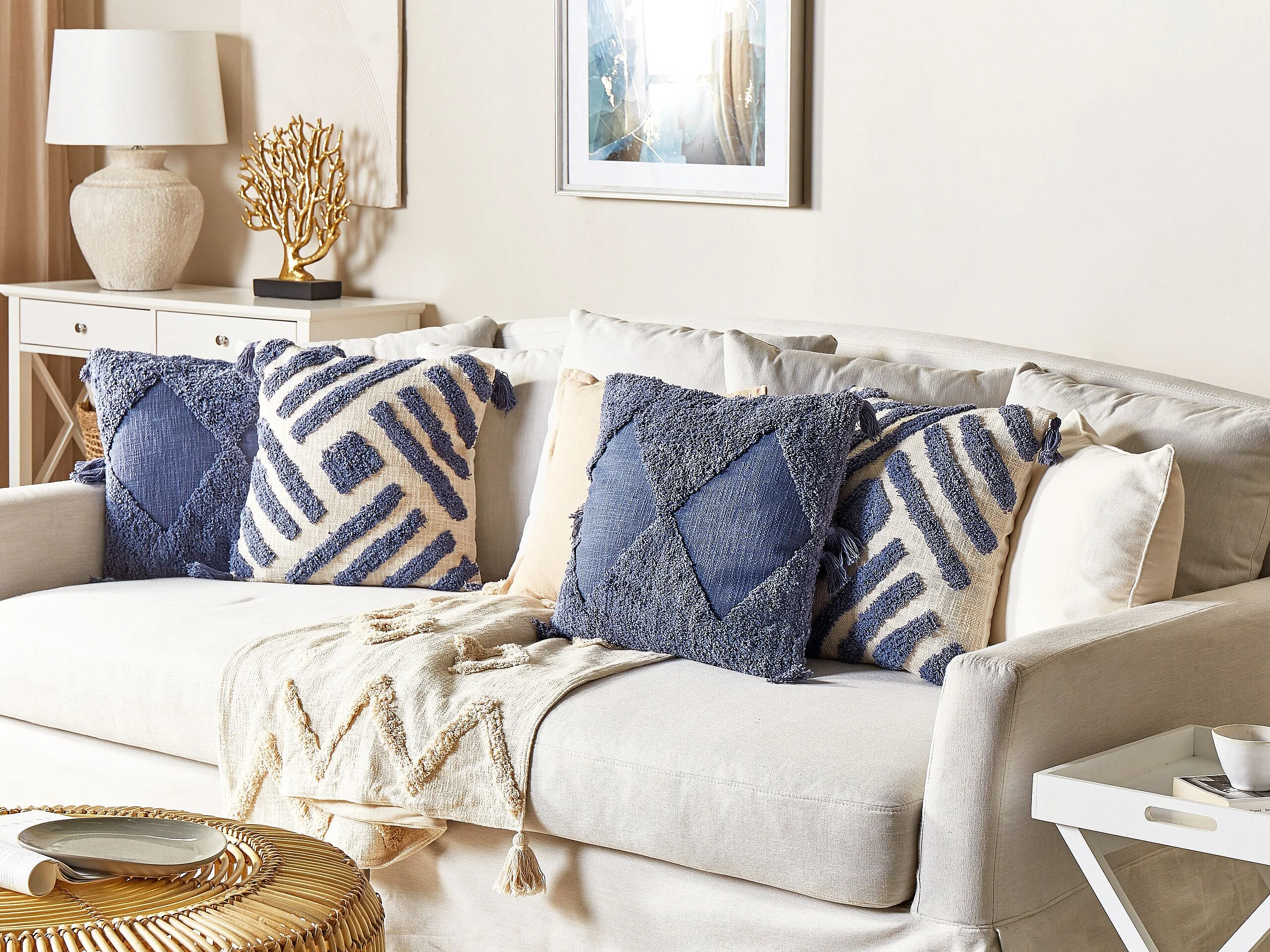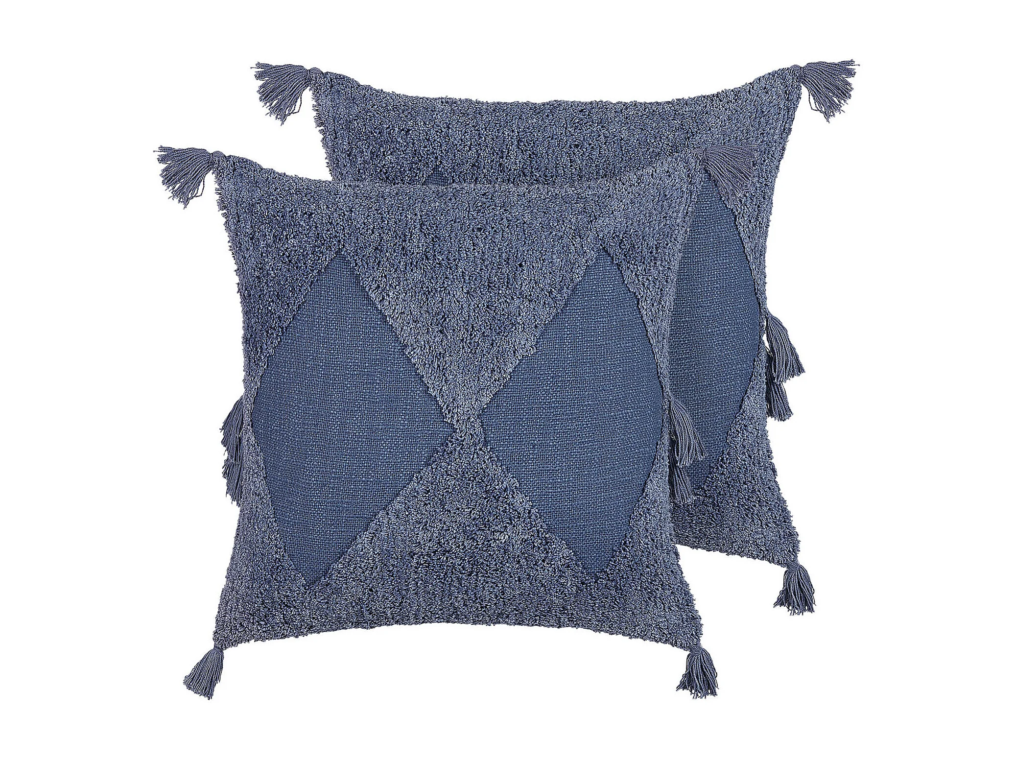 Set van 2 decoratieve kussens AVIUM Katoen 45 x 45 cm Blauw Geometrisch patroon