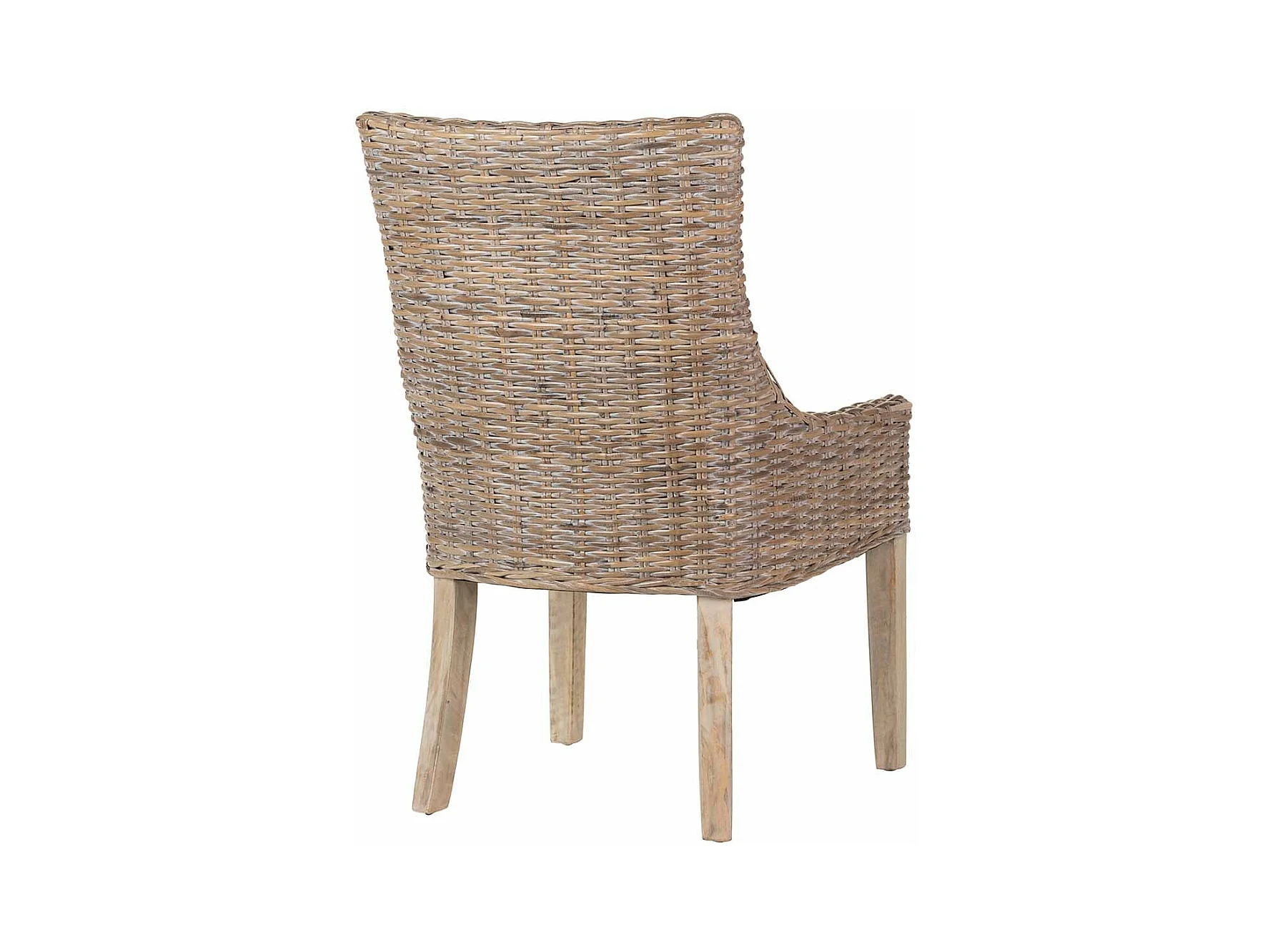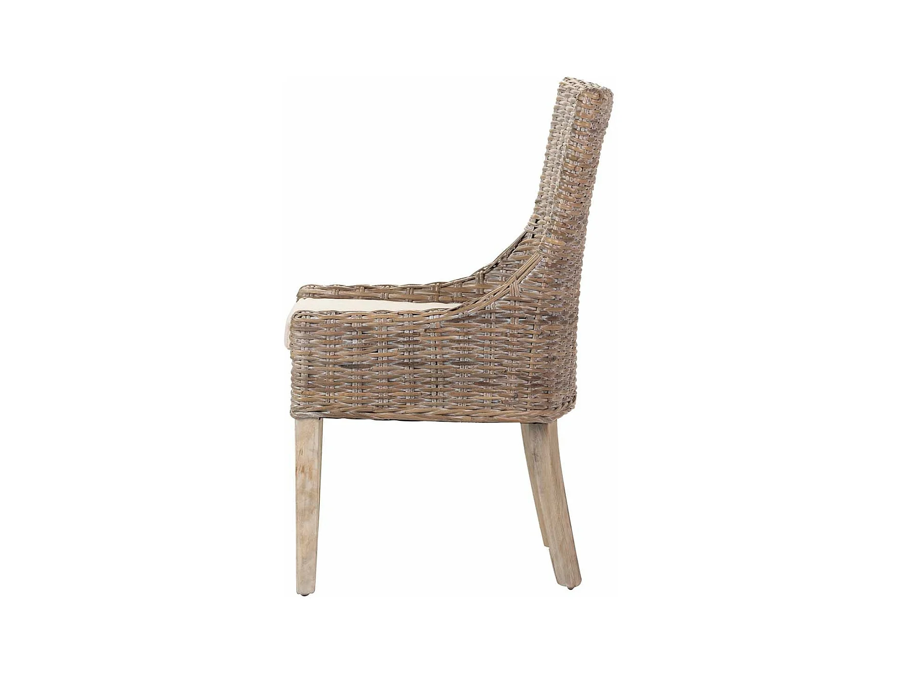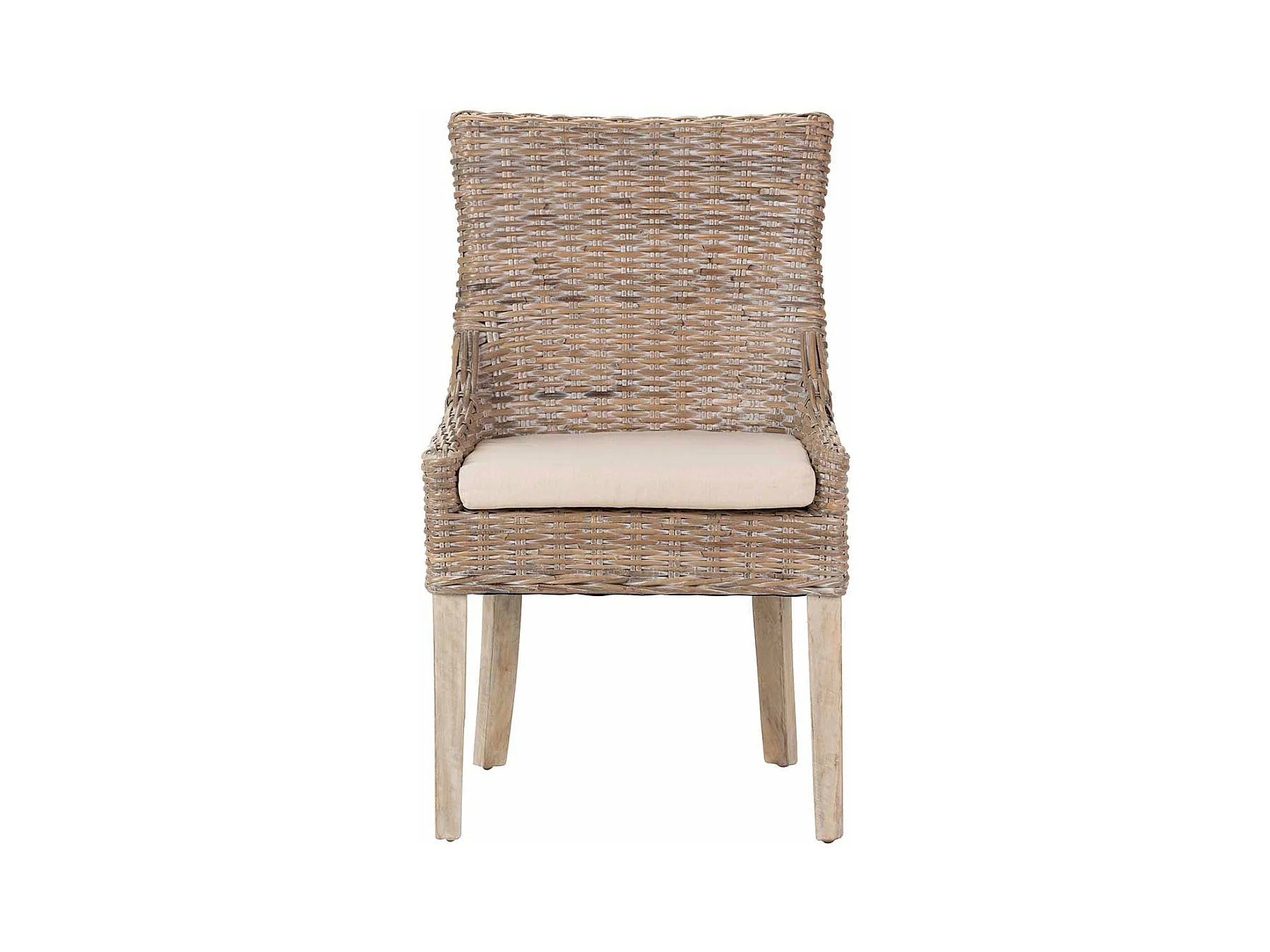 Silla Ratan Lino Madera Marrón Beige 54x52x91 Cm