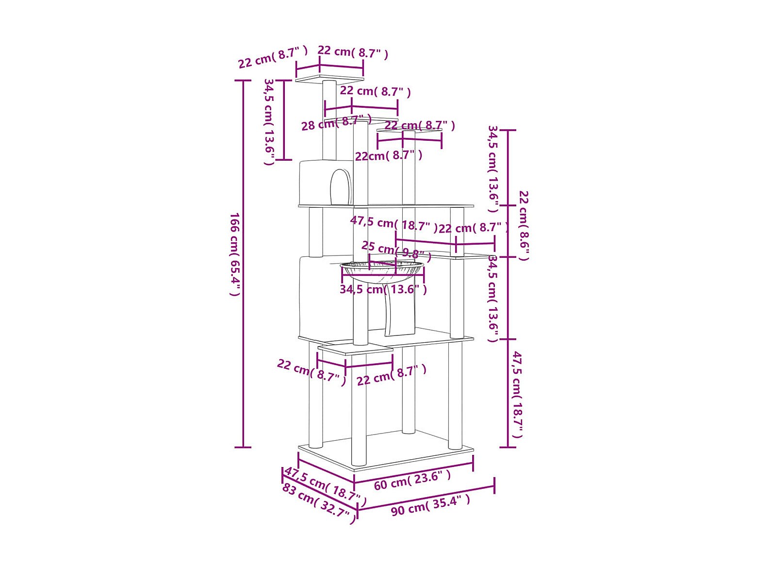 Sindar Kattenmeubel met sisal krabpalen 166 cm donkergrijs