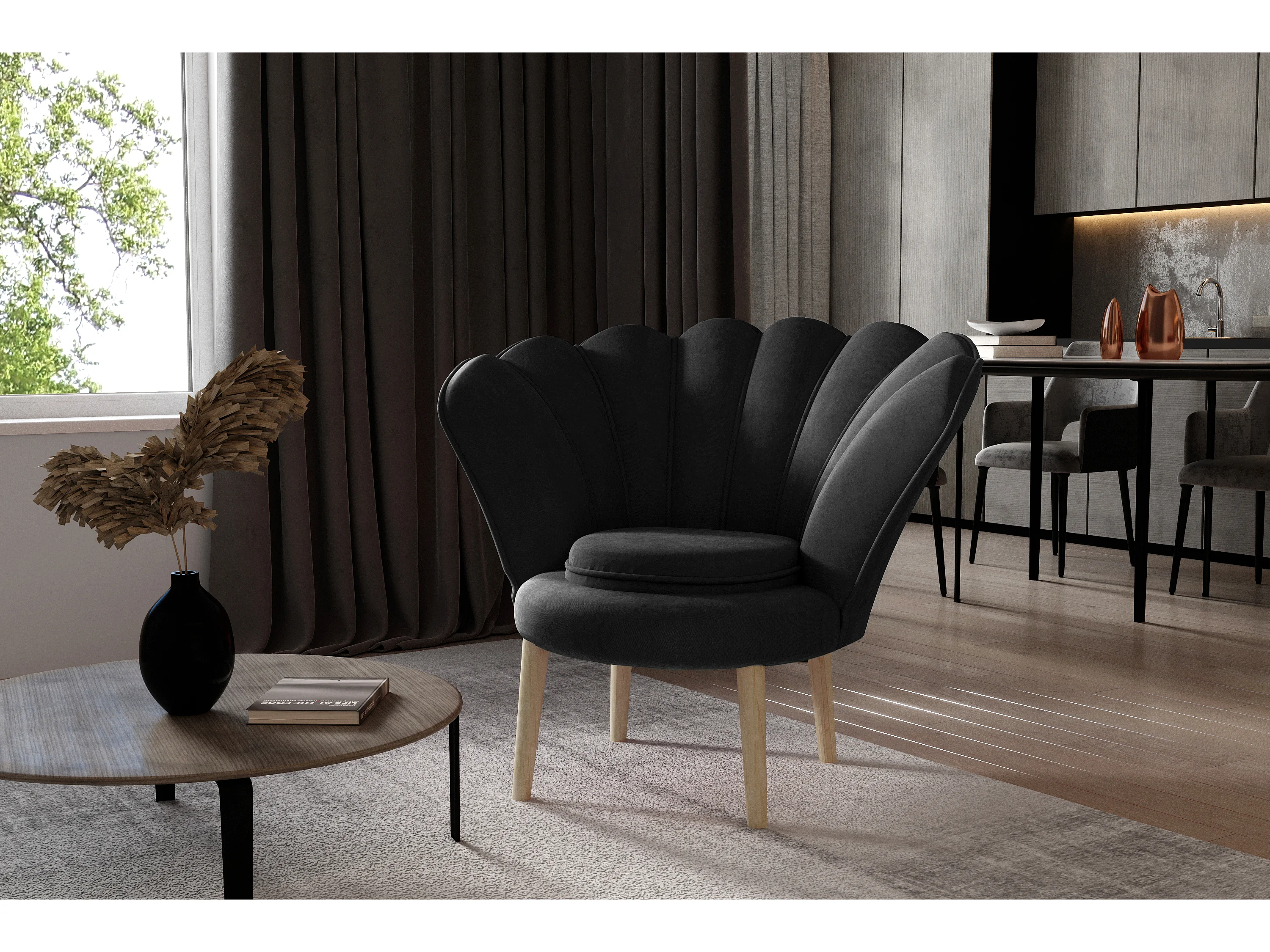 Skidra antraciet fluwelen kuipfauteuil