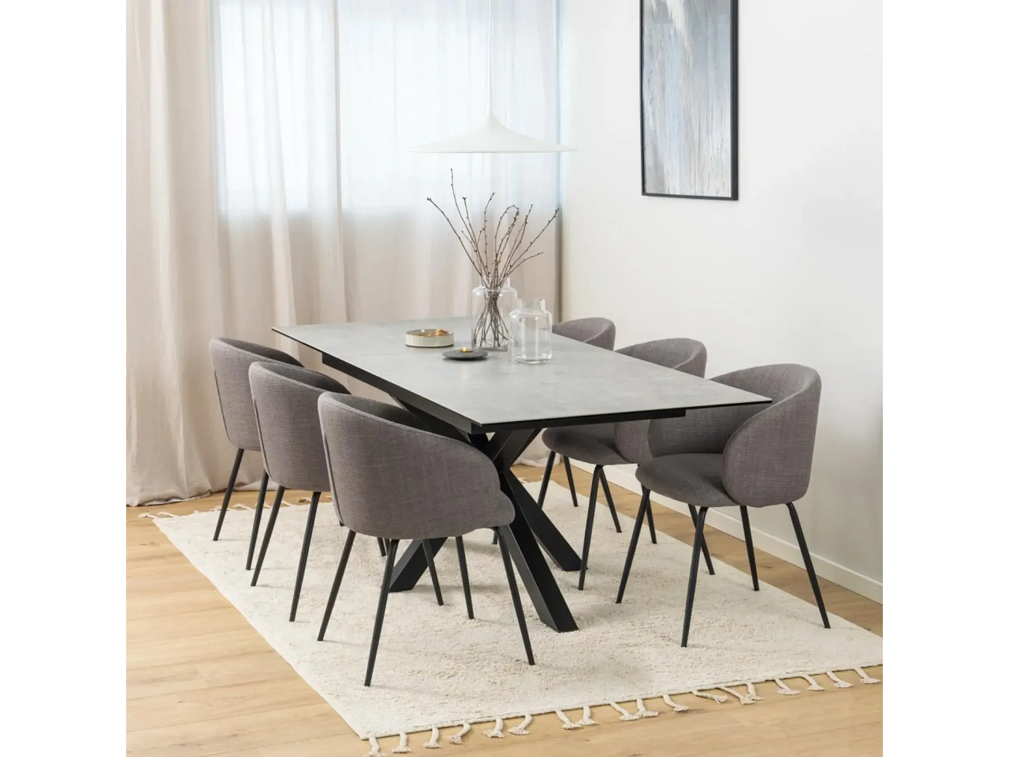 Sky eetkamertafel 90x168/210cm met 1 extra plaat grijs.
