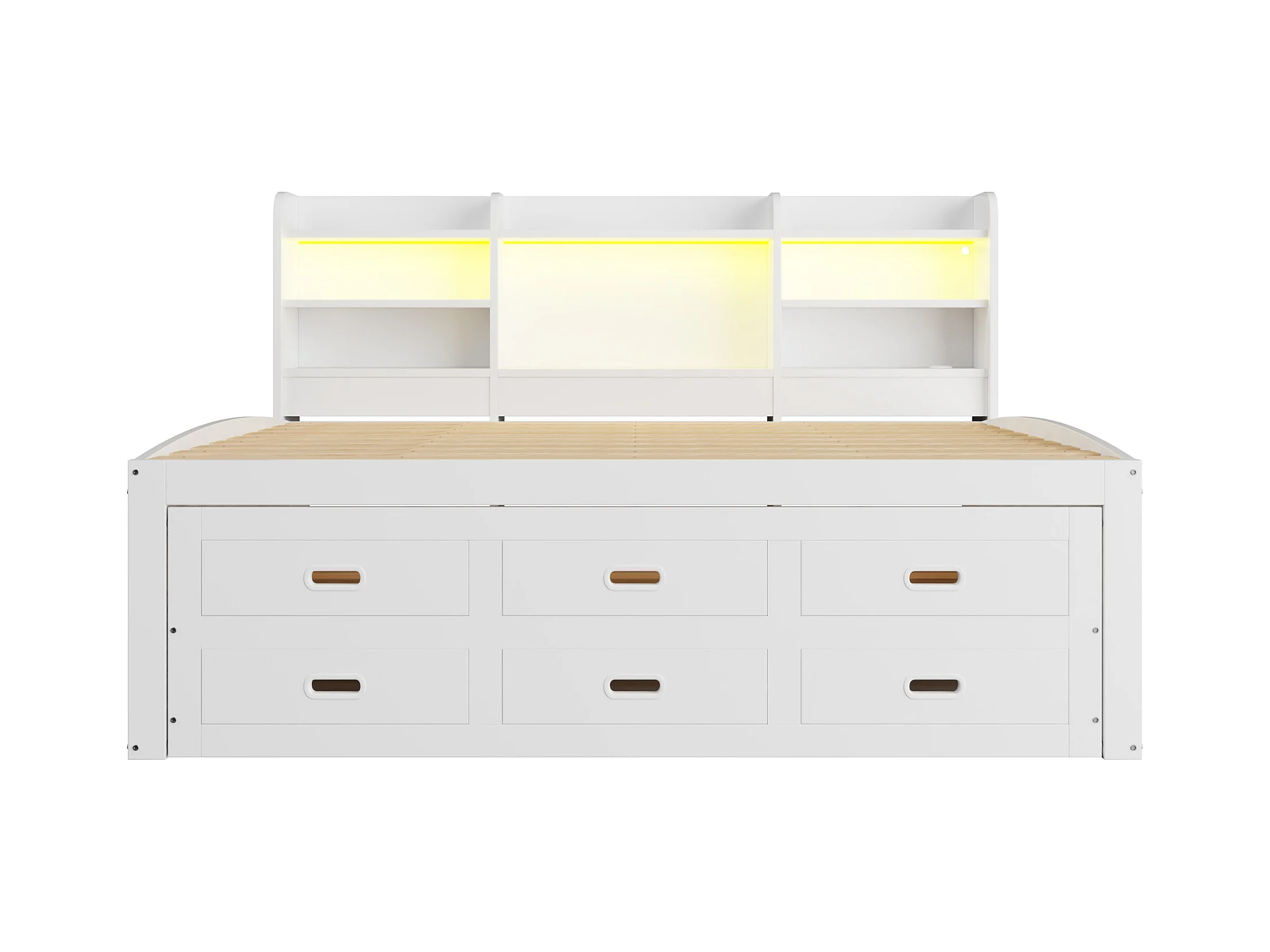 Slaapbank 140x200 cm - met LED-verlichting - 3 laden - met USB + Type-C - wit (matras niet inbegrepen)