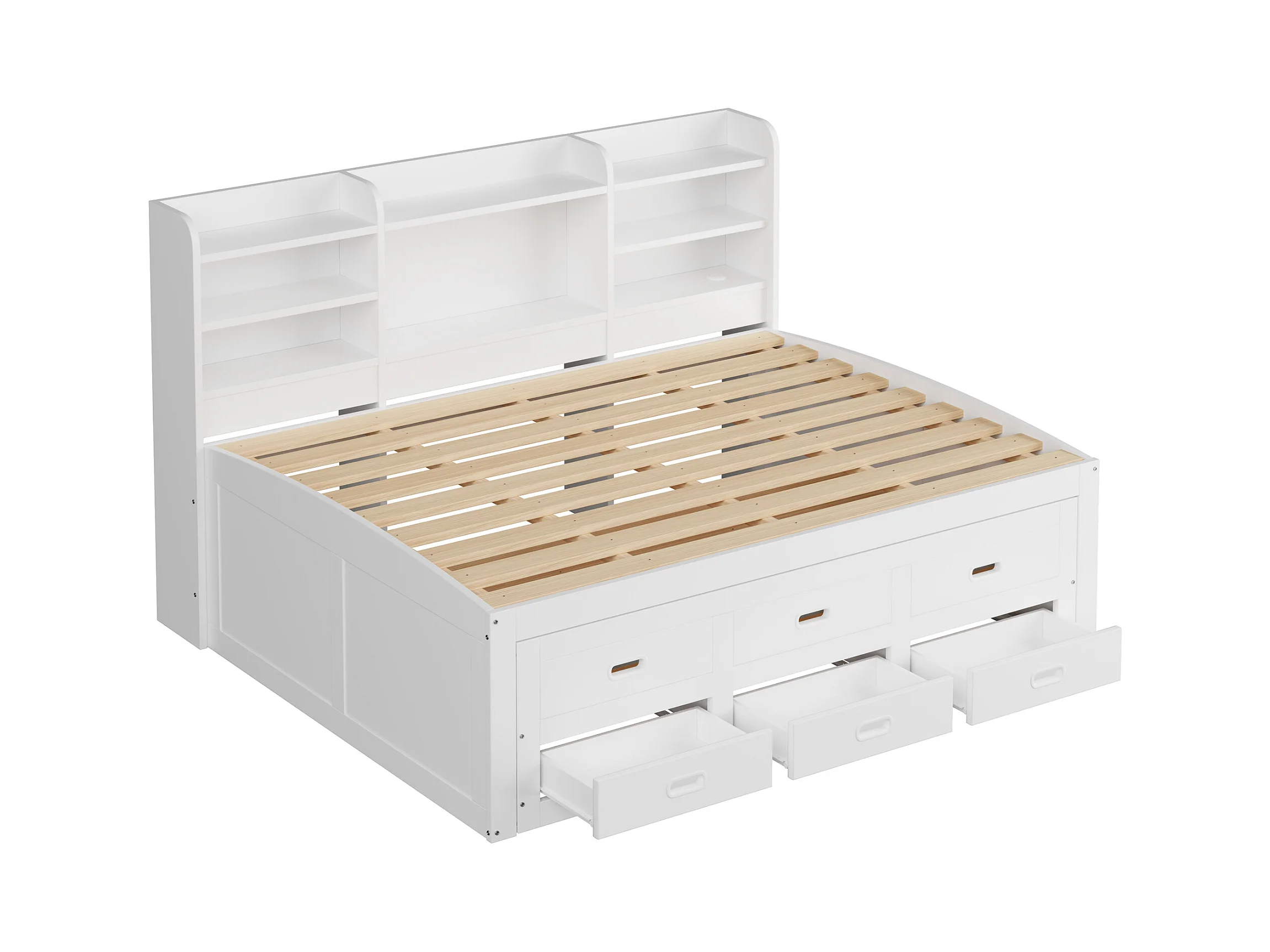 Bankbed 140x200 cm met 2 opbergladen en lattenbodem, wit – zonder matras