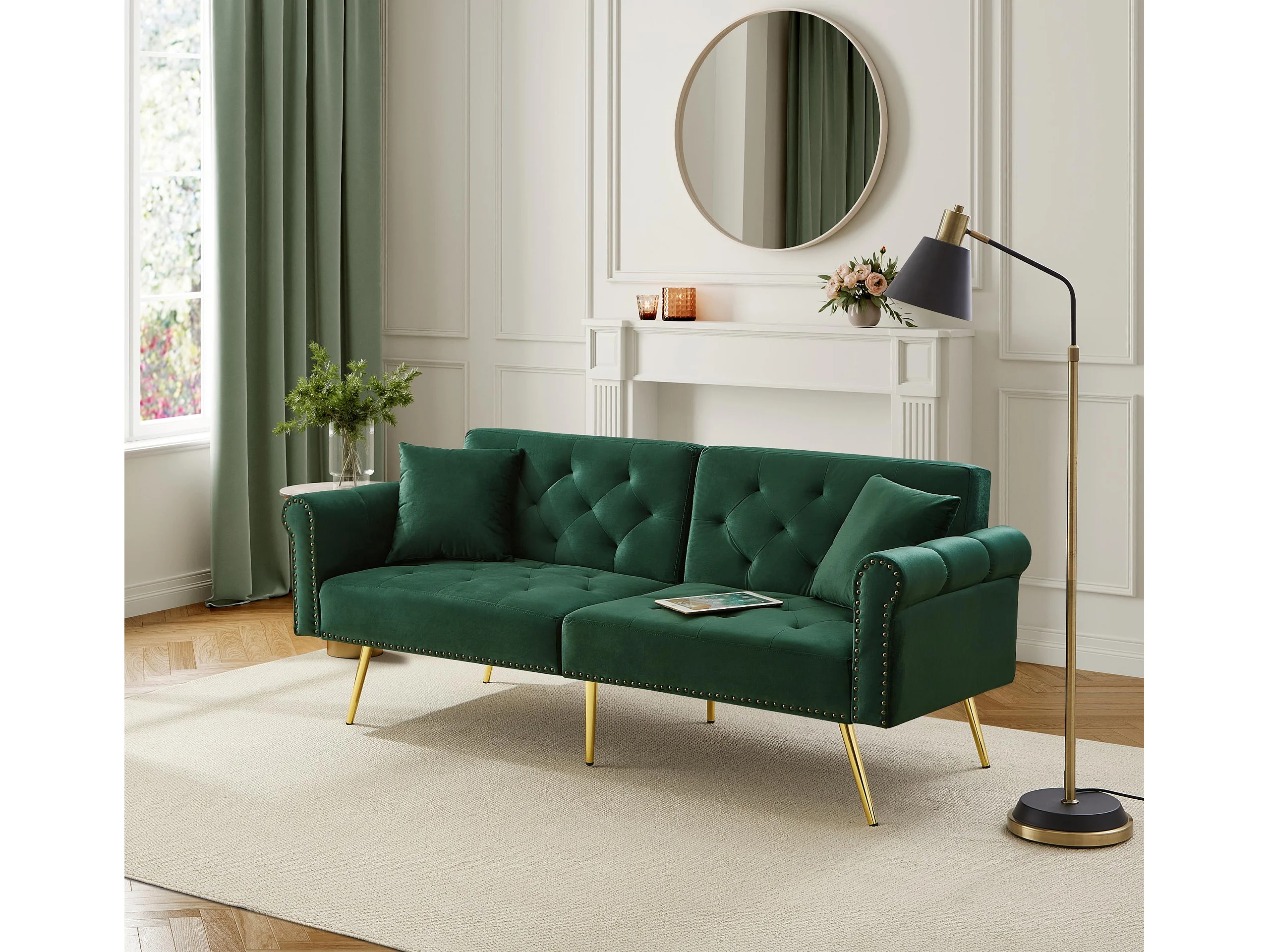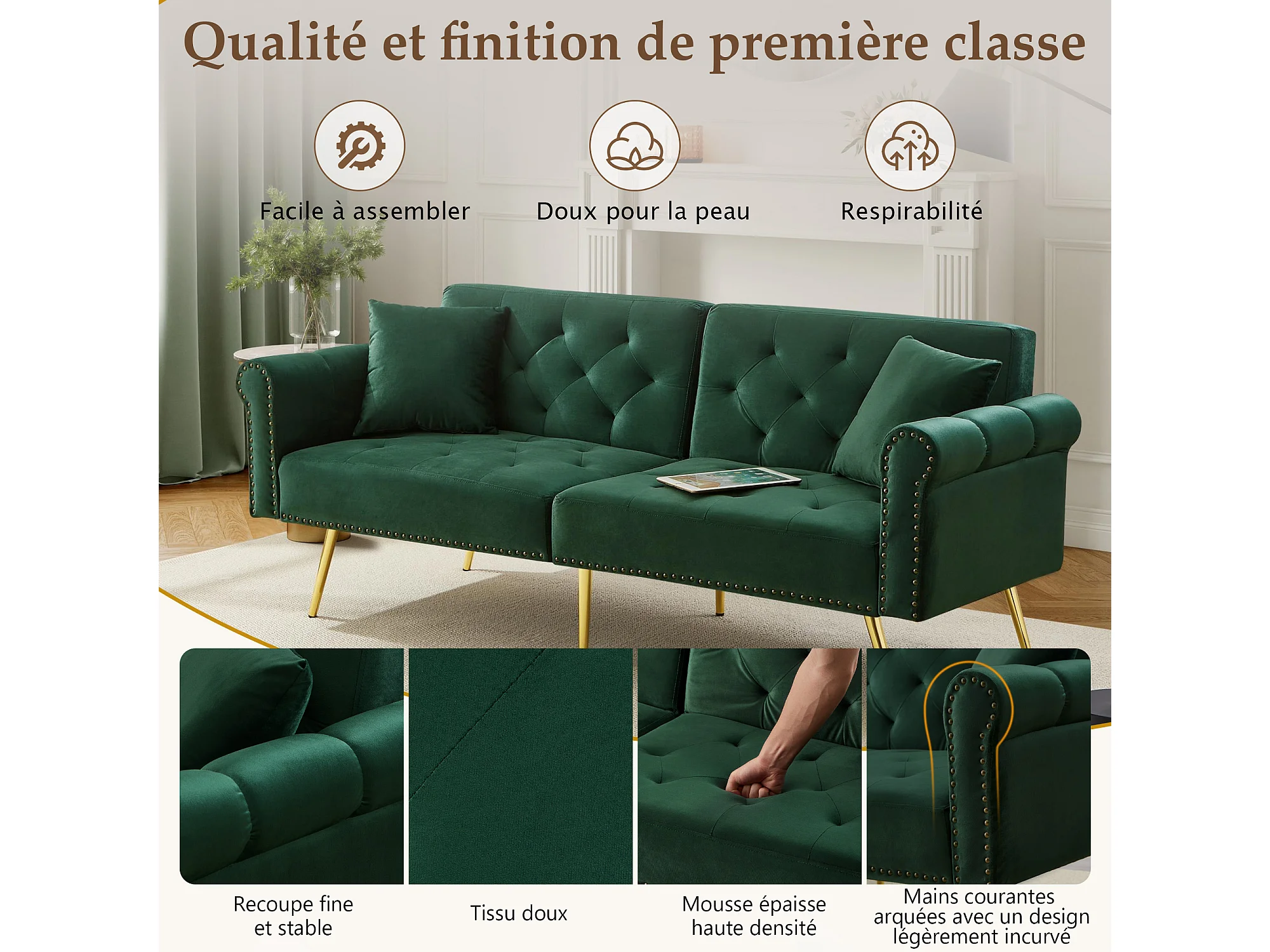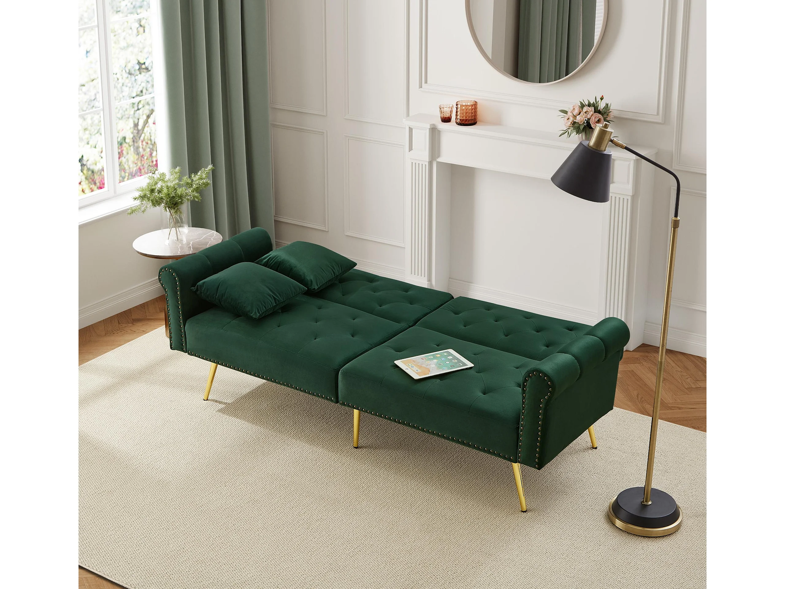 Slaapbank 147 X 85 Cm - 3 Standen Verstelbare Dubbele Rugleuning - Voor Woonkamer Of Logeerkamer - Fluweel - Antique Green