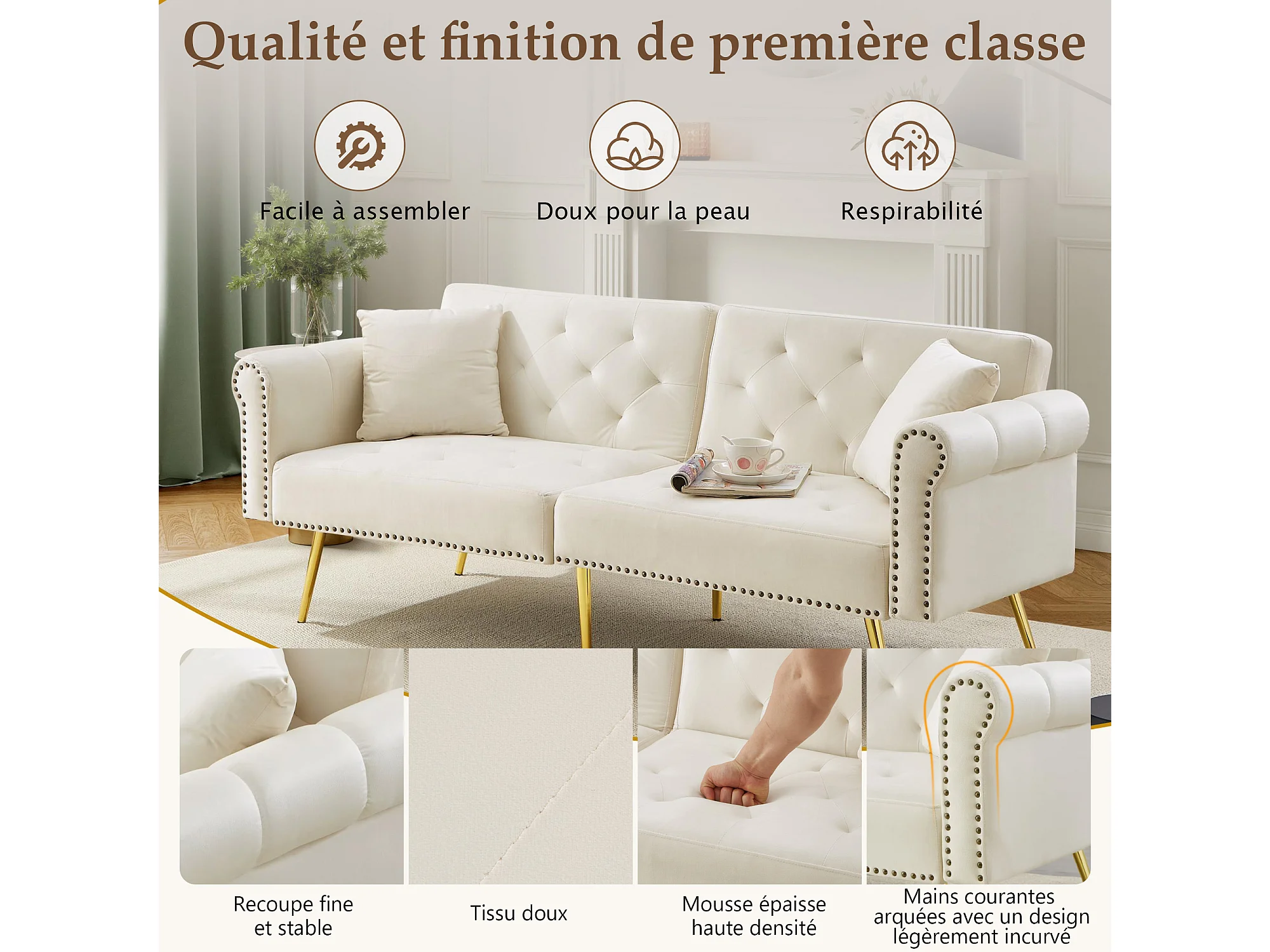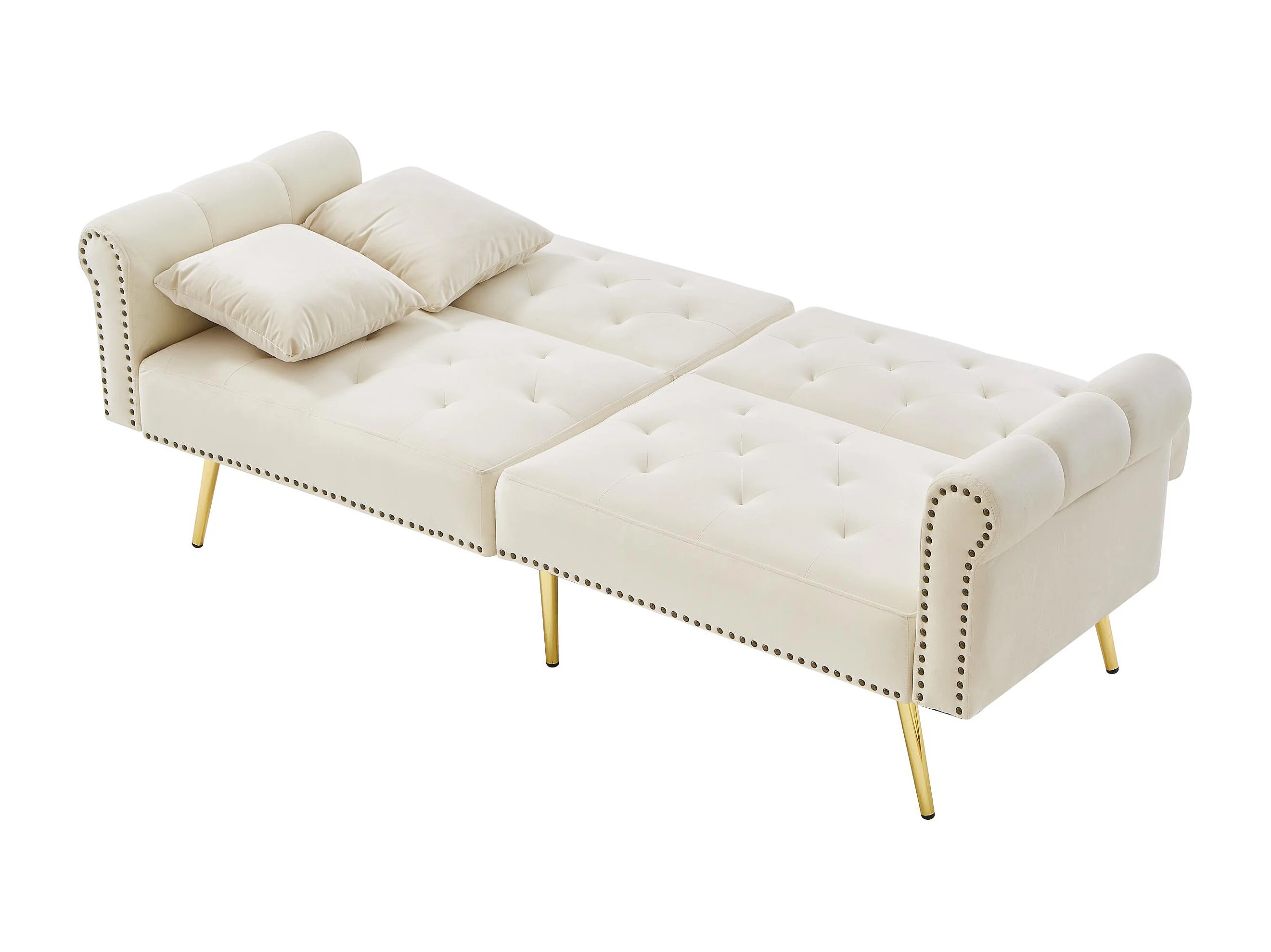 Slaapbank 2 Zits 147 X 85 Cm - 3 Standen Verstelbare Dubbele Rugleuning - Voor Woonkamer Of Logeerkamer - Fluweel - Beige