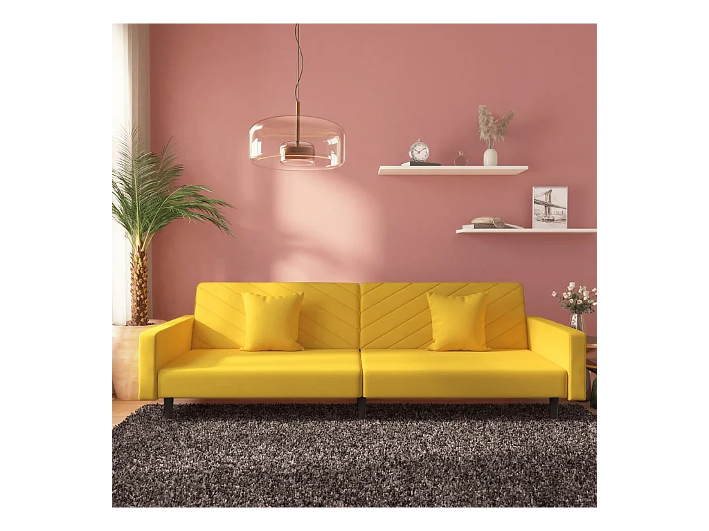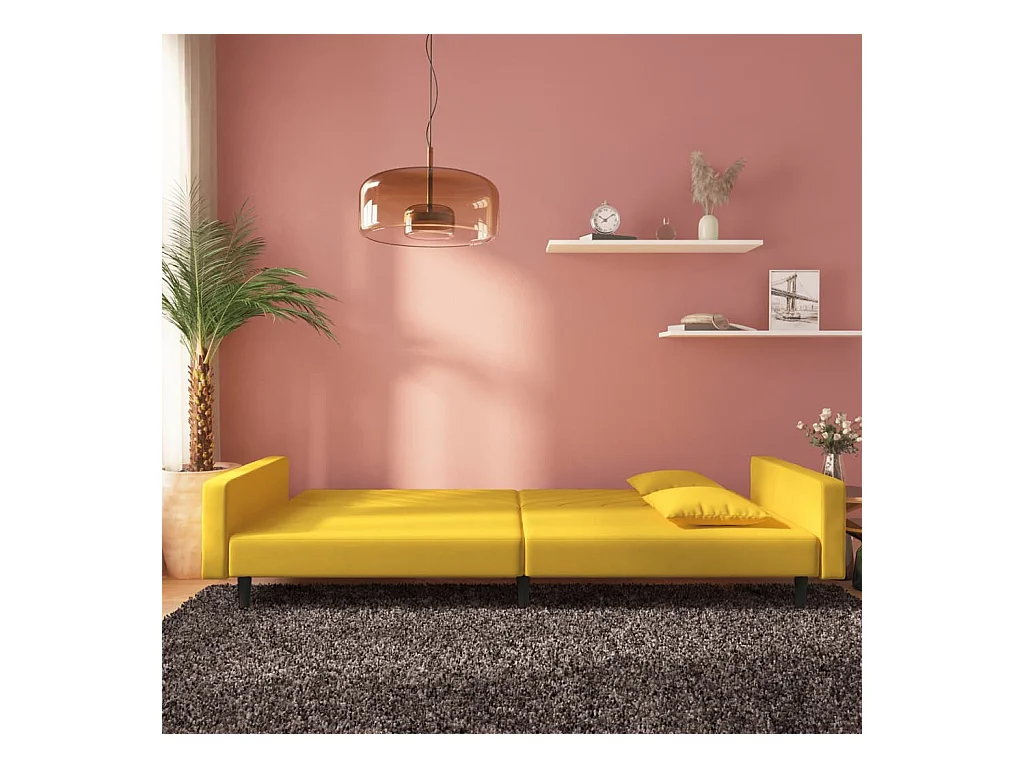 Slaapbank 2-zits met 2 kussens fluweel geel