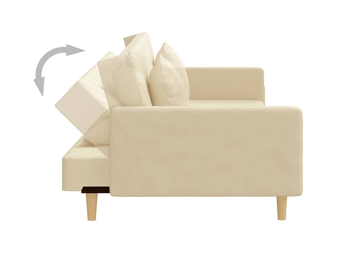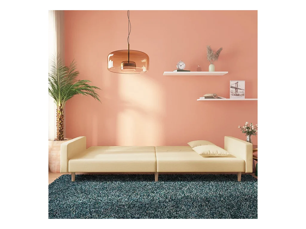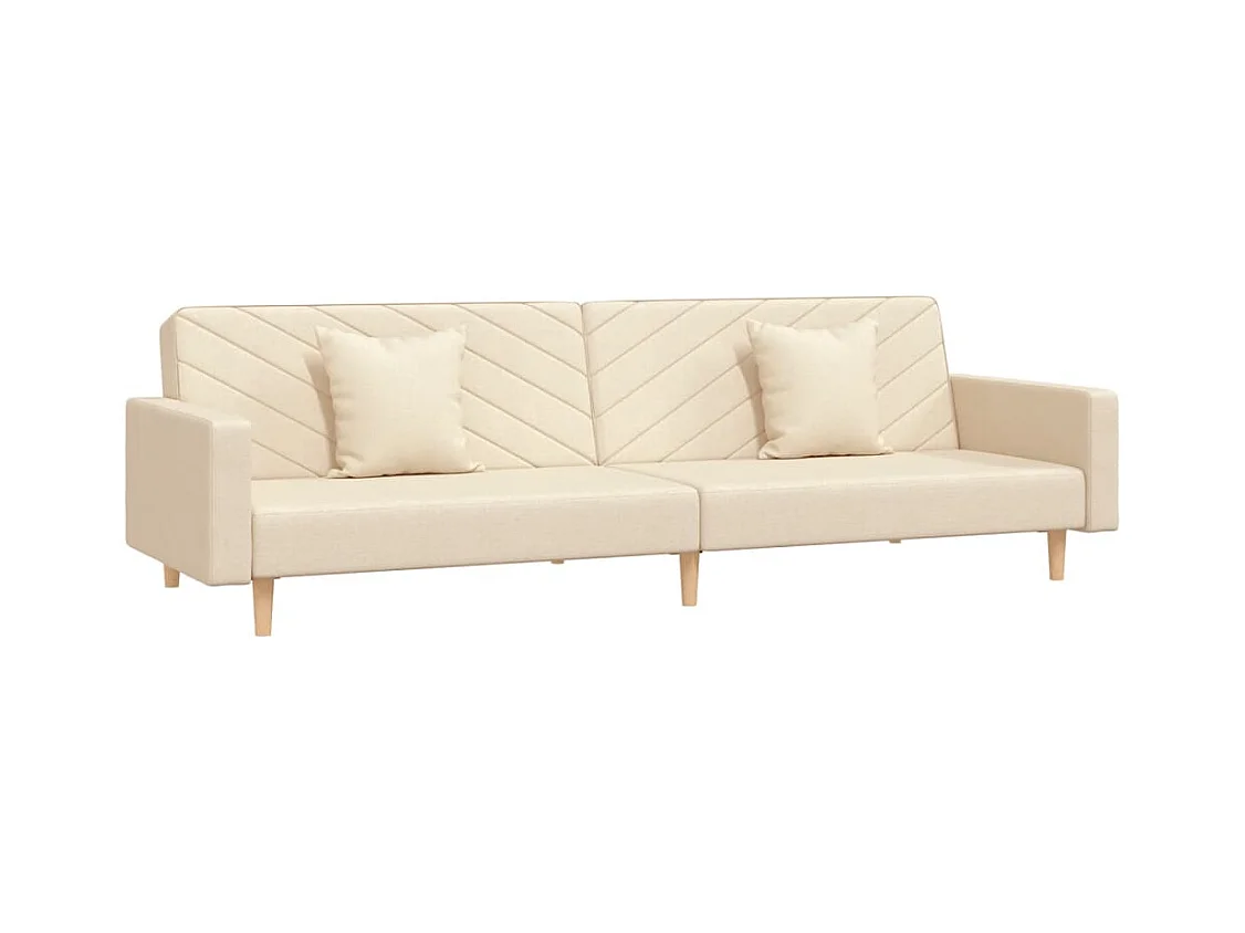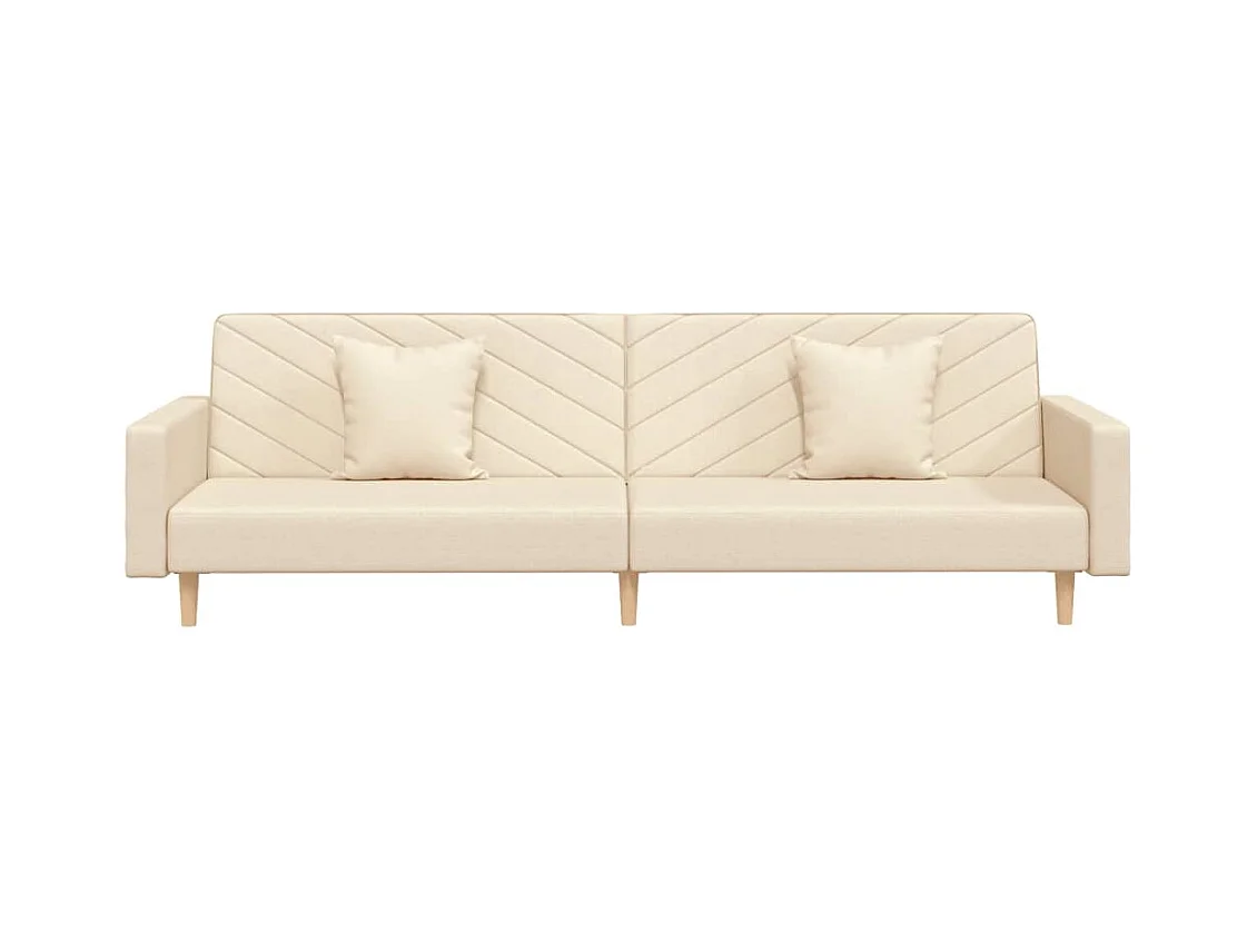 Slaapbank 2-zits met 2 kussens stof crèmekleurig