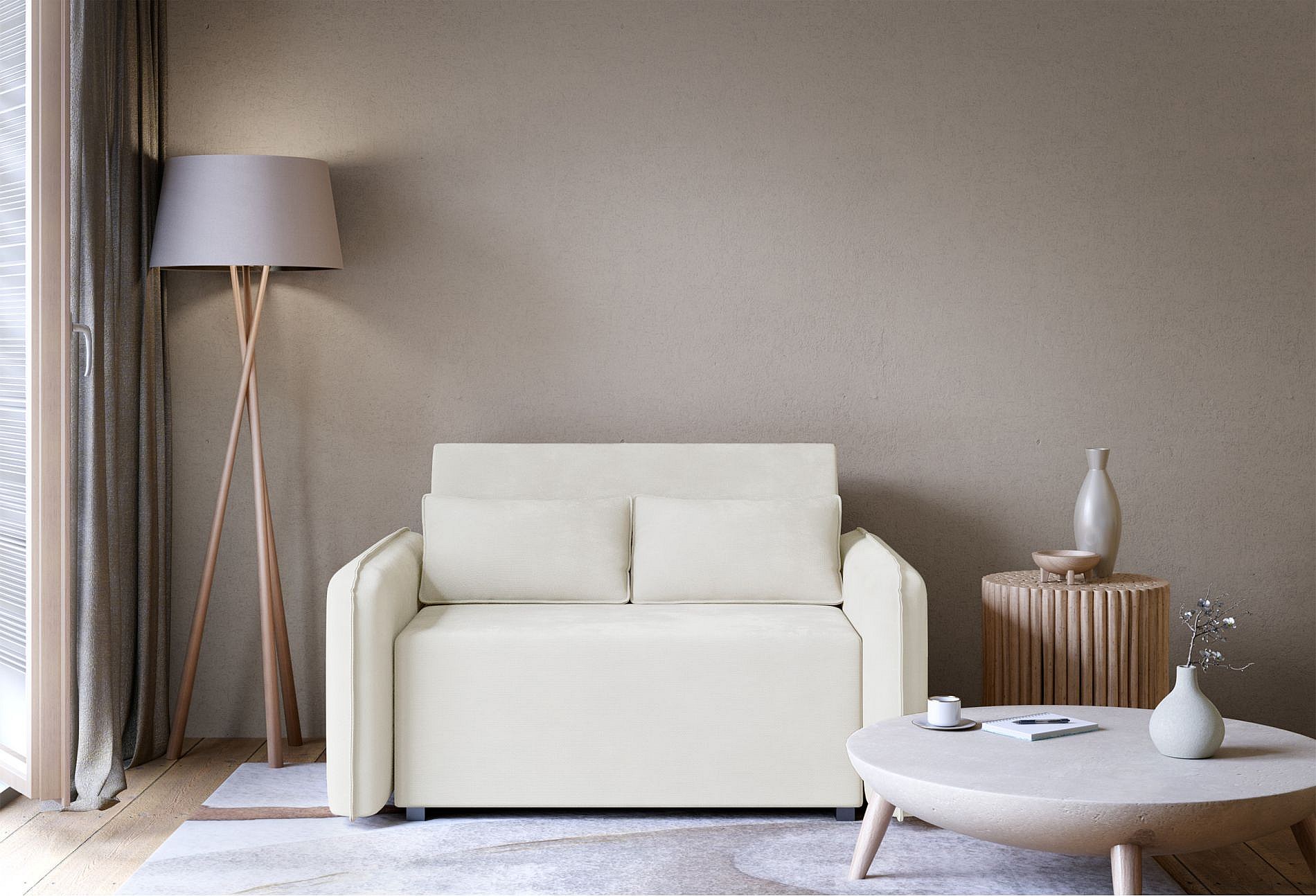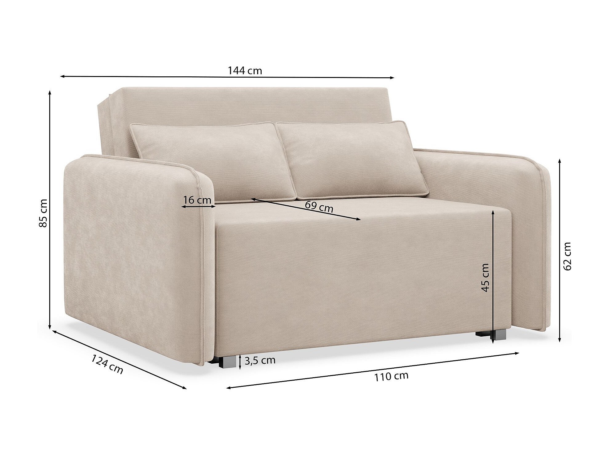 Slaapbank 2-zits – opbergruimte – hydrofobe chenille – crème – DUELIA