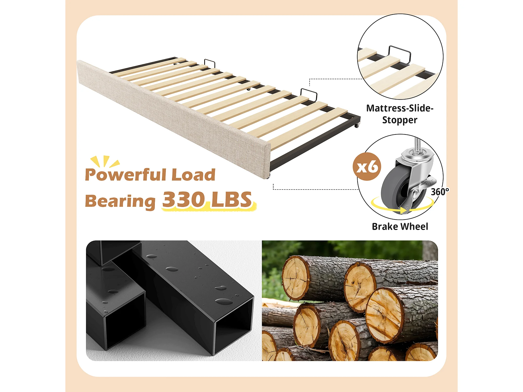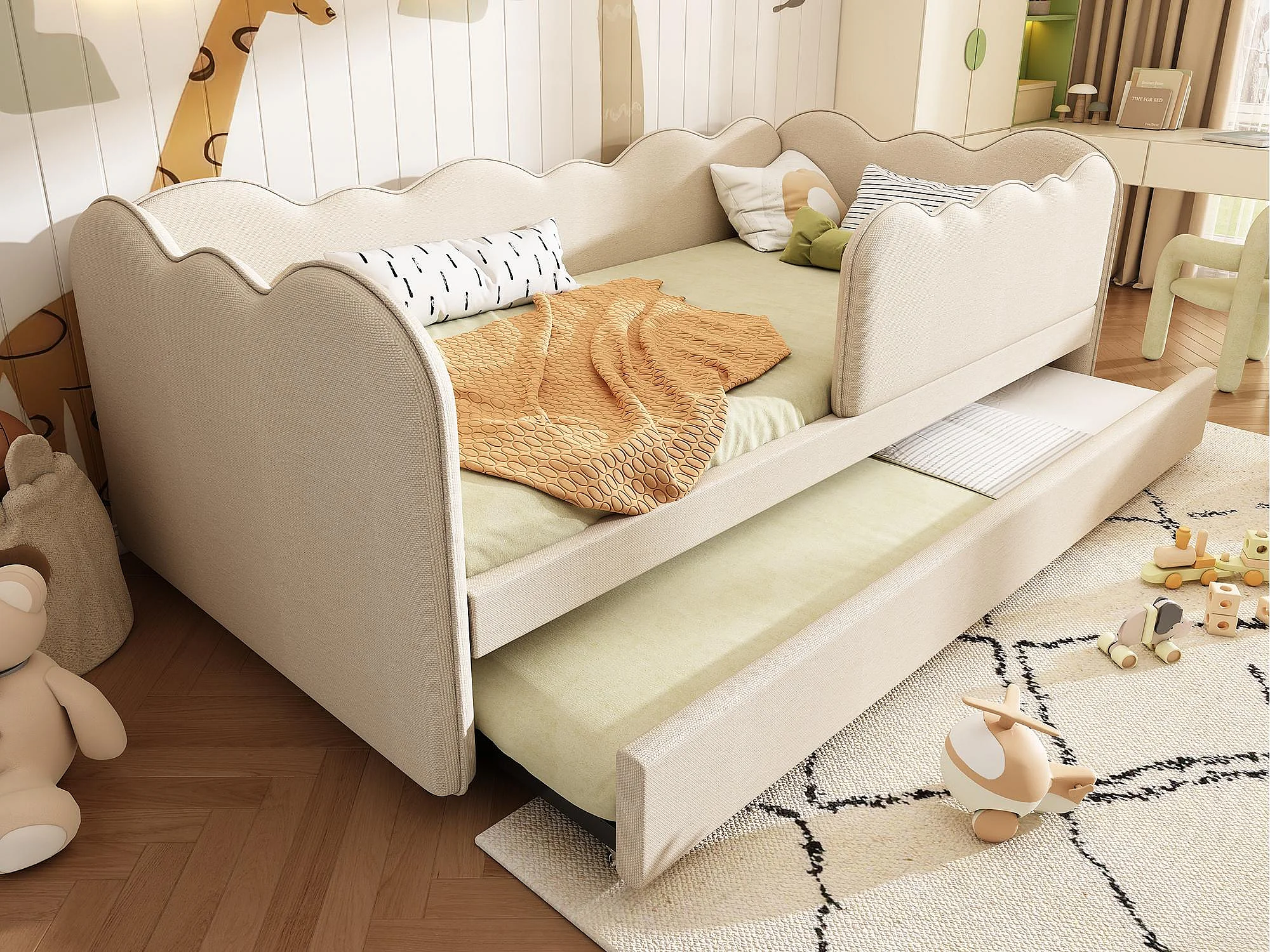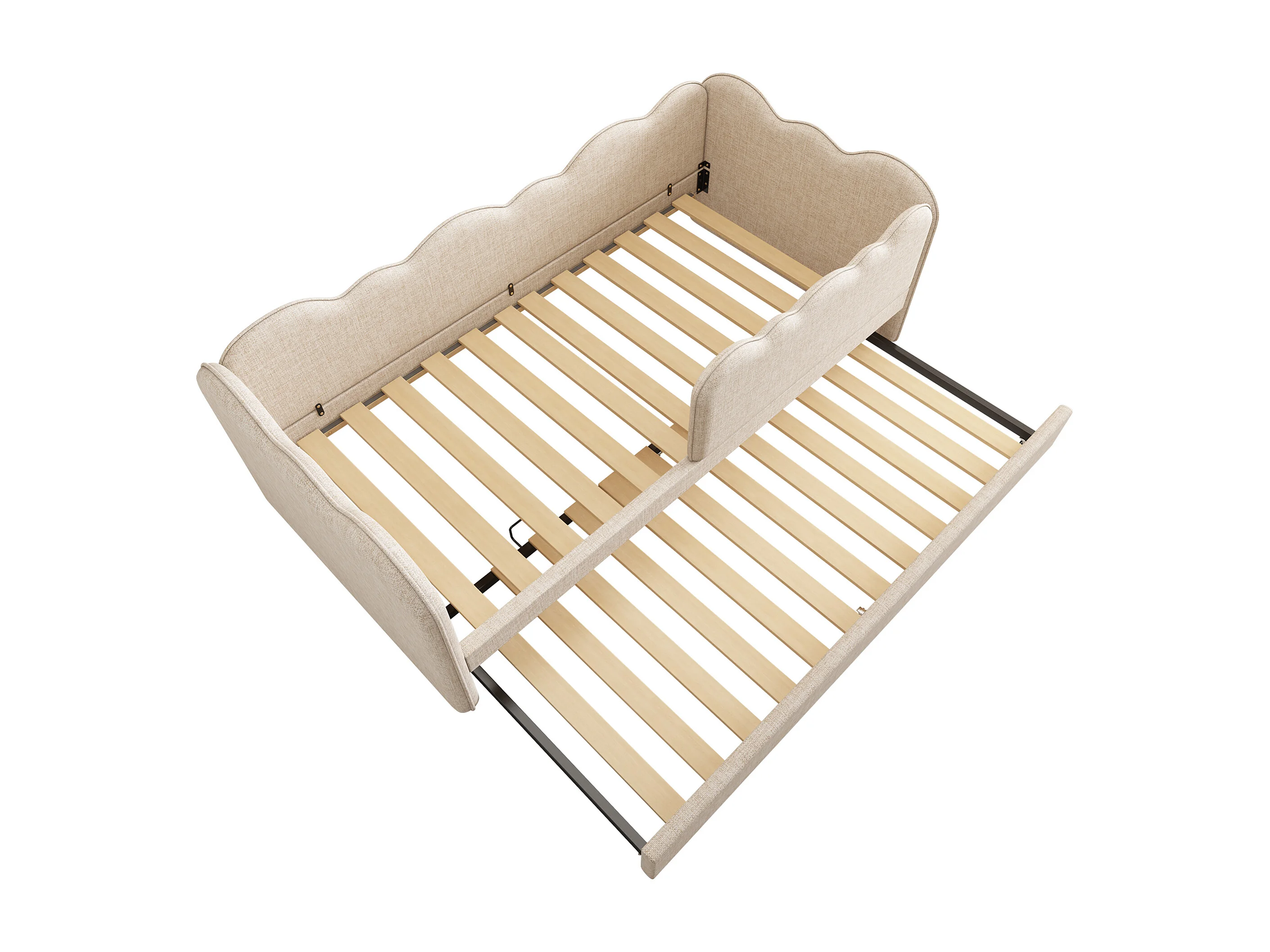 Slaapbank 90×190 cm - met uitschuifbaar bed 90×190 cm - golfdecoratie - met lattenbodem - Fluweel - Beige (zonder matras)