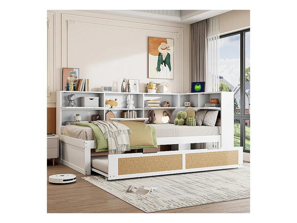 Slaapbank met onderschuifbed zonder matras IRUN 90x200 cm wit