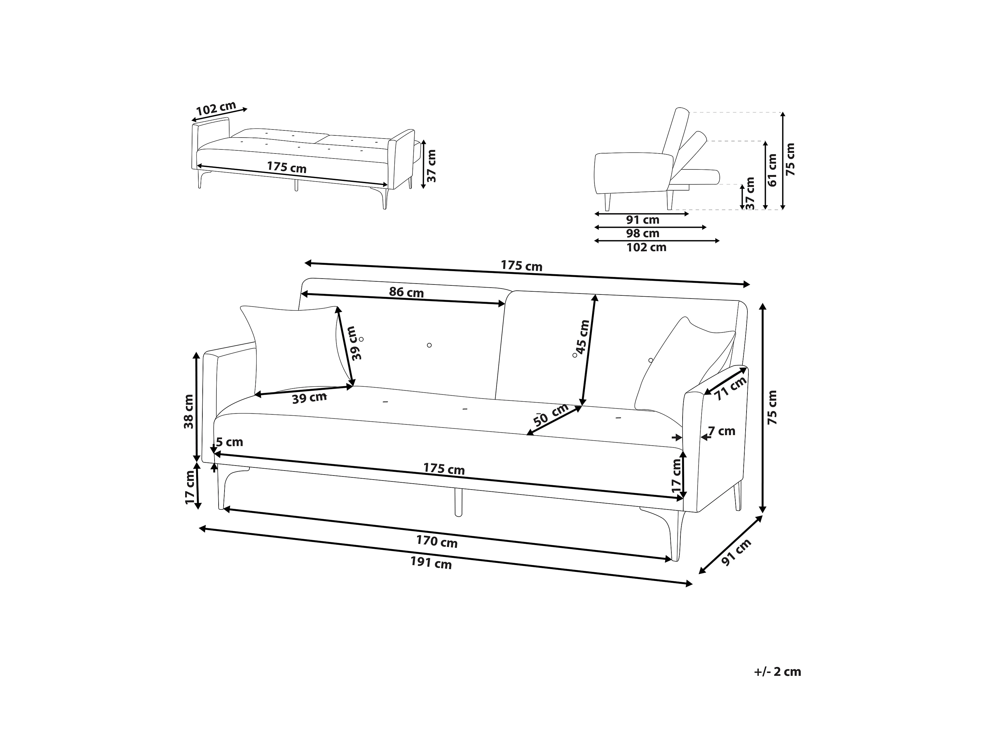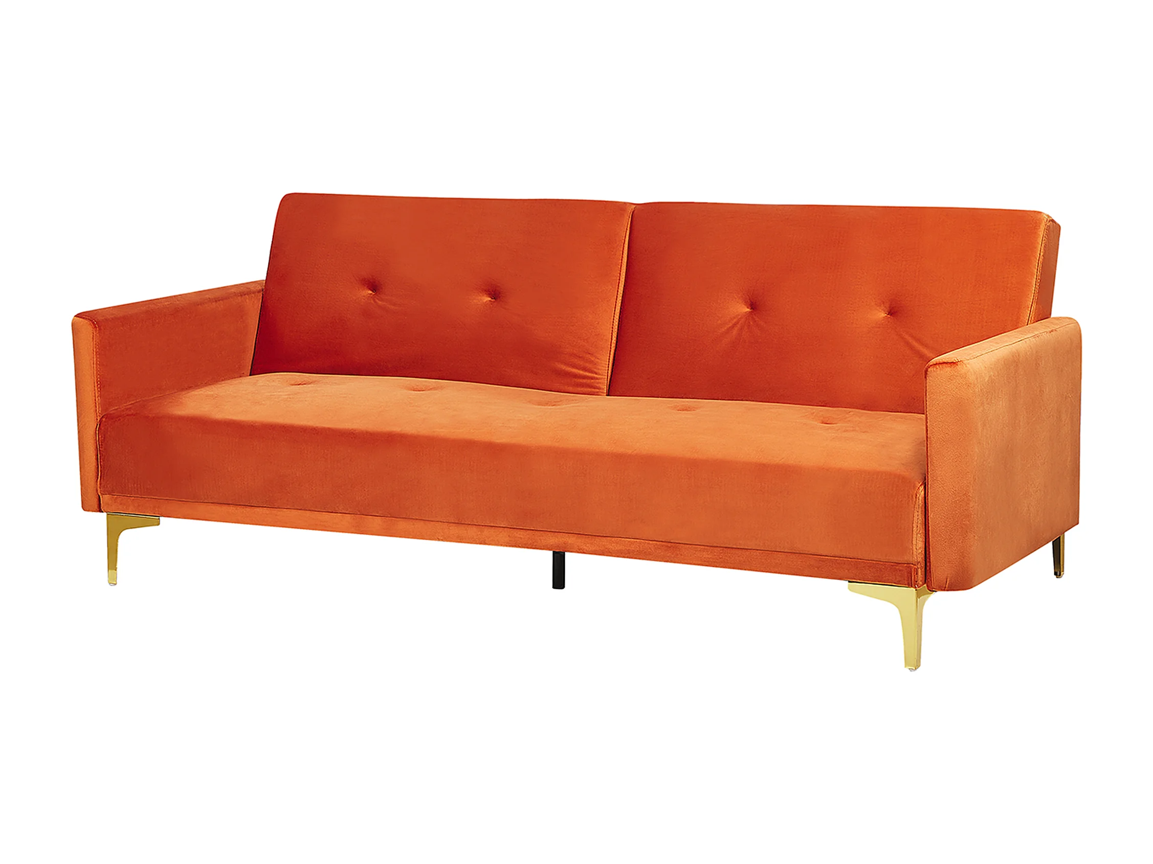 Slaapbank LUCAN Fluweel Oranje 3-zitter