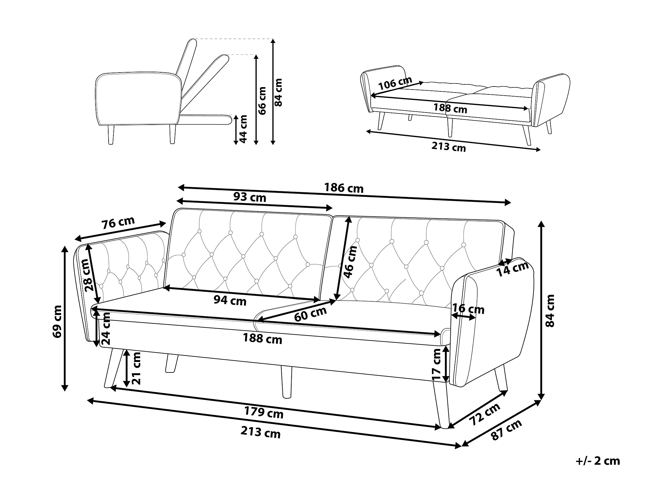 Slaapbank BARDU Fluweel Zwart 2-zitter