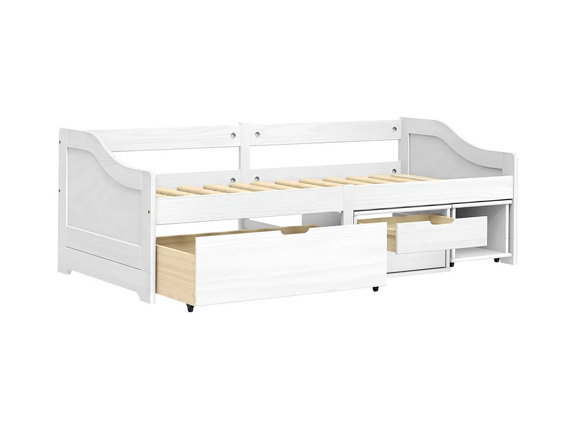 Slaapbank met 3 lades IRUN 90x200 cm massief grenenhout wit